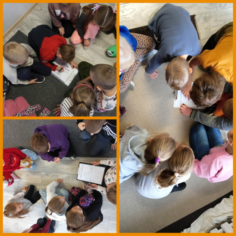 🧩 Dzieci rozpoczęły przygodę od zajęć z kodowania – losując kolorowe karteczki, układały je na macie do kodowania. Efekt? Powstała piękna dynia! 🎃💻