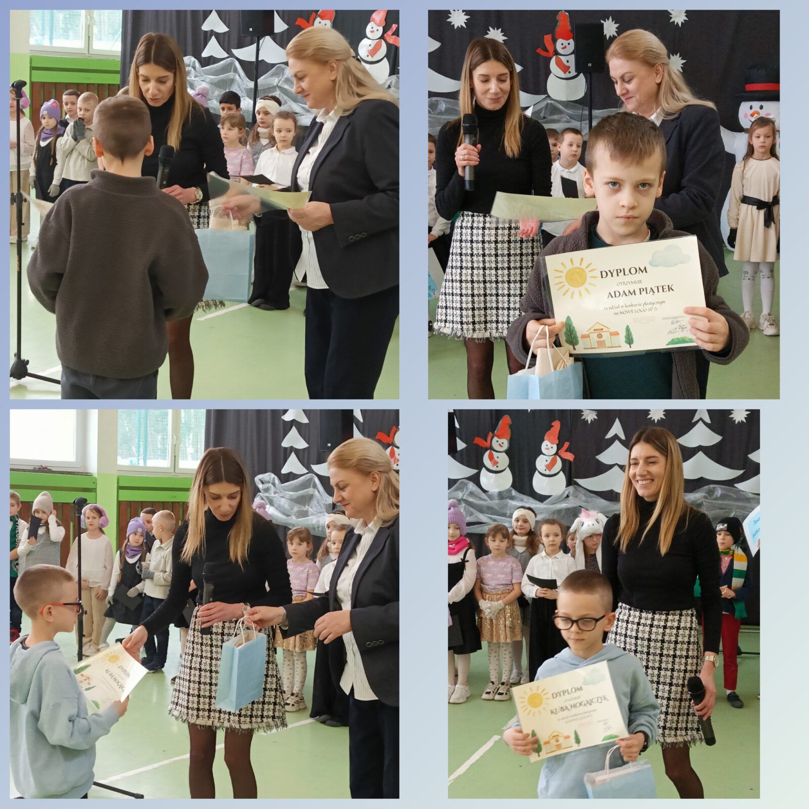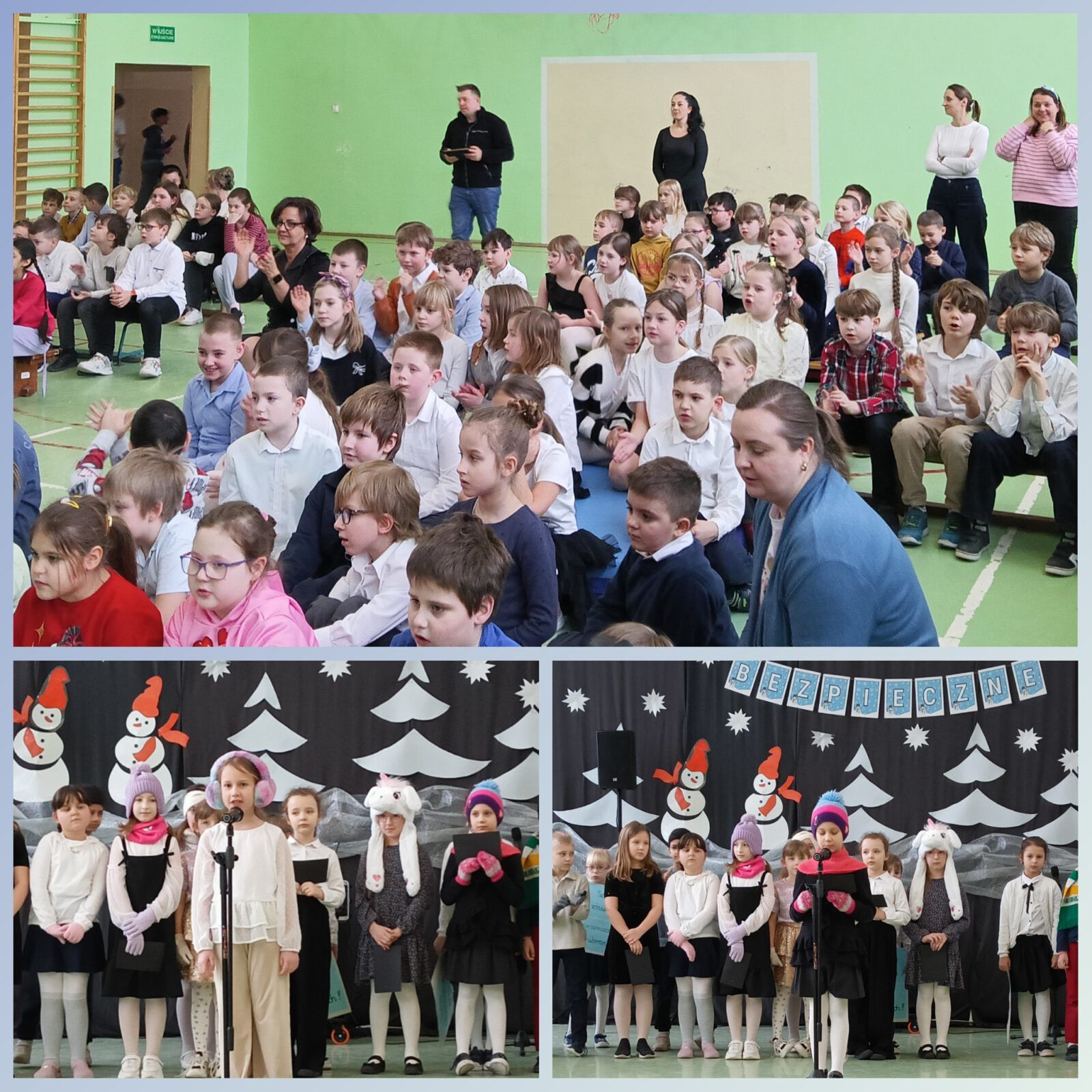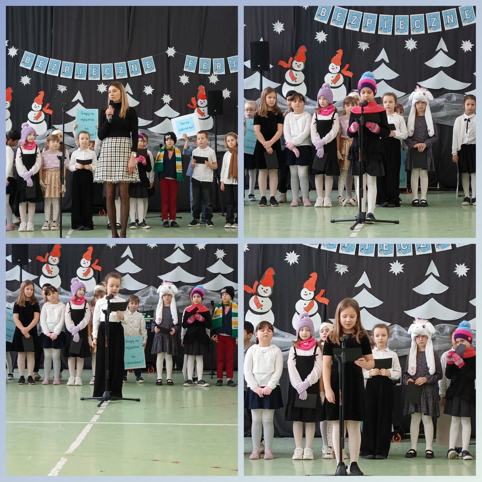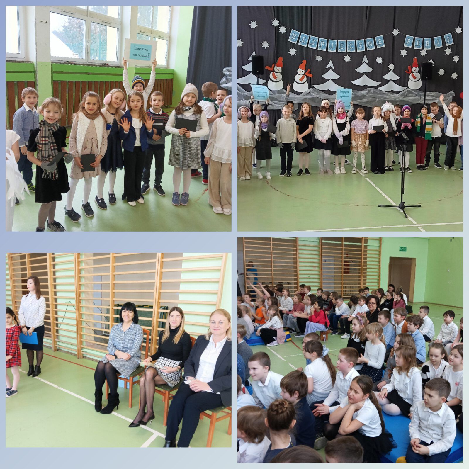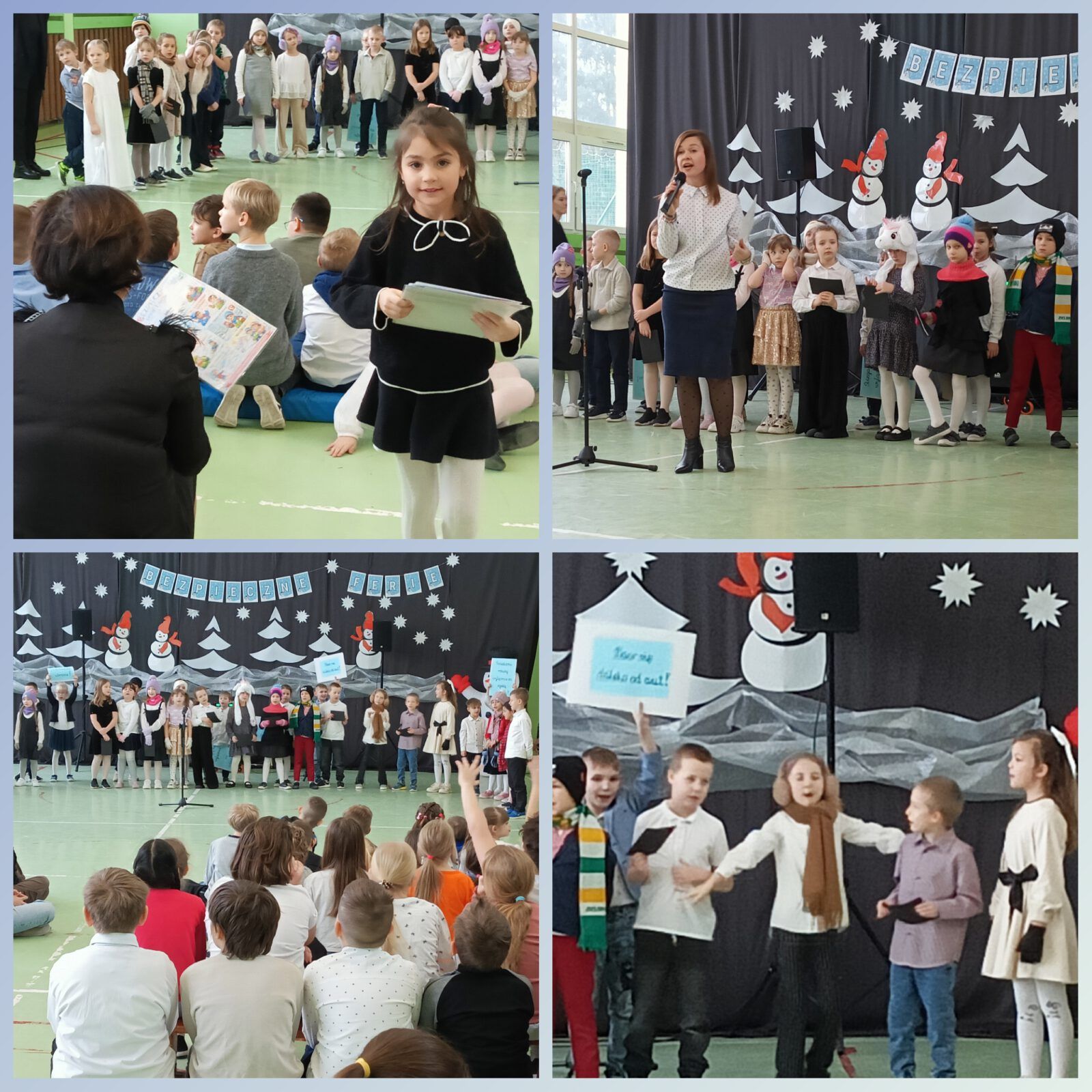 Pierwsze półrocze za nami. Uczniowie klas 1a i 1b pięknie zaprezentowali się podczas apelu. Przekazali szkolnym kolegom ogrom wiedzy z zakresu bezpieczeństwa w czasie zimy i nadchodzących ferii. Pani Dyrektor Kamila Dyjak wręczyła wyróżnienia w konkursie na nasze nowe szkolne logo, a Pani Alicja, rzecznik praw ucznia, przygotowała kodeksy bezpieczeństwa. Pamiętajmy wszyscy: ZDROWIE JEST NAJWAŻNIEJSZE!