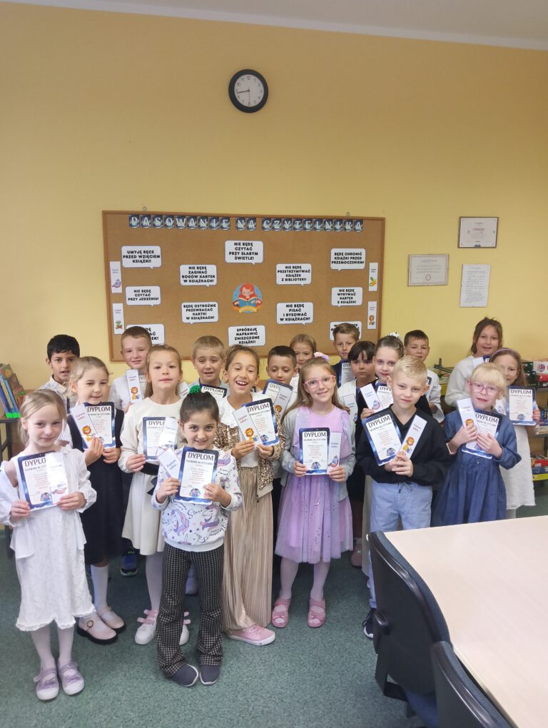 W piątek 19 września 2025 roku w bibliotece szkolnej odbyło się uroczyste pasowanie na czytelnika uczniów klas pierwszych. Uczniowie klas: 1a, 1b i 1c zapoznali się z pomieszczeniami biblioteki, czytelnią i magazynem podręczników oraz książek. Po złożeniu ślubowania, uczniowie otrzymali pamiątkowe dyplomy i zakładki, a niektórzy wypożyczyli swoją pierwszą książkę. Życzymy sukcesów w nauce i wiele wspaniałych przygód przeżywanych z bohaterami książek. Czekamy na Was. Do zobaczenia wkrótce.