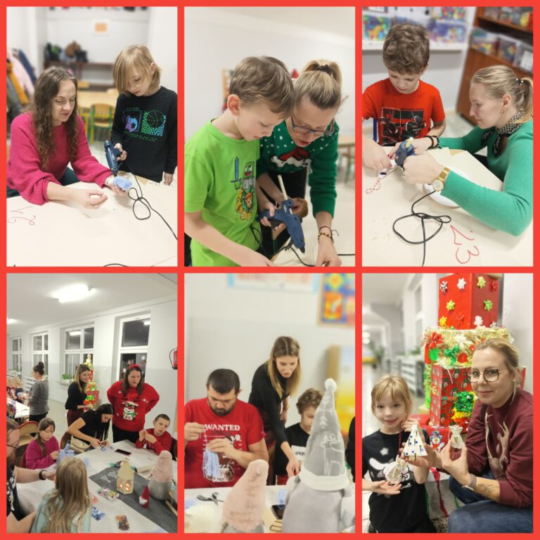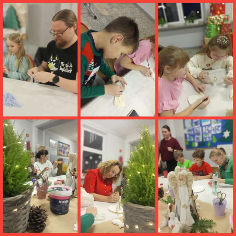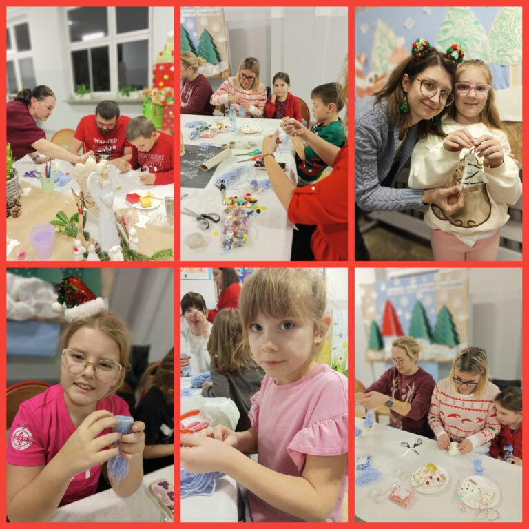 10 grudnia odbyły się w naszej świetlicy rodzinne warsztaty bożonarodzeniowe. Była to okazja, aby oderwać się od codziennego zgiełku i poświęcić czas na twórcze działania. Zadaniem uczestników było przygotowanie trzech ozdób – aniołka, skrzata oraz choinkę. Zarówno dzieci, jaki i rodzice wykazali się dużymi umiejętnościami manualnymi i kreatywnością w przygotowaniu unikatowych ozdób, które mogą być dekoracją świątecznego stołu lub pięknie prezentować się na choince. Bo nic nie przynosi tyle satysfakcji, co własnoręcznie wykonane dzieła!