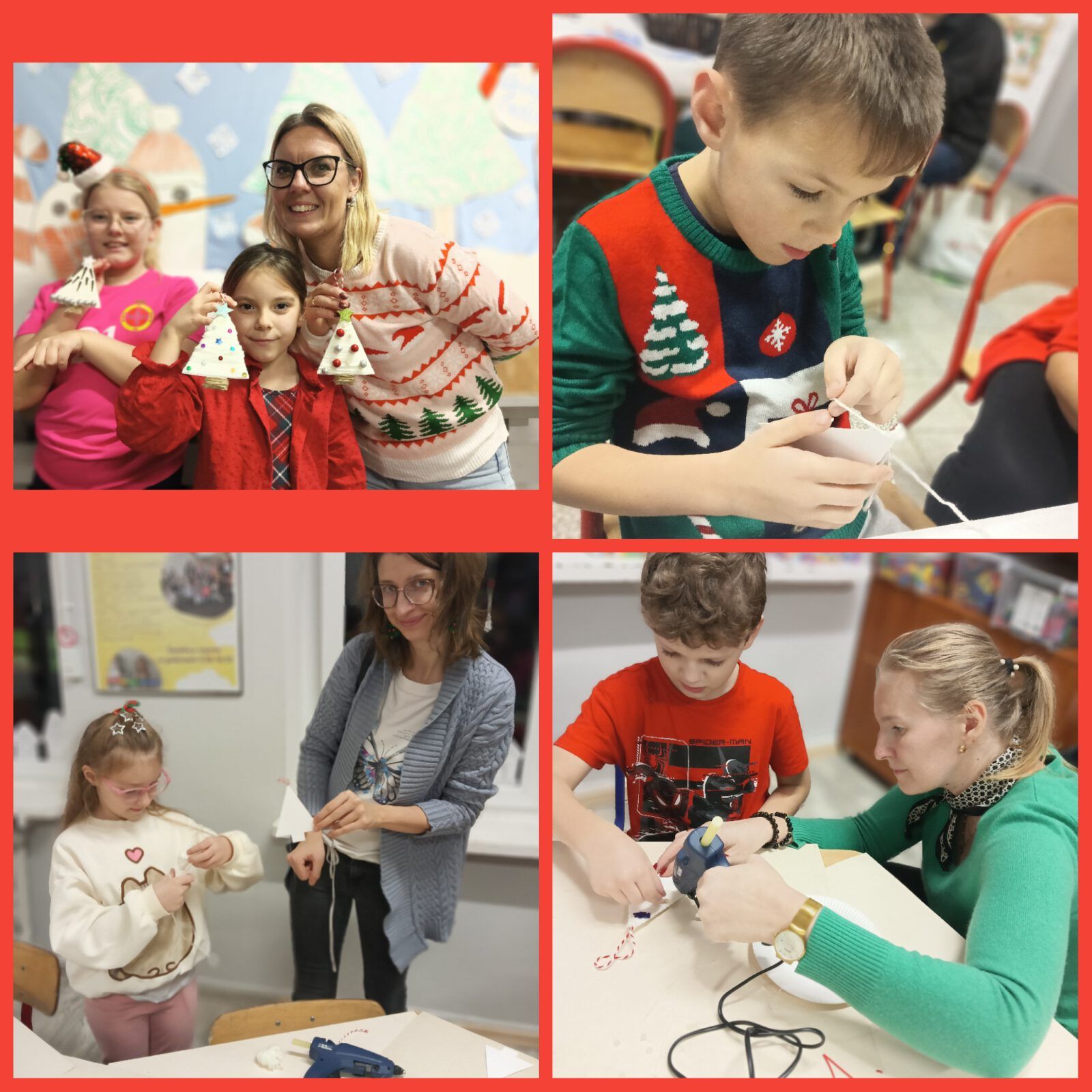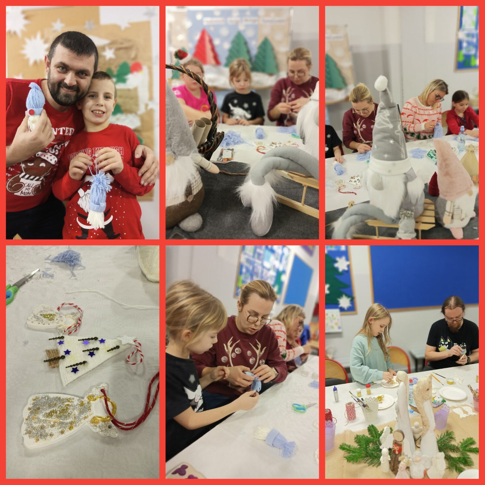 10 grudnia odbyły się w naszej świetlicy rodzinne warsztaty bożonarodzeniowe. Była to okazja, aby oderwać się od codziennego zgiełku i poświęcić czas na twórcze działania. Zadaniem uczestników było przygotowanie trzech ozdób – aniołka, skrzata oraz choinkę. Zarówno dzieci, jaki i rodzice wykazali się dużymi umiejętnościami manualnymi i kreatywnością w przygotowaniu unikatowych ozdób, które mogą być dekoracją świątecznego stołu lub pięknie prezentować się na choince. Bo nic nie przynosi tyle satysfakcji, co własnoręcznie wykonane dzieła!