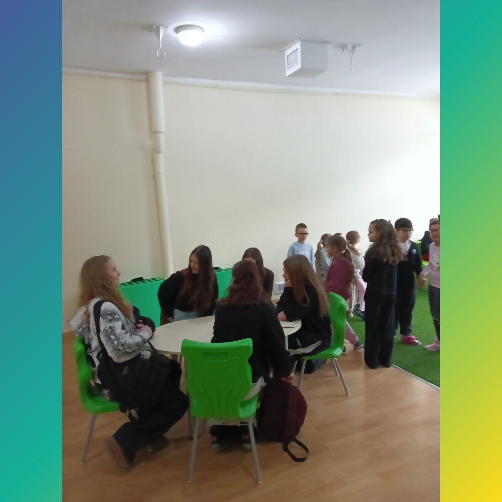 „Chill room” to przestrzeń, w której można wyciszyć się po intensywnych lekcjach, zrelaksować, zebrać myśli lub po prostu spędzić chwilę w przyjemnej, spokojnej atmosferze. To doskonała alternatywa dla zatłoczonych korytarzy i głośnych miejsc.
