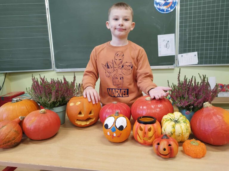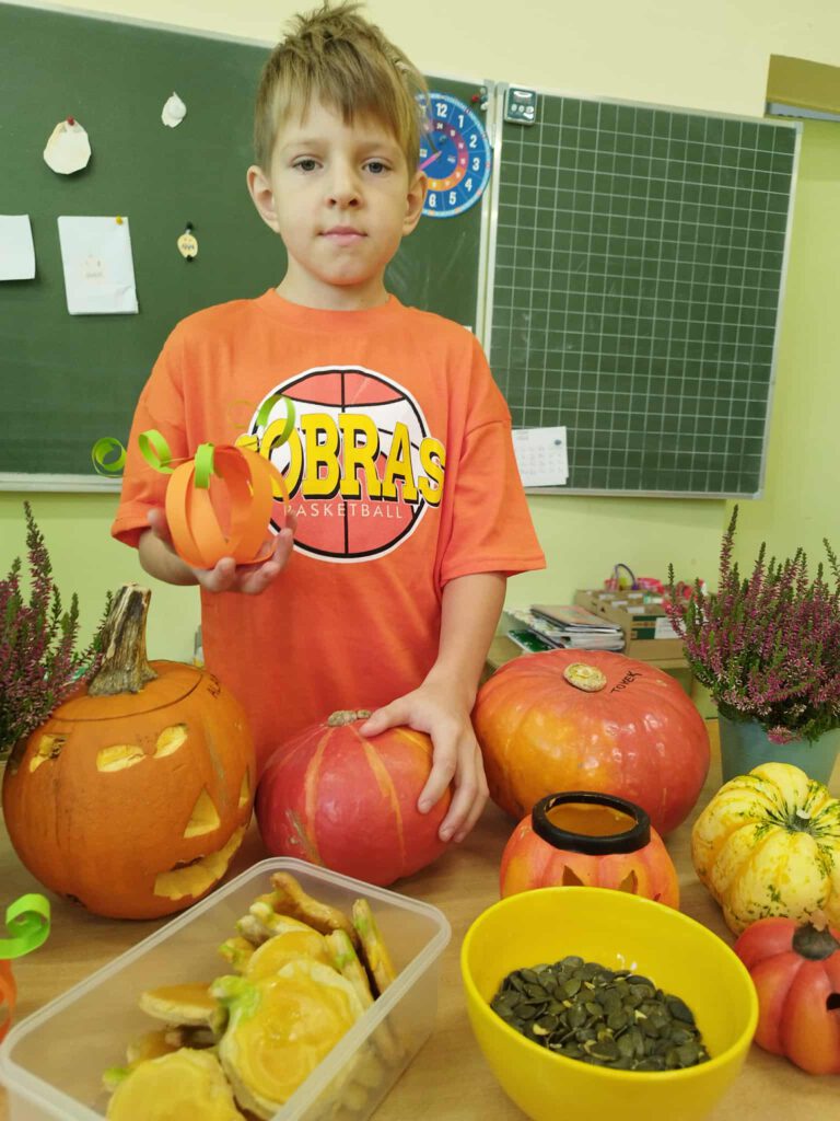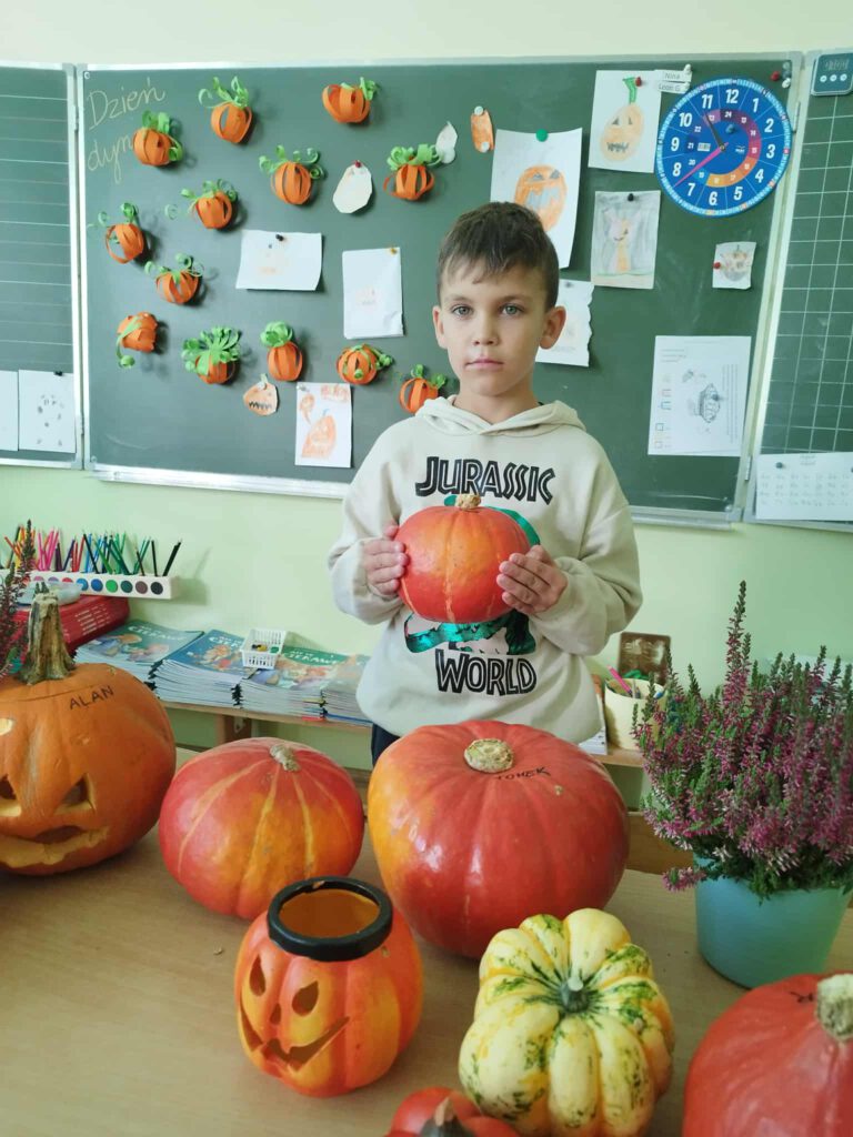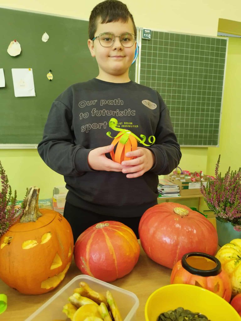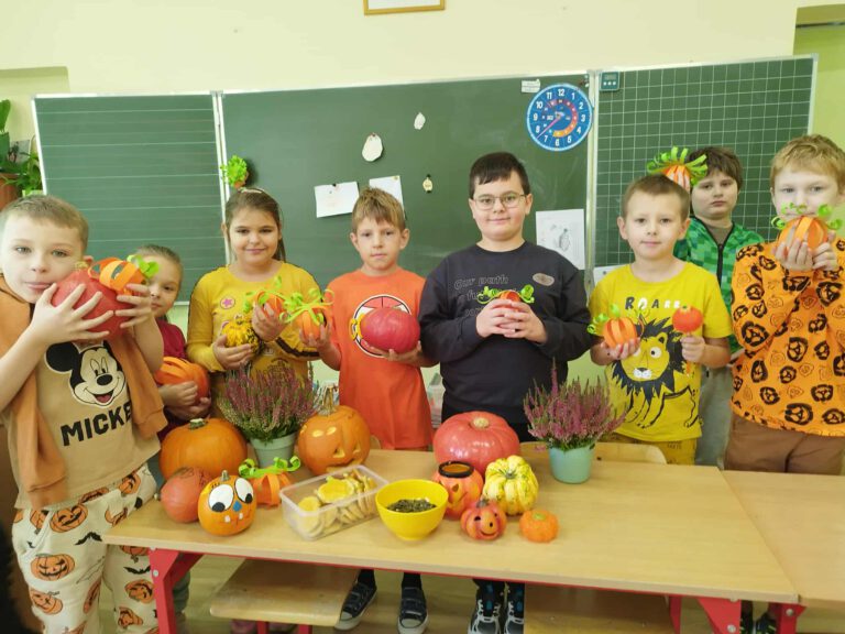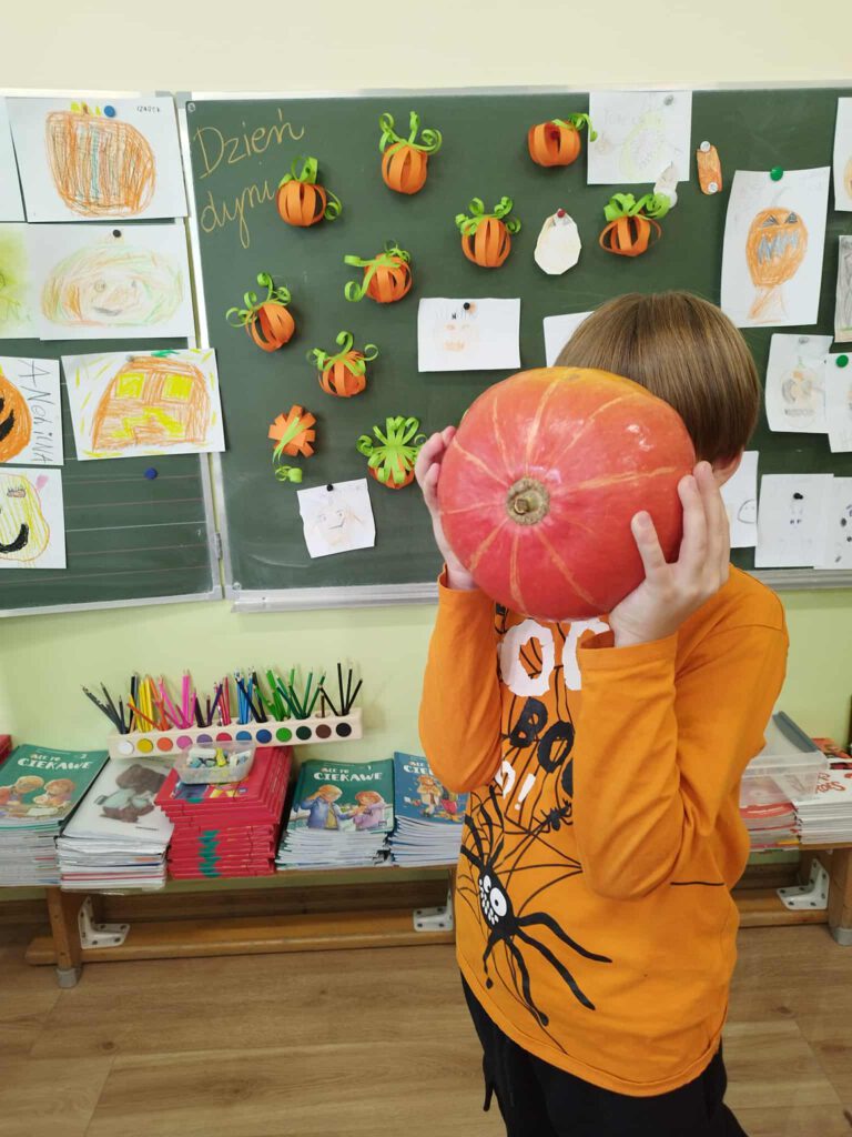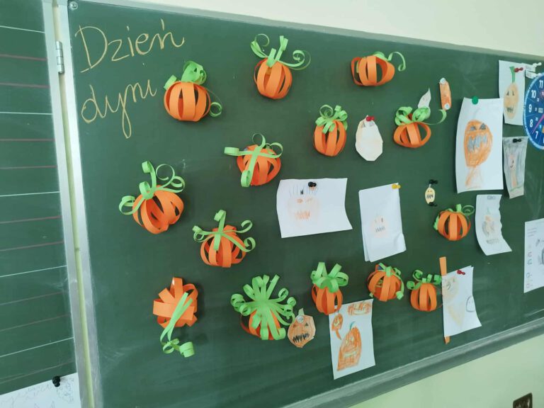 31 października 2025 roku w klasie 2d obchodziliśmy Dzień Dyni. Tego dnia uczniowie przyszli ubrani w kolory dyni – pomarańczowy, żółty i zielony. Sala była pięknie udekorowana dyniowymi ozdobami przyniesionymi przez uczniów, a na wystawie można było podziwiać różnorodne okazy dyni. Oglądaliśmy film edukacyjny o właściwościach i rodzajach dyń, wykonywaliśmy przestrzenne dynie z papieru i malowaliśmy dyniowe prace plastyczne. Degustowaliśmy pyszne ciasteczka dyniowe oraz chrupiące pestki dyni. To był bardzo udany, kolorowy i smakowity dzień! 🎃