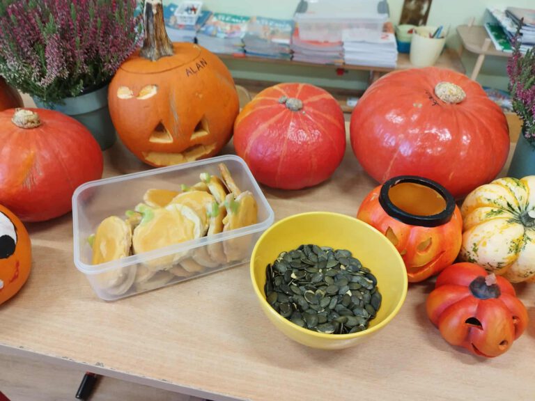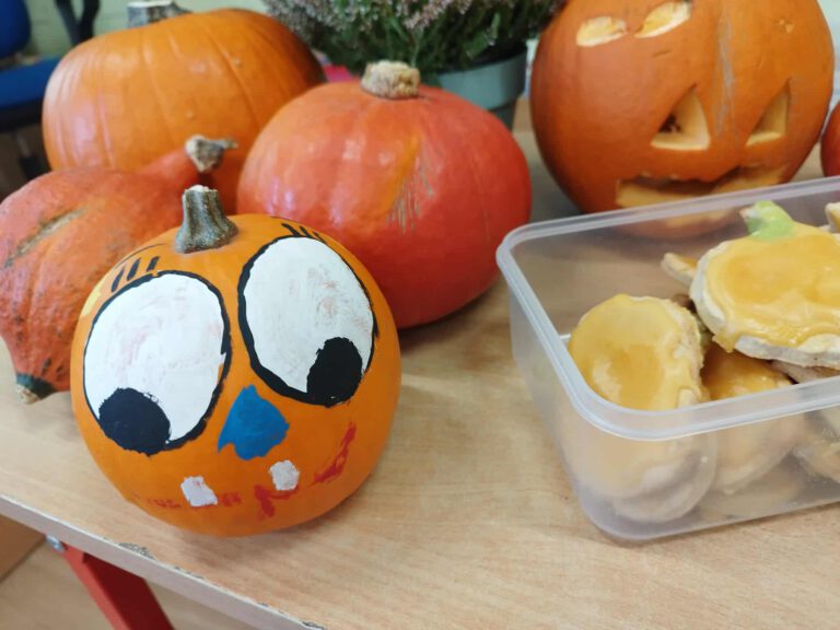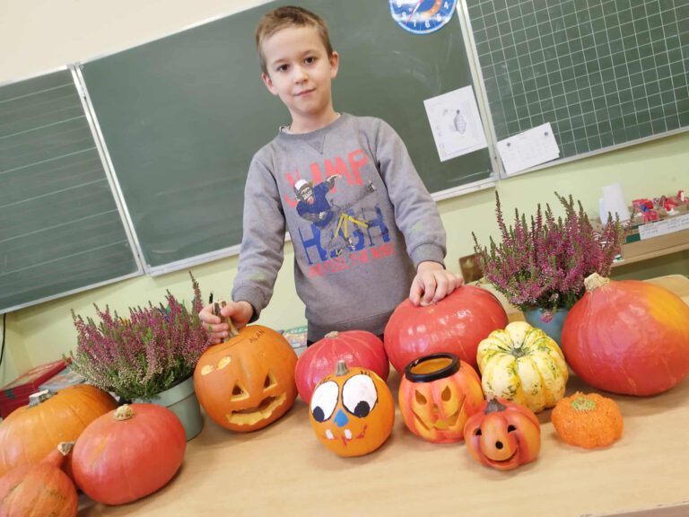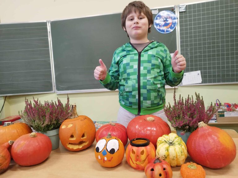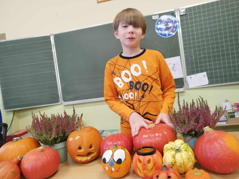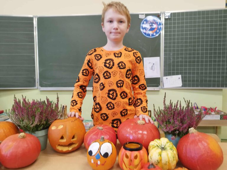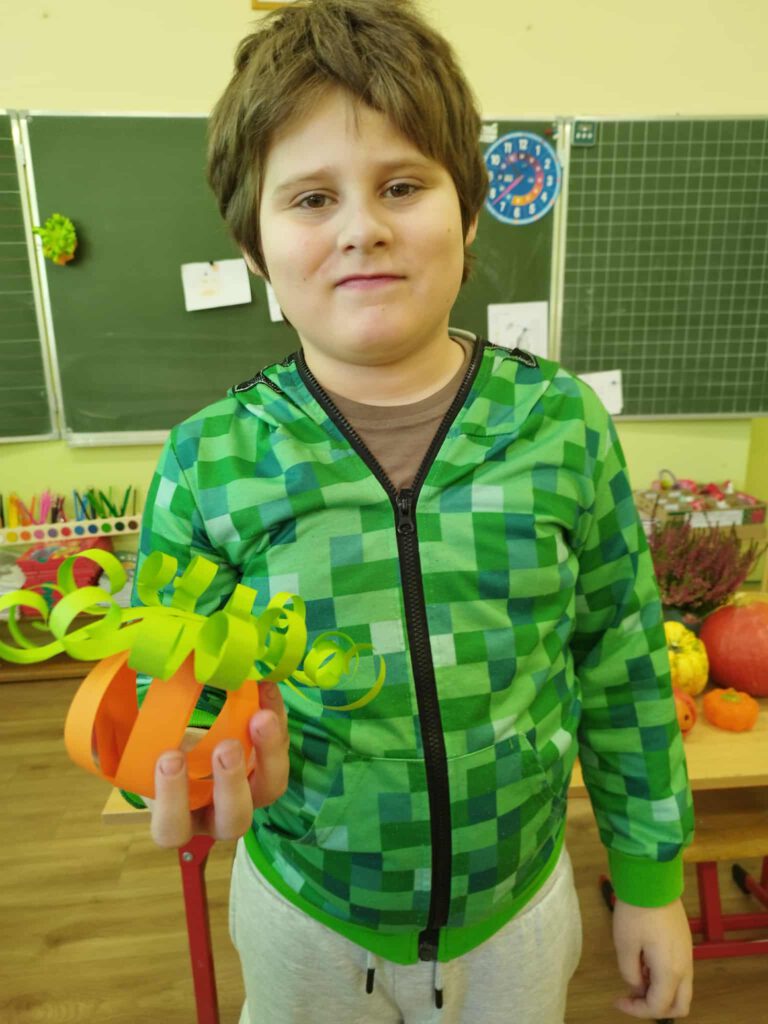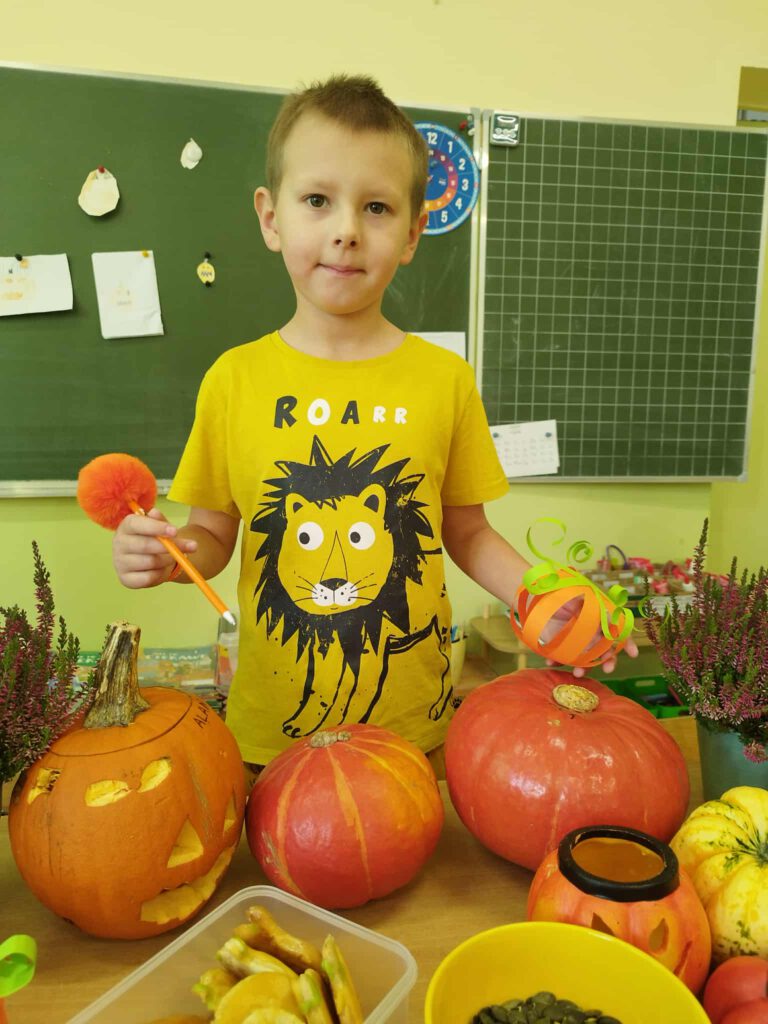 31 października 2025 roku w klasie 2d obchodziliśmy Dzień Dyni. Tego dnia uczniowie przyszli ubrani w kolory dyni – pomarańczowy, żółty i zielony. Sala była pięknie udekorowana dyniowymi ozdobami przyniesionymi przez uczniów, a na wystawie można było podziwiać różnorodne okazy dyni. Oglądaliśmy film edukacyjny o właściwościach i rodzajach dyń, wykonywaliśmy przestrzenne dynie z papieru i malowaliśmy dyniowe prace plastyczne. Degustowaliśmy pyszne ciasteczka dyniowe oraz chrupiące pestki dyni. To był bardzo udany, kolorowy i smakowity dzień! 🎃