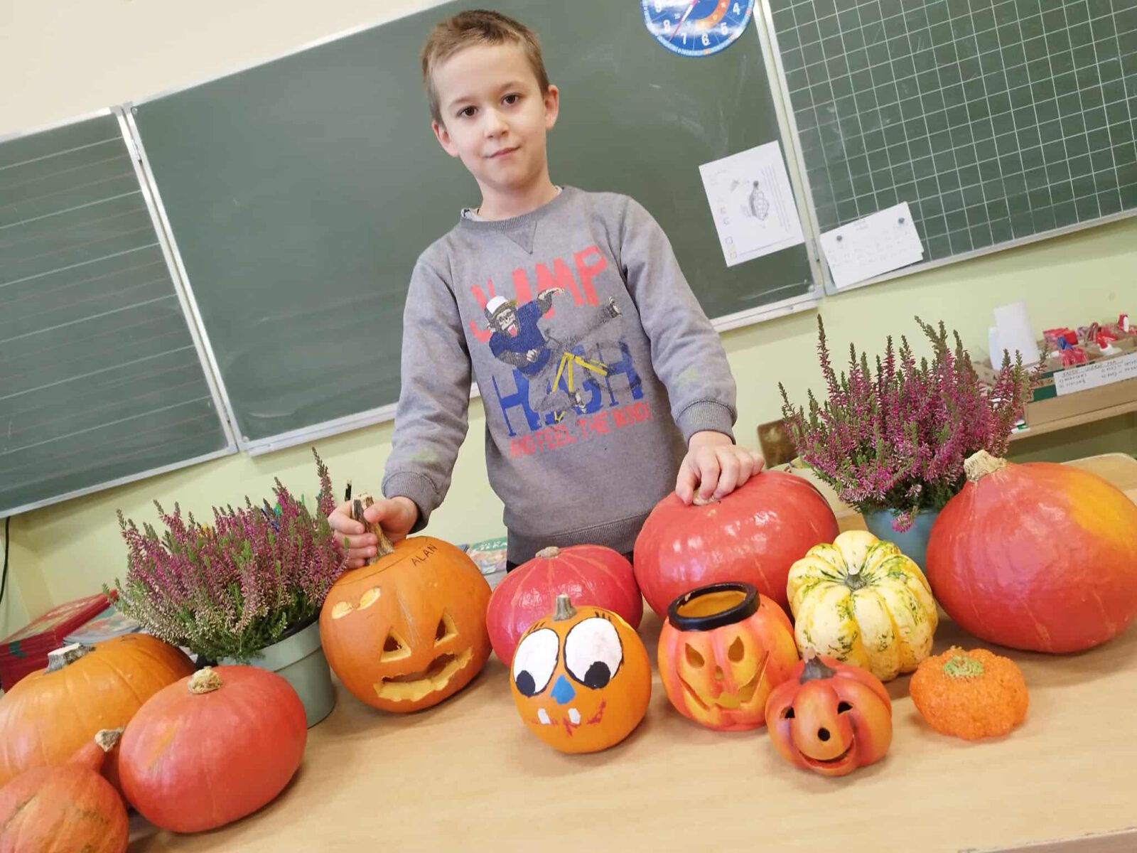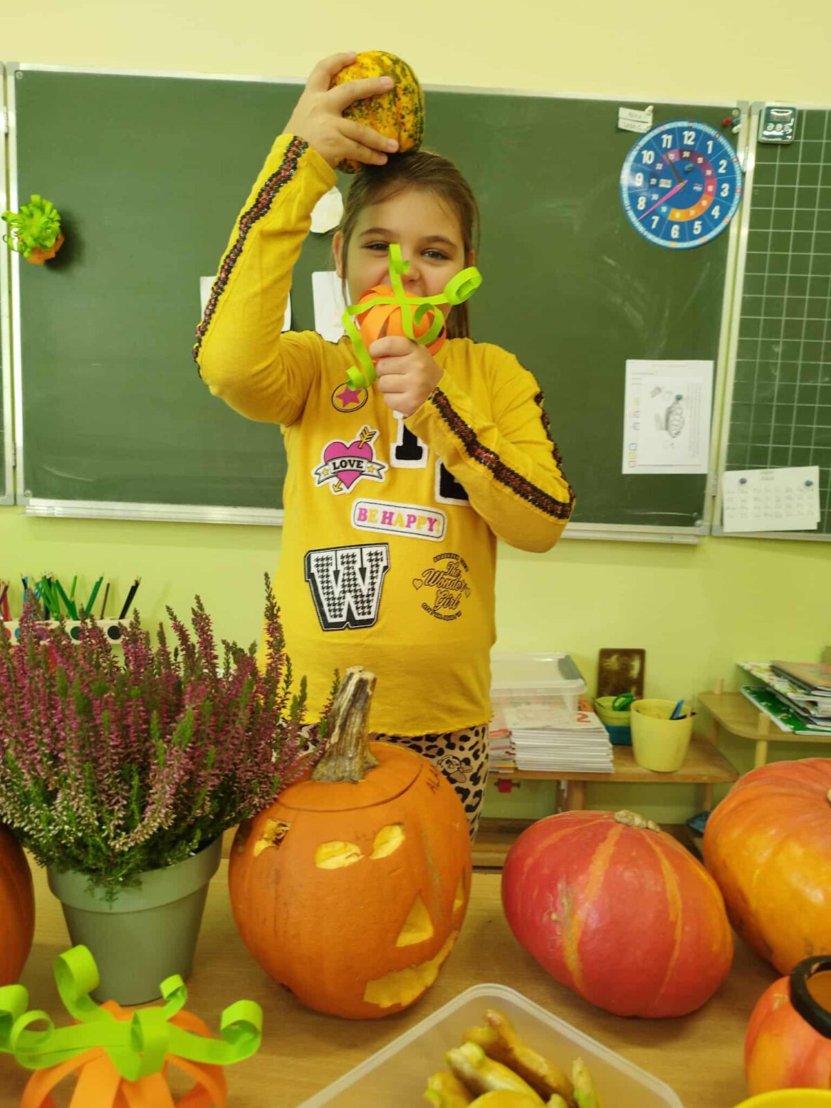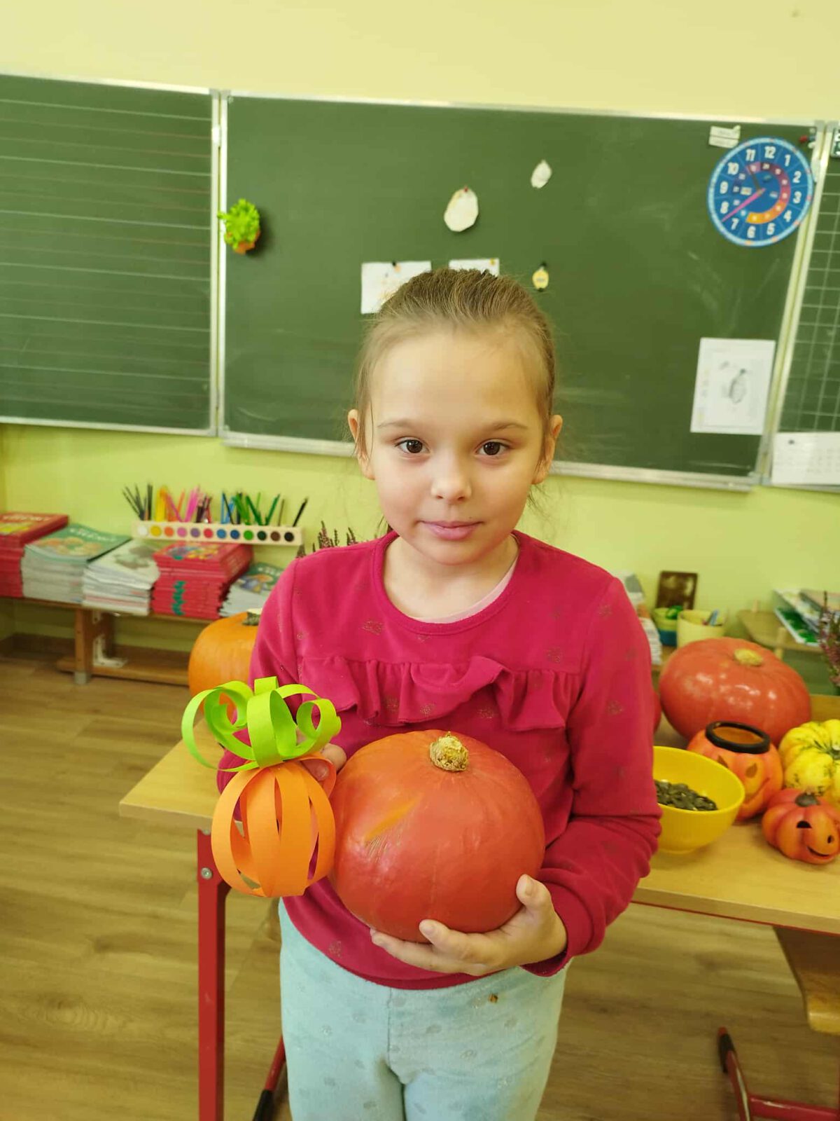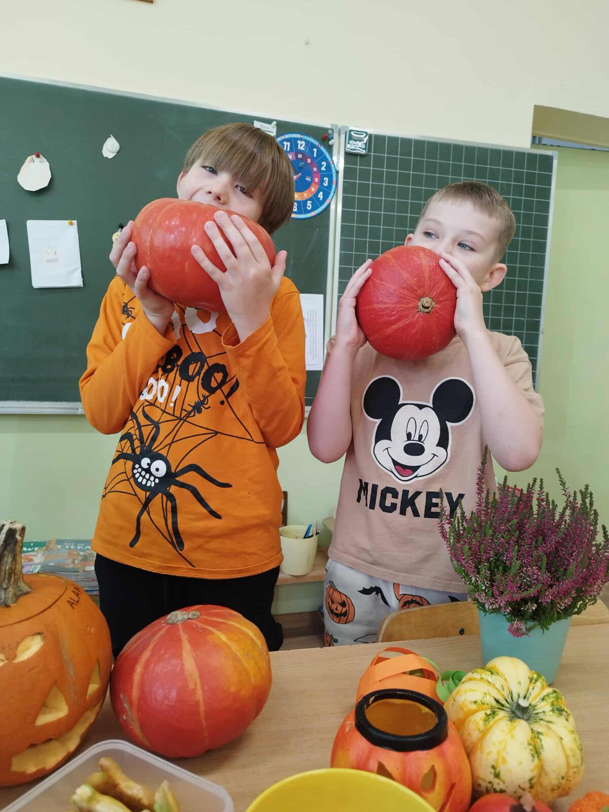 31 października 2025 roku w klasie 2d obchodziliśmy Dzień Dyni. Tego dnia uczniowie przyszli ubrani w kolory dyni – pomarańczowy, żółty i zielony. Sala była pięknie udekorowana dyniowymi ozdobami przyniesionymi przez uczniów, a na wystawie można było podziwiać różnorodne okazy dyni. Oglądaliśmy film edukacyjny o właściwościach i rodzajach dyń, wykonywaliśmy przestrzenne dynie z papieru i malowaliśmy dyniowe prace plastyczne. Degustowaliśmy pyszne ciasteczka dyniowe oraz chrupiące pestki dyni. To był bardzo udany, kolorowy i smakowity dzień! 🎃