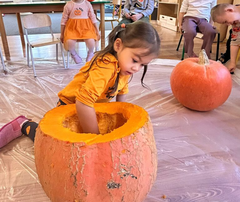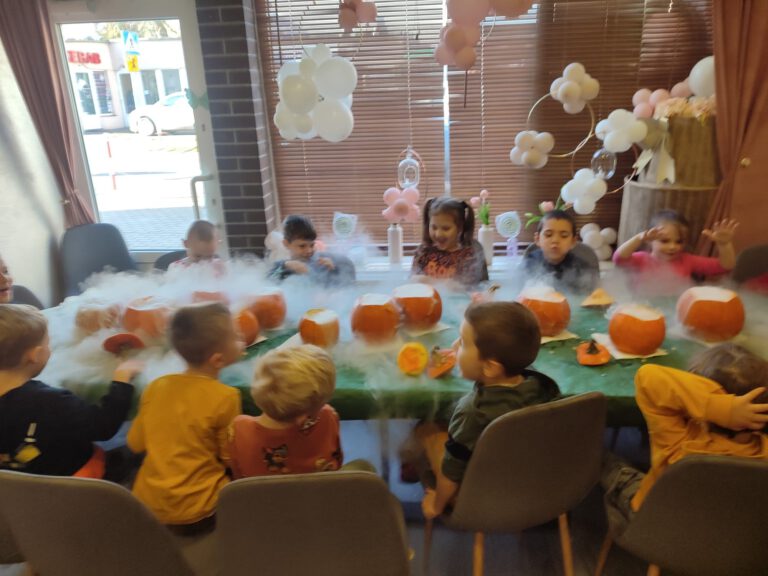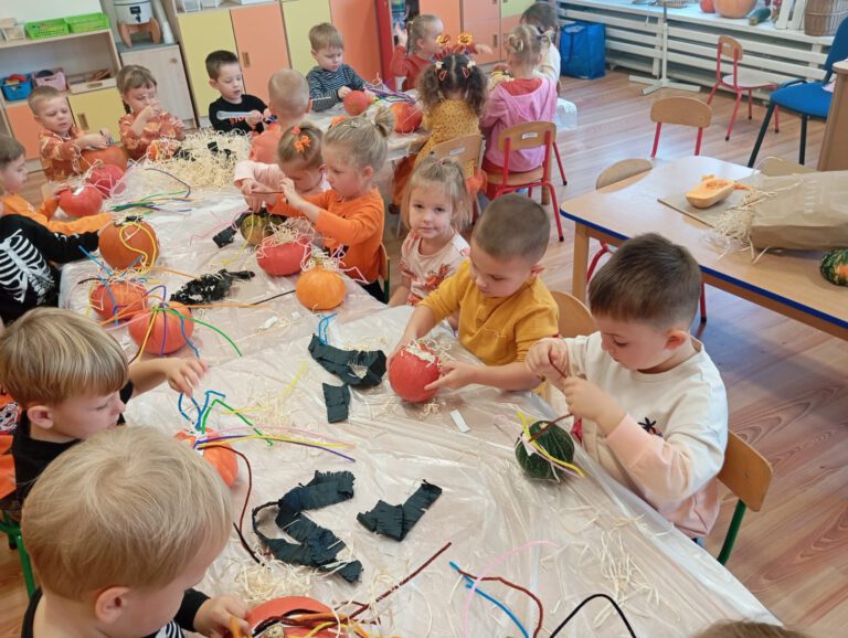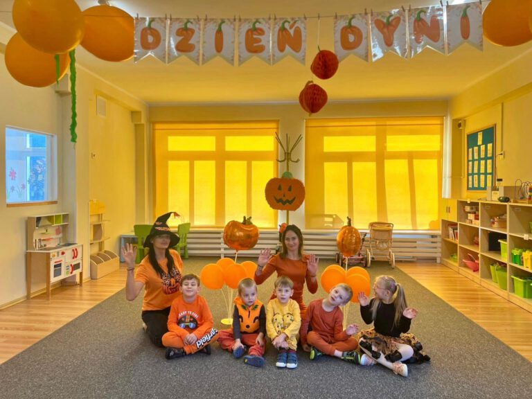 Świętowaliśmy Dzień Dyni – jedno z najbardziej lubianych jesiennych wydarzeń przez nasze przedszkolaki. Dzieci przyszły ubrane w kolory jesieni, a w salach królowały dynie – duże i małe, okrągłe i wydrążone, ozdobione przez dzieci podczas zajęć plastycznych. Były dyniowe konkurencje, zabawy ruchowe, tańce, a nawet smakołyki z dyni przygotowane specjalnie na tę okazję. Podczas zabaw dzieci poznały różne odmiany dyni, dowiedziały się, jak rośnie i do czego można ją wykorzystać. To był dzień pełen śmiechu, kolorów i dobrej zabawy! 🍁