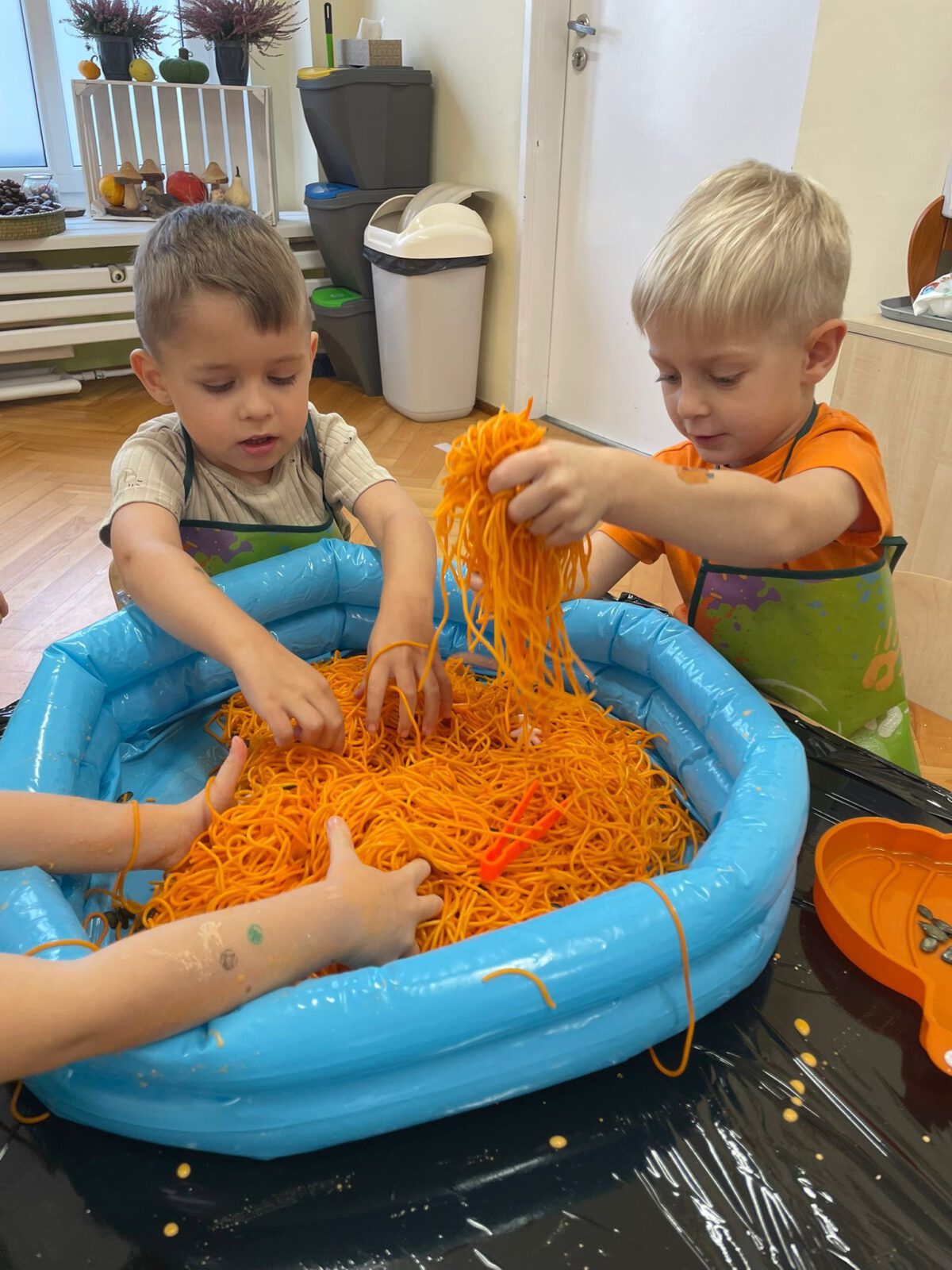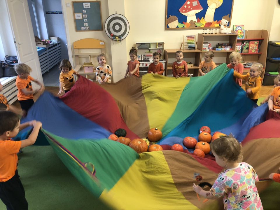 Świętowaliśmy Dzień Dyni – jedno z najbardziej lubianych jesiennych wydarzeń przez nasze przedszkolaki. Dzieci przyszły ubrane w kolory jesieni, a w salach królowały dynie – duże i małe, okrągłe i wydrążone, ozdobione przez dzieci podczas zajęć plastycznych. Były dyniowe konkurencje, zabawy ruchowe, tańce, a nawet smakołyki z dyni przygotowane specjalnie na tę okazję. Podczas zabaw dzieci poznały różne odmiany dyni, dowiedziały się, jak rośnie i do czego można ją wykorzystać. To był dzień pełen śmiechu, kolorów i dobrej zabawy! 🍁