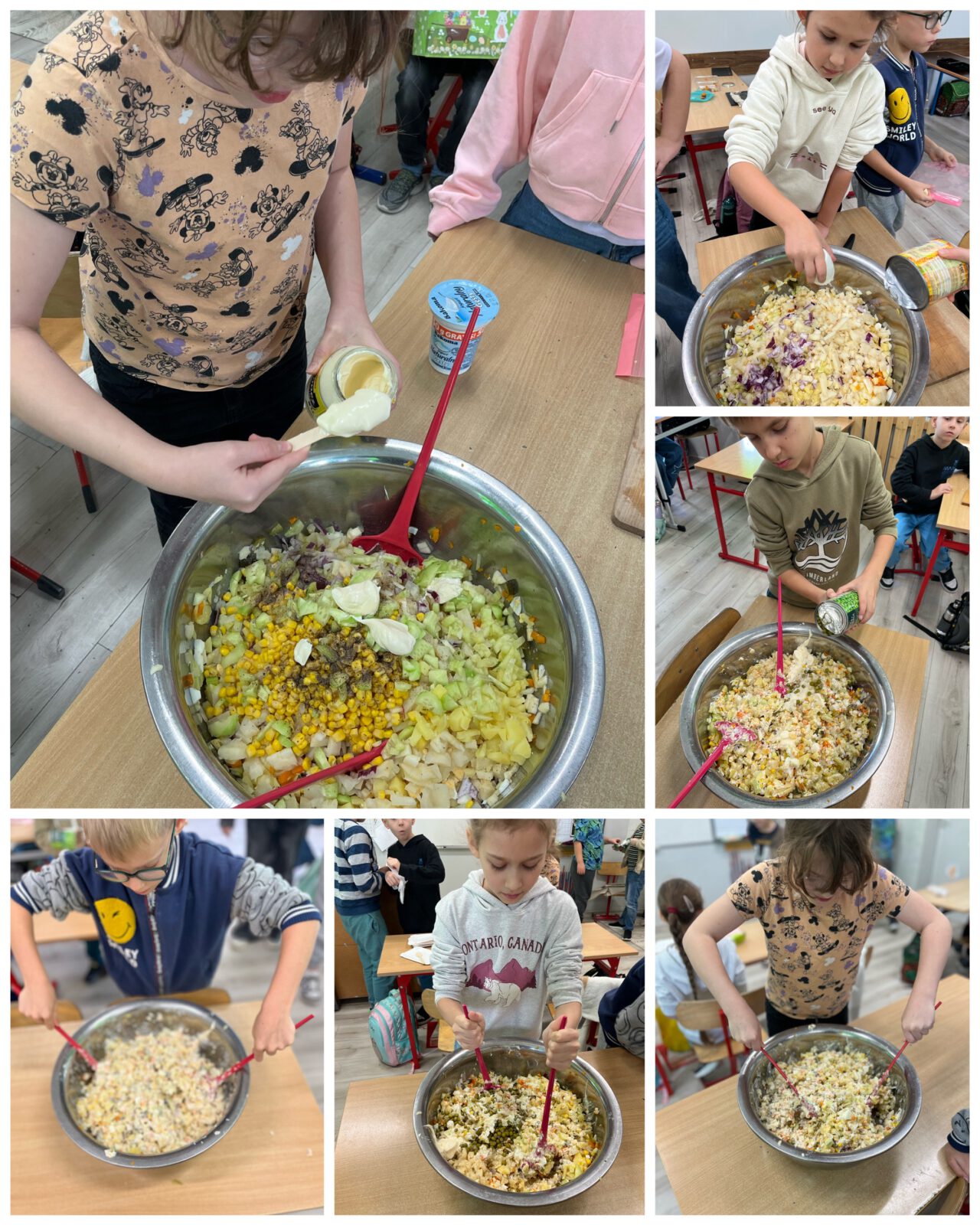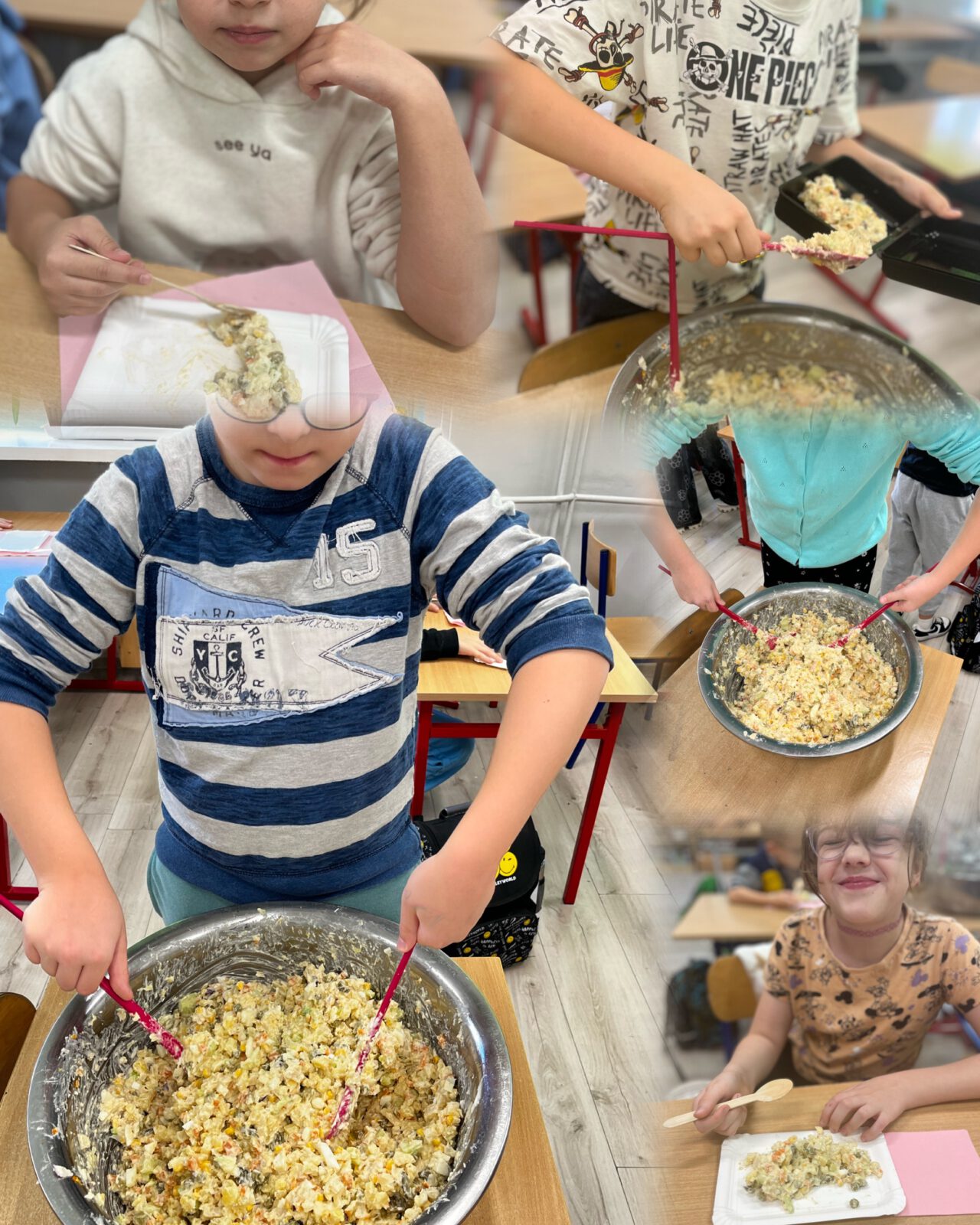 Uczniowie z klasy 3 B w dniu zdrowego jedzenia przygotowali wspólną sałatkę jarzynową..