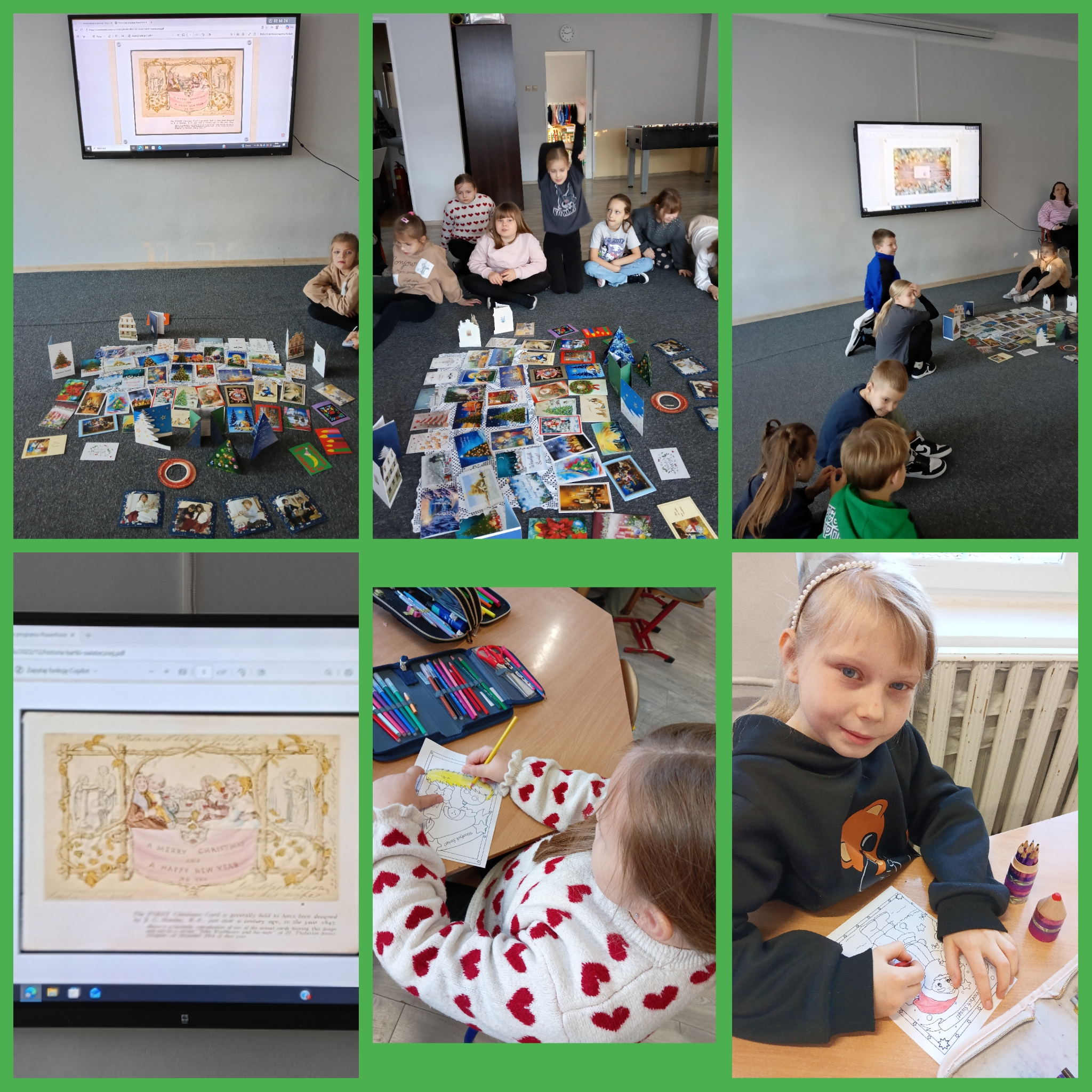 Na te pytania dzieci uzyskały odpowiedź podczas dzisiejszych zajęć. Poznały historię pierwszej kartki z życzeniami, obejrzały prezentację medialną, a także kolekcję różnorodnych kartek. Przygotowały też swoje kartki i samodzielnie je wypisały.