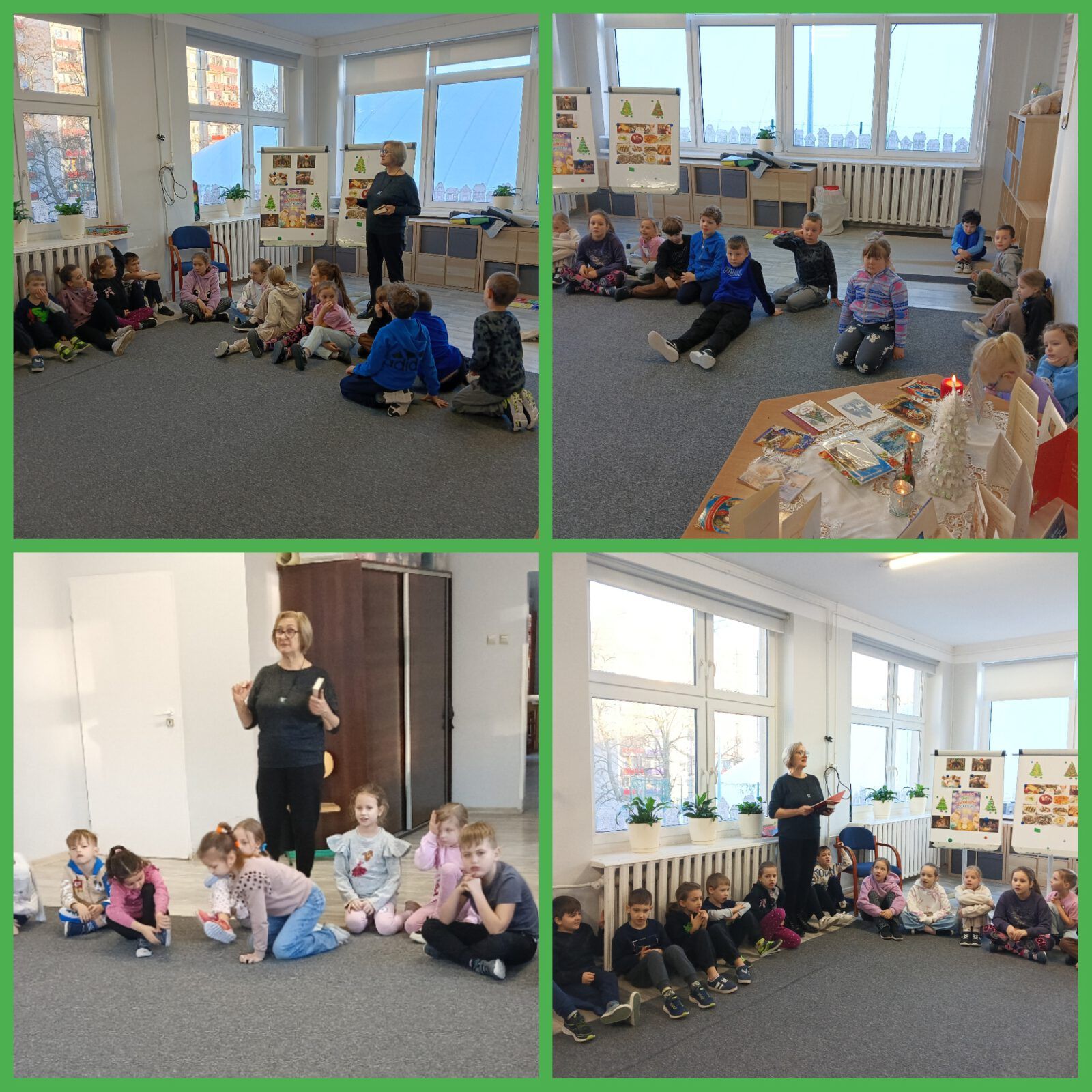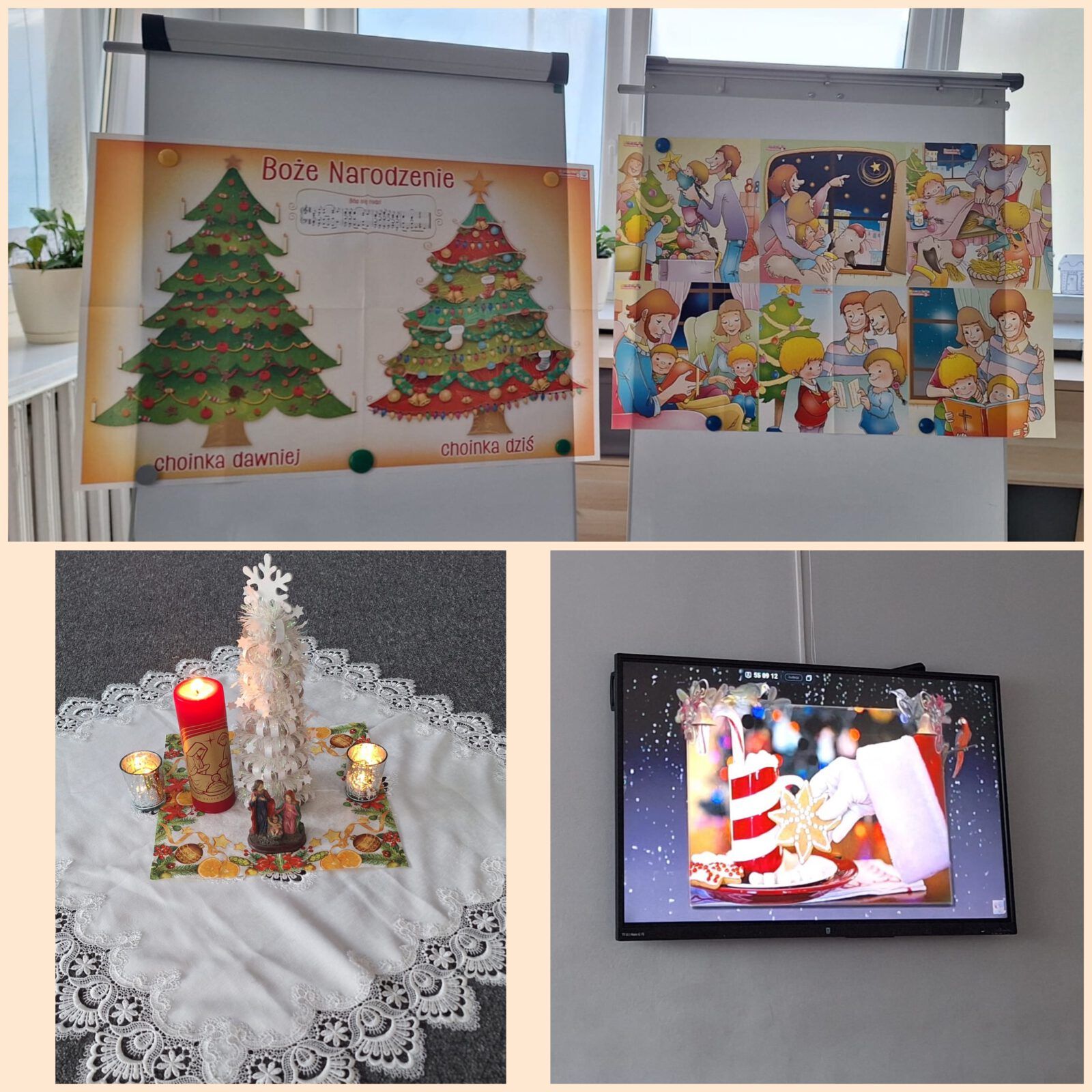 Podczas zajęć dzieci dowiedziały się, jak święta spędza się w różnych krajach, składały sobie życzenia, śpiewały kolędy i pastorałki. Obejrzały też bajkę „Opowieść wigilijna”.