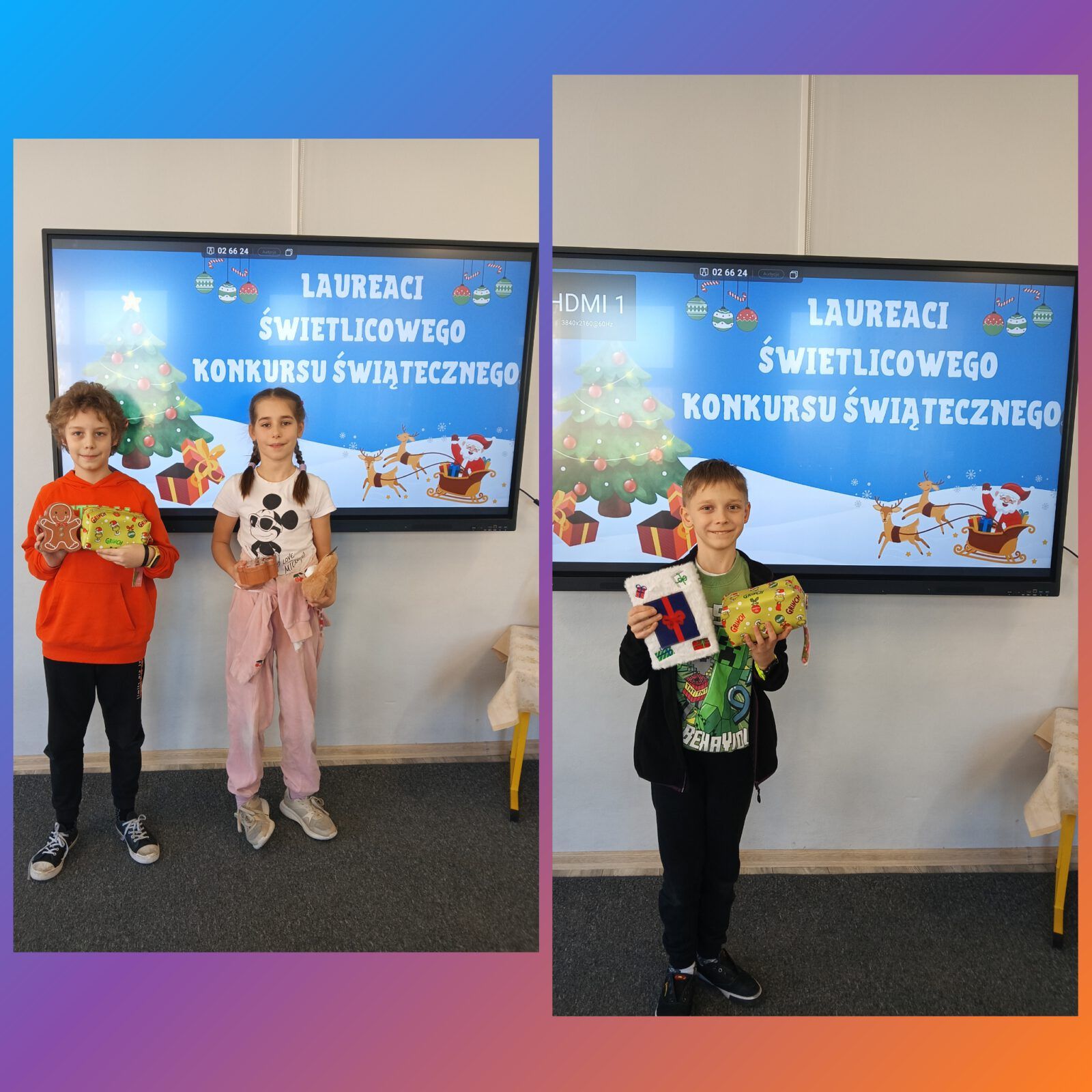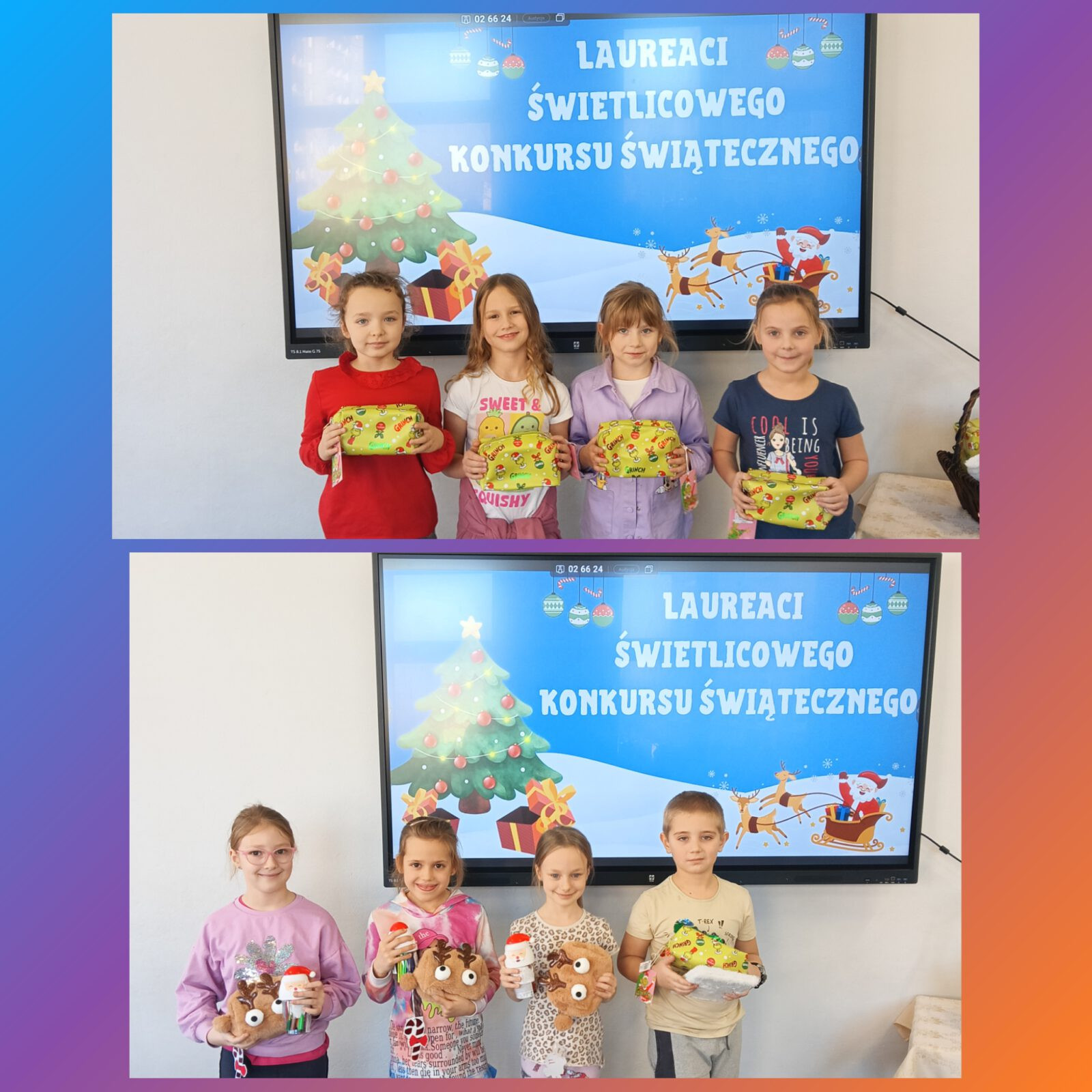 17 grudnia w świetlicy szkolnej uroczyście nagrodzono LAUREATÓW świątecznego konkursu. Wzięło w nim udział ponad 50 uczniów z klas I-III.