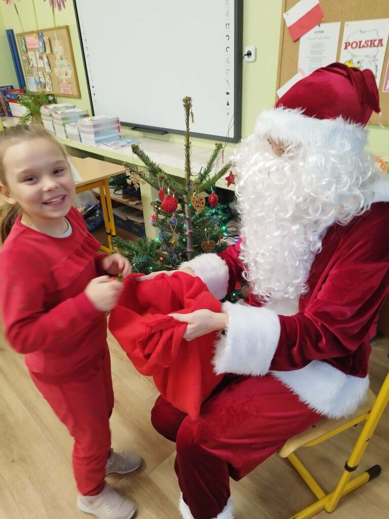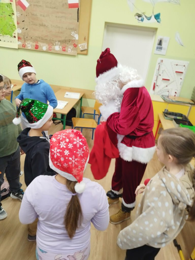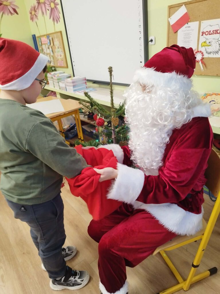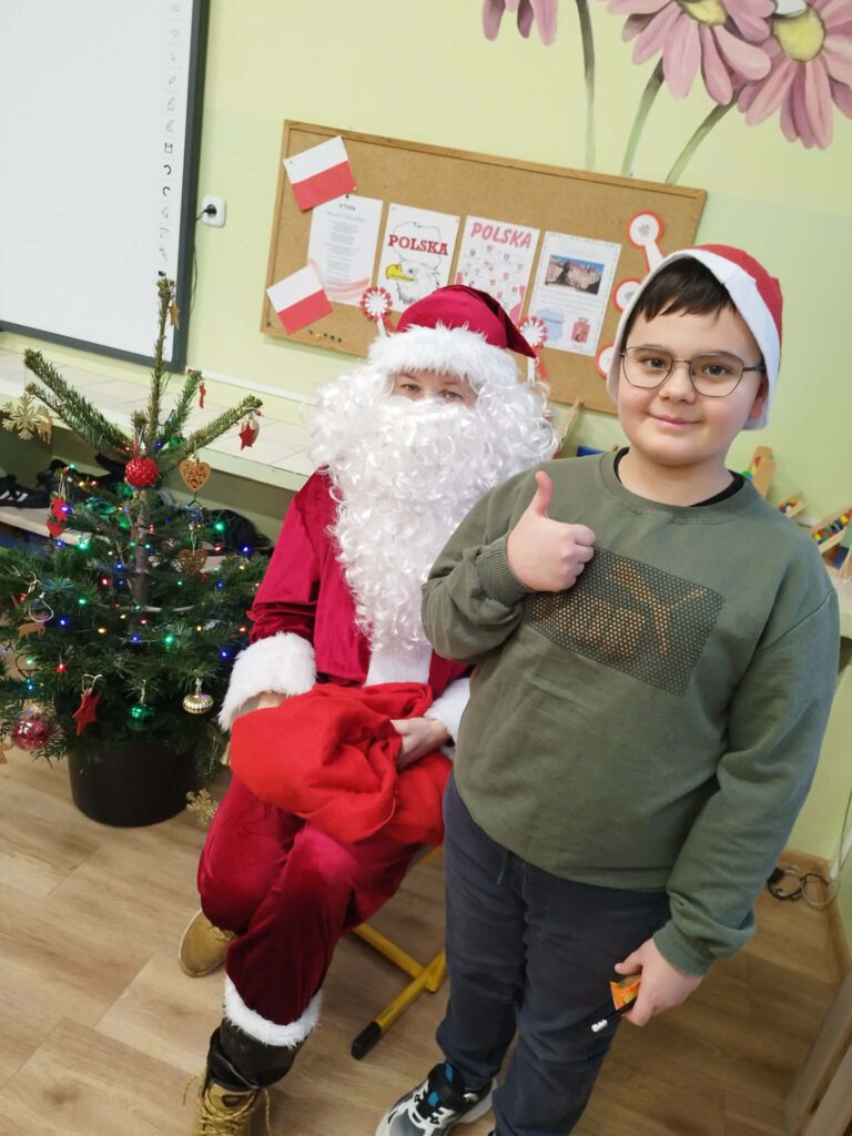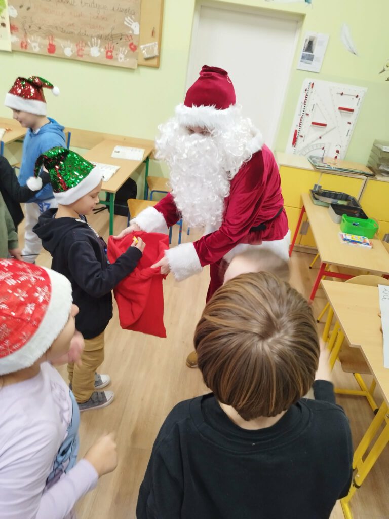 W piątek, 5 grudnia 2025 r., uczniowie klasy 2d wspólnie udekorowali świąteczne drzewko, wprowadzając do sali wyjątkową, bożonarodzeniową atmosferę. Kiedy choinka była już gotowa, dzieci spotkała nieoczekiwana niespodzianka – odwiedził je sam święty Mikołaj! Mikołaj wręczył uczniom słodkie upominki, a w klasie panowała radosna i pełna uśmiechów atmosfera. Był to wyjątkowy, pełen magii dzień, który na długo pozostanie w pamięci dzieci.