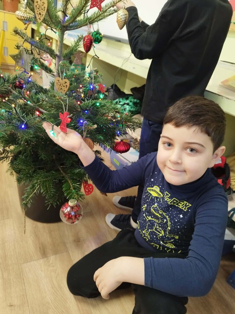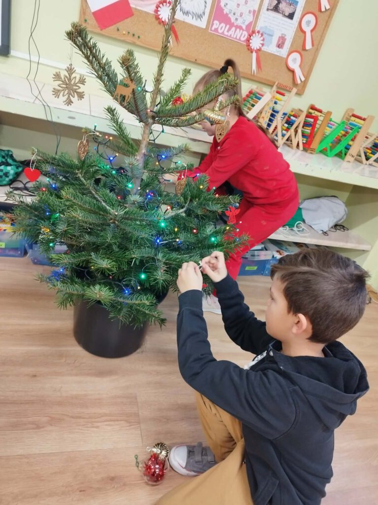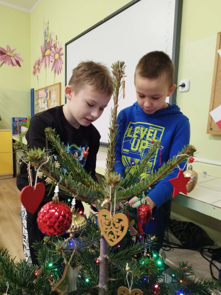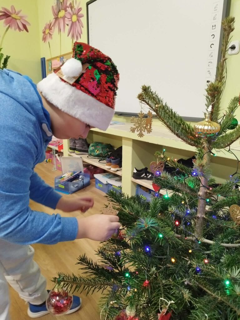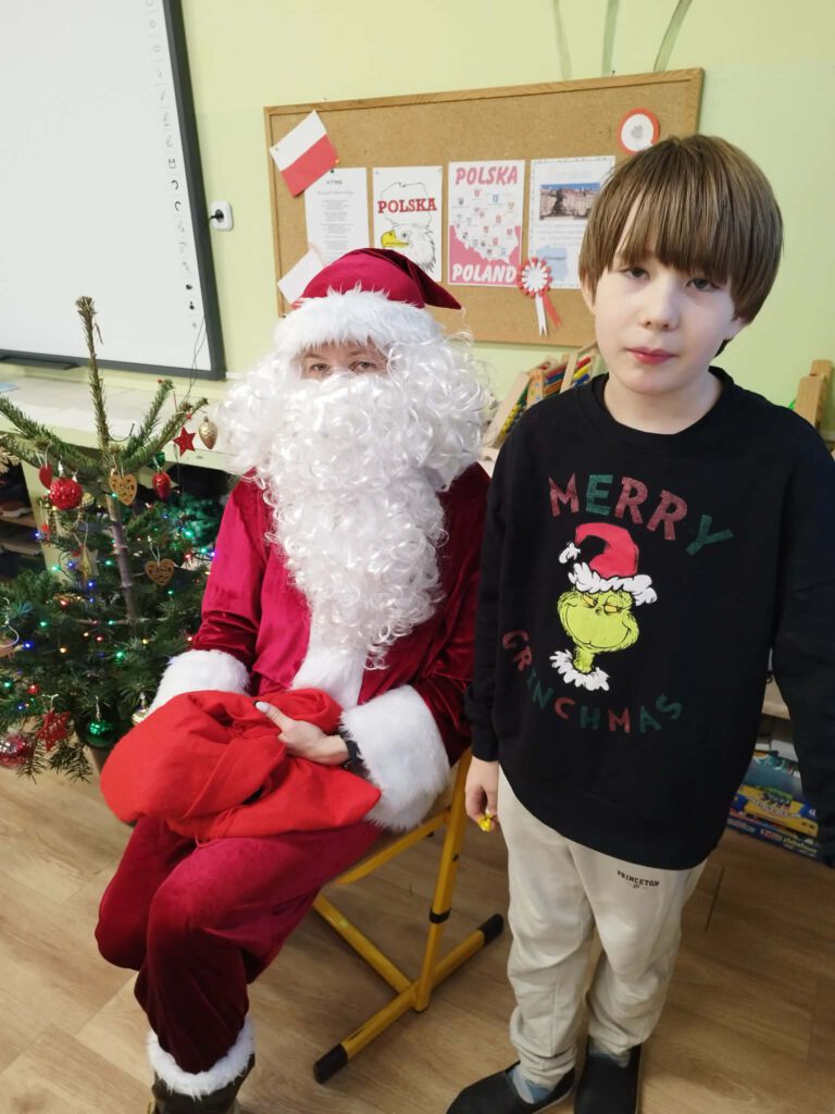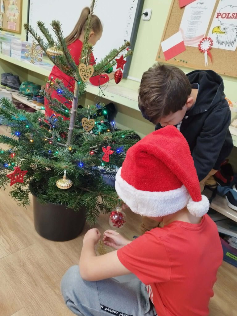 W piątek, 5 grudnia 2025 r., uczniowie klasy 2d wspólnie udekorowali świąteczne drzewko, wprowadzając do sali wyjątkową, bożonarodzeniową atmosferę. Kiedy choinka była już gotowa, dzieci spotkała nieoczekiwana niespodzianka – odwiedził je sam święty Mikołaj! Mikołaj wręczył uczniom słodkie upominki, a w klasie panowała radosna i pełna uśmiechów atmosfera. Był to wyjątkowy, pełen magii dzień, który na długo pozostanie w pamięci dzieci.