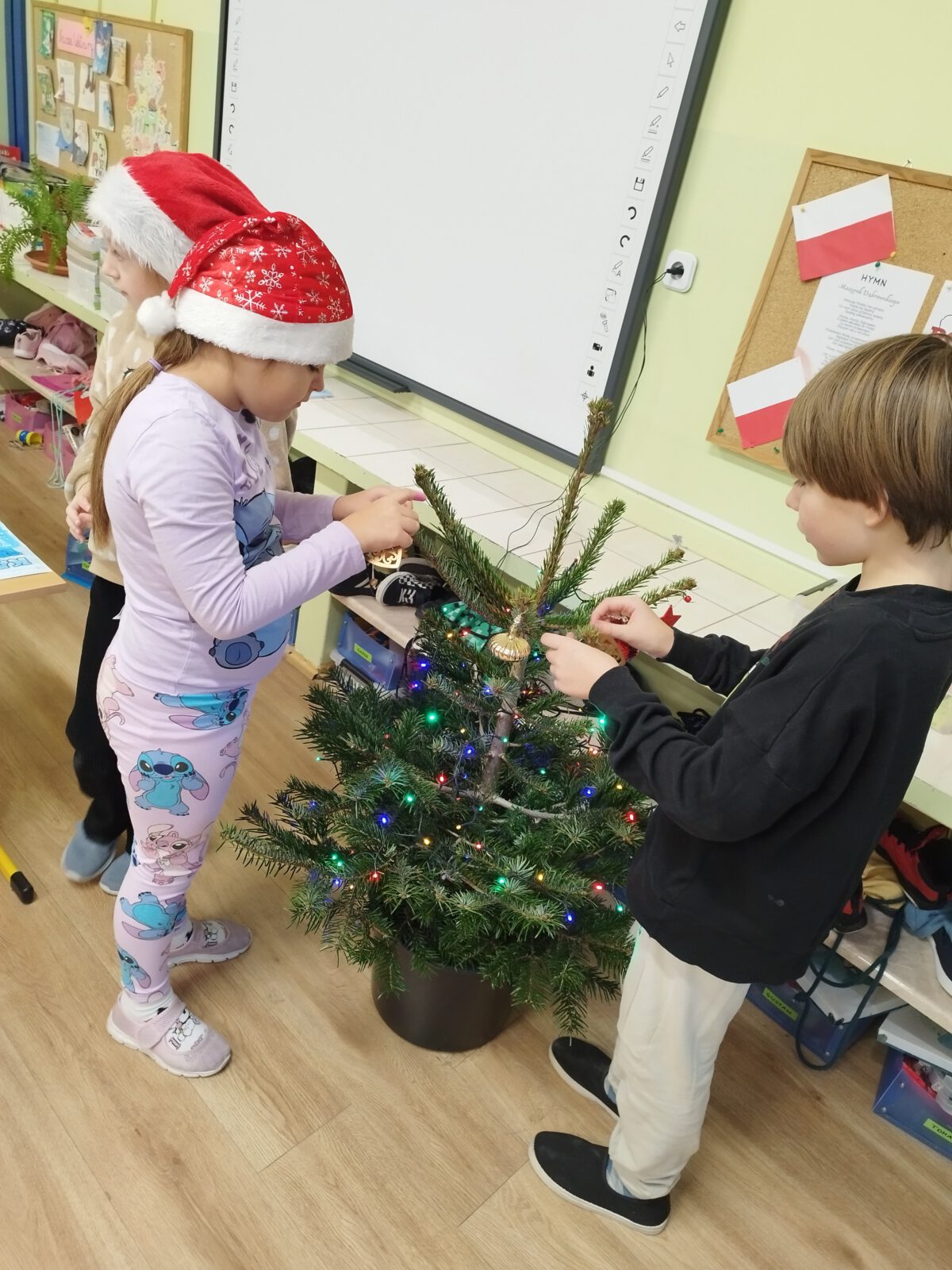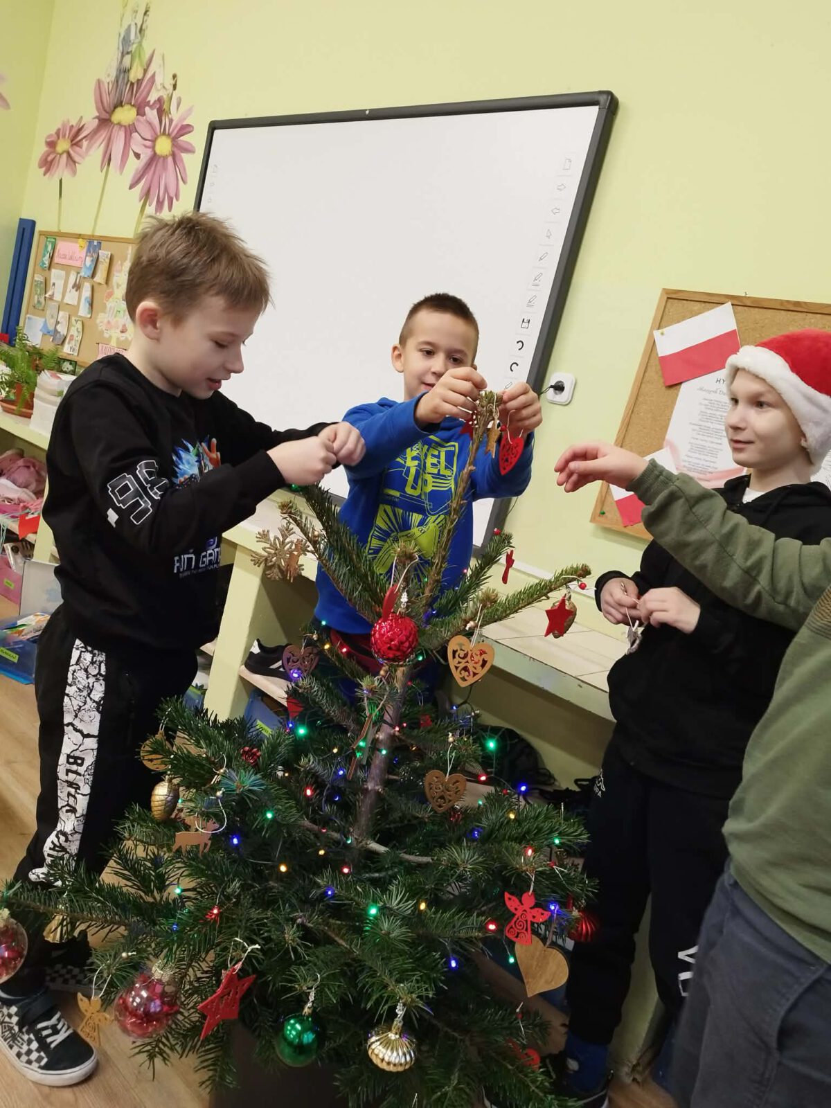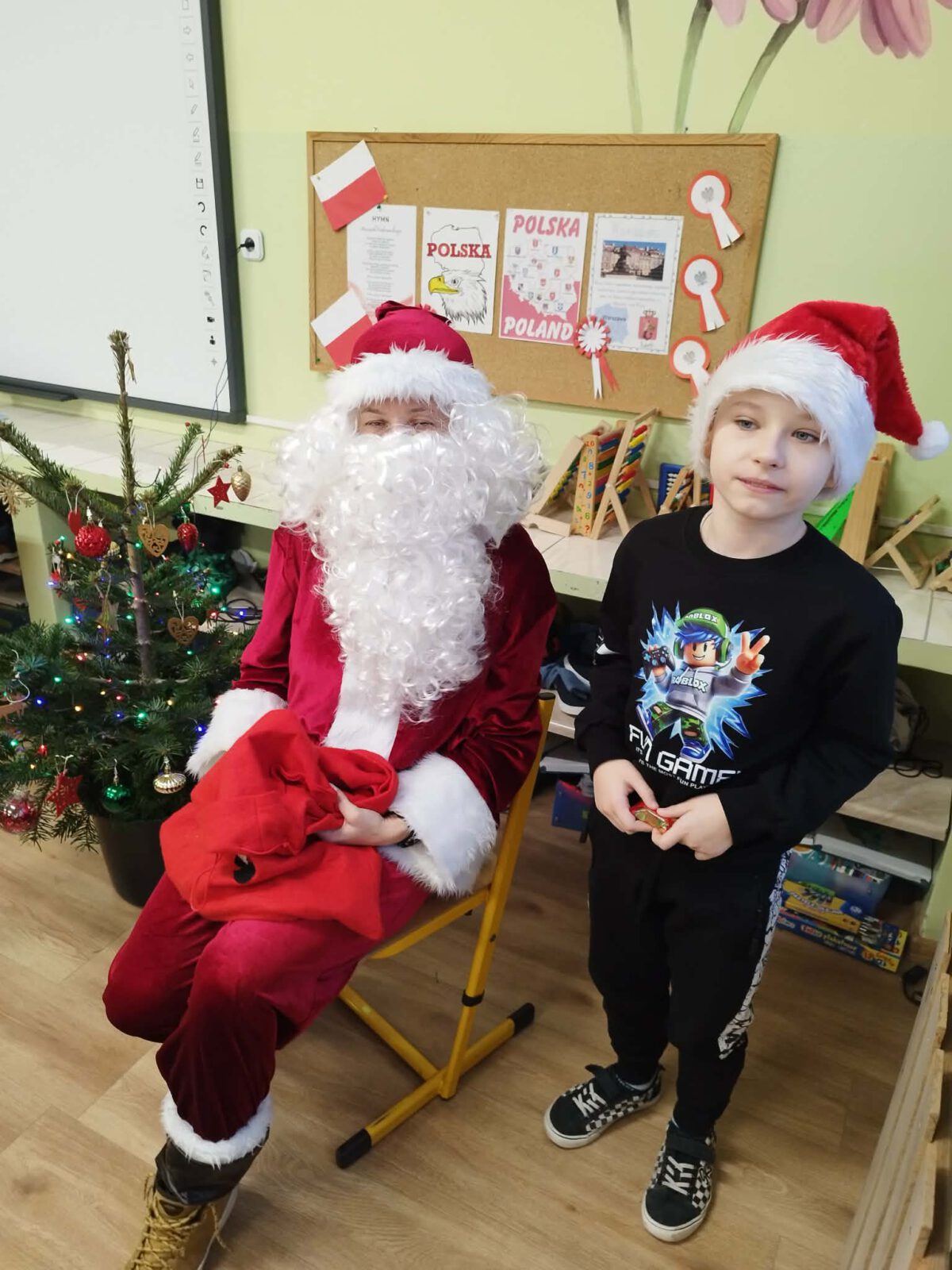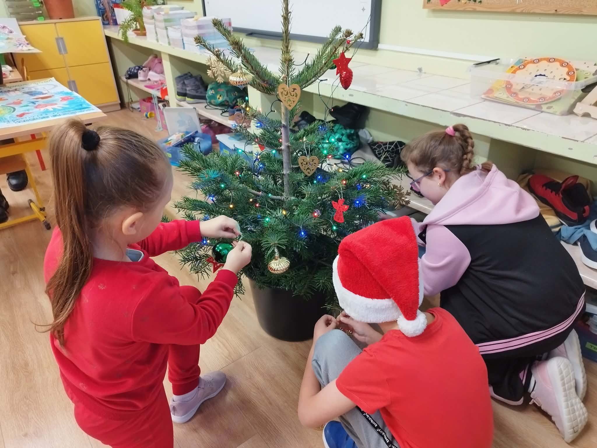 W piątek, 5 grudnia 2025 r., uczniowie klasy 2d wspólnie udekorowali świąteczne drzewko, wprowadzając do sali wyjątkową, bożonarodzeniową atmosferę. Kiedy choinka była już gotowa, dzieci spotkała nieoczekiwana niespodzianka – odwiedził je sam święty Mikołaj! Mikołaj wręczył uczniom słodkie upominki, a w klasie panowała radosna i pełna uśmiechów atmosfera. Był to wyjątkowy, pełen magii dzień, który na długo pozostanie w pamięci dzieci.