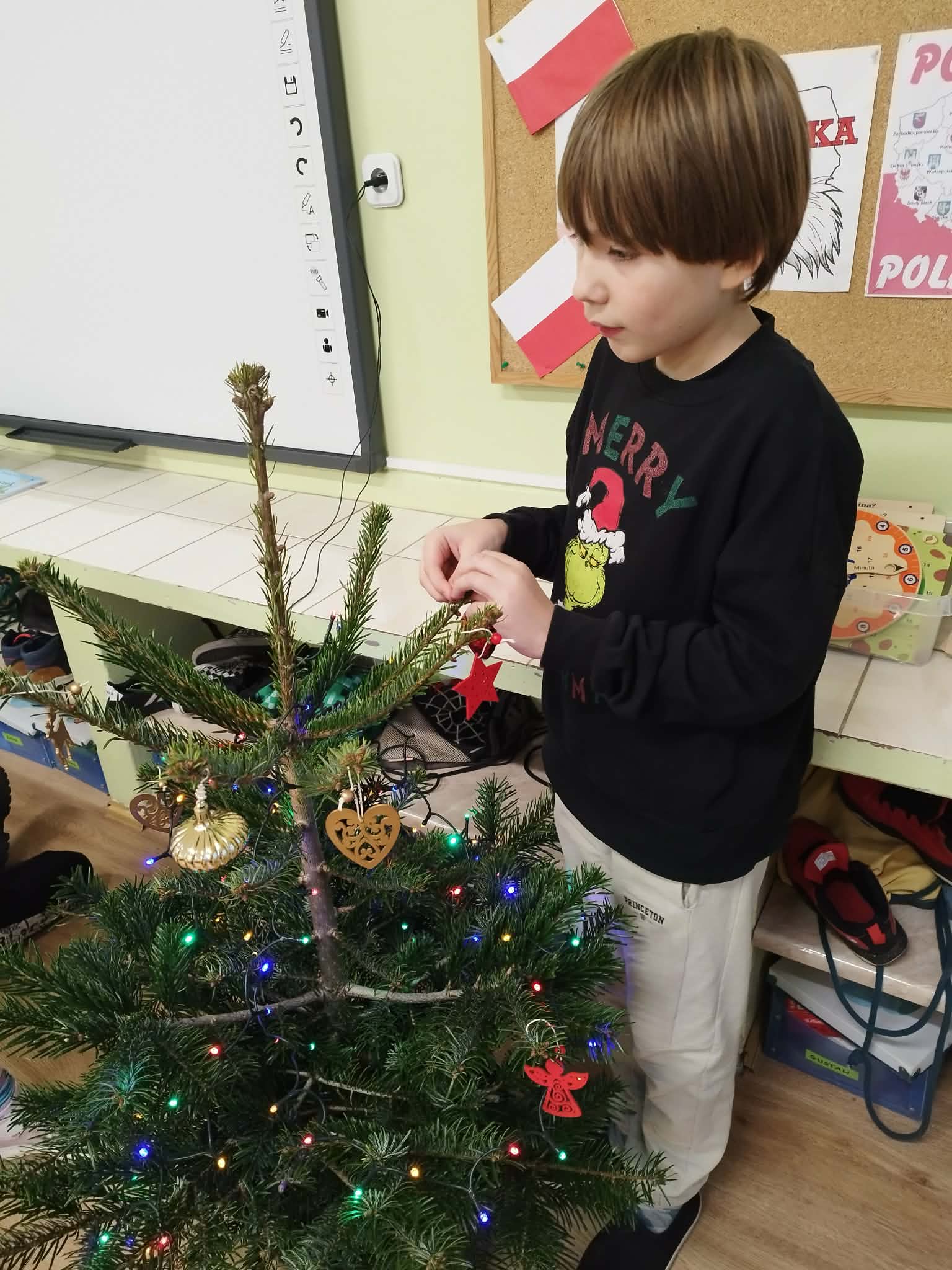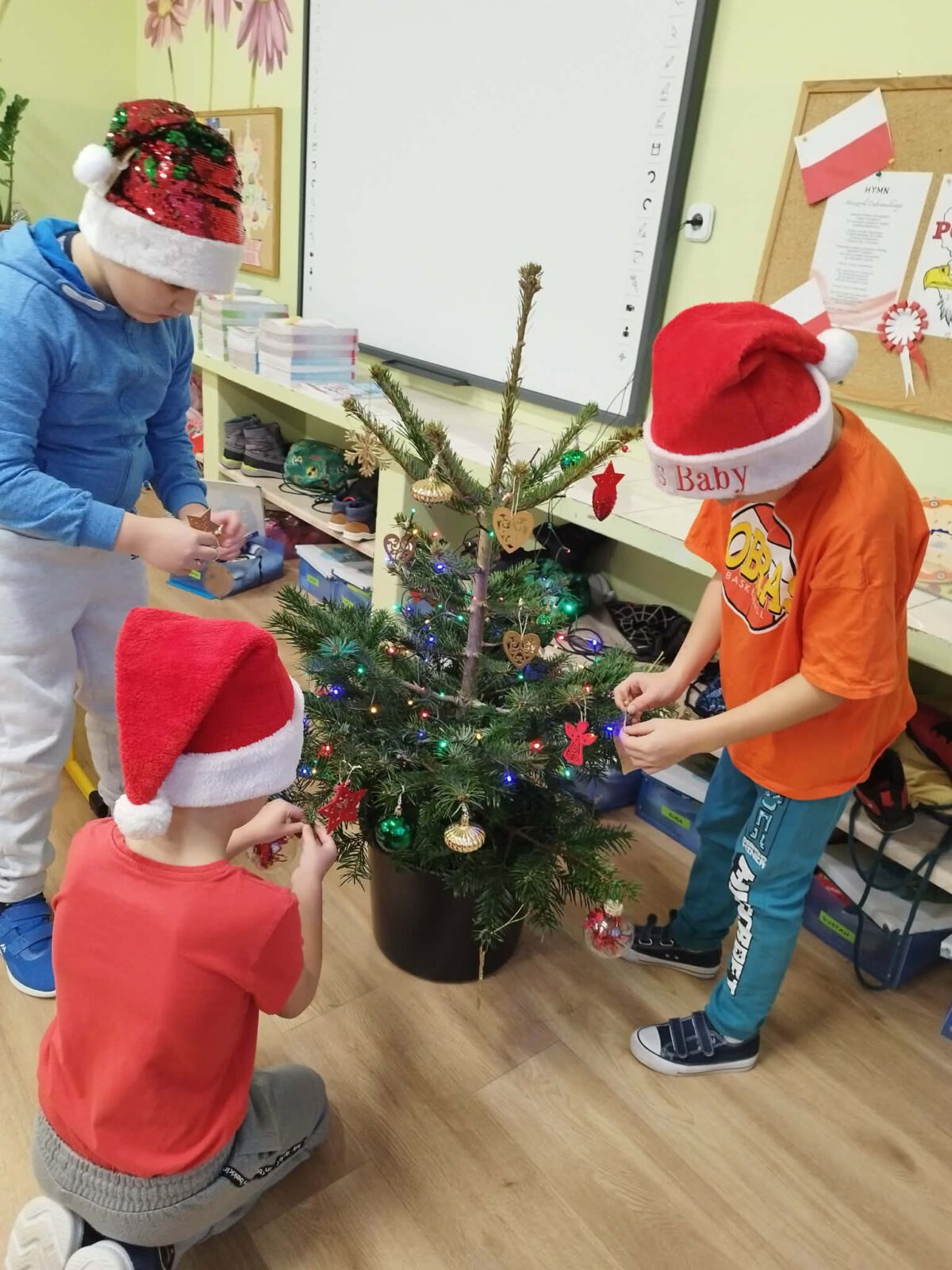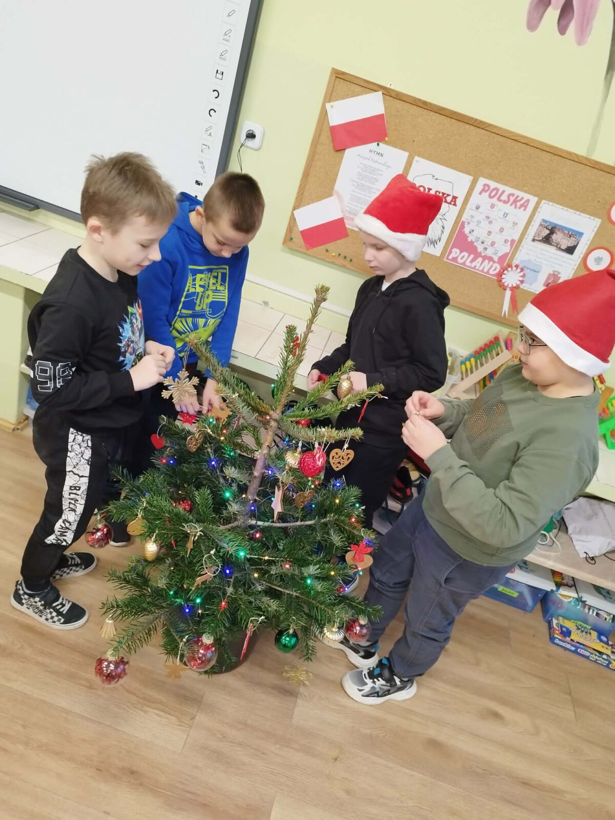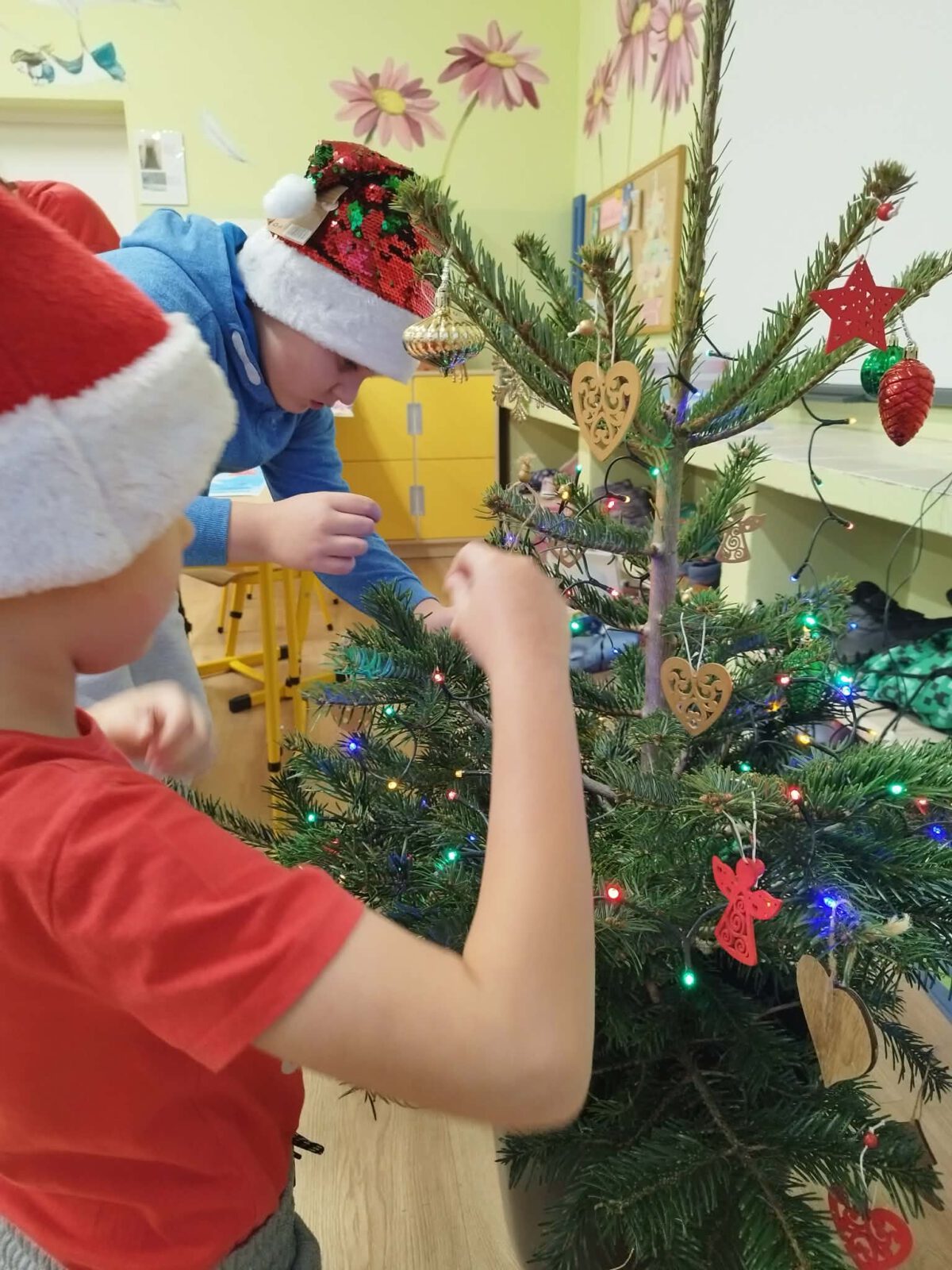 W piątek, 5 grudnia 2025 r., uczniowie klasy 2d wspólnie udekorowali świąteczne drzewko, wprowadzając do sali wyjątkową, bożonarodzeniową atmosferę. Kiedy choinka była już gotowa, dzieci spotkała nieoczekiwana niespodzianka – odwiedził je sam święty Mikołaj! Mikołaj wręczył uczniom słodkie upominki, a w klasie panowała radosna i pełna uśmiechów atmosfera. Był to wyjątkowy, pełen magii dzień, który na długo pozostanie w pamięci dzieci.