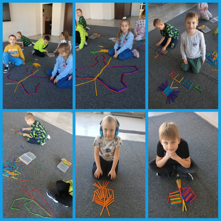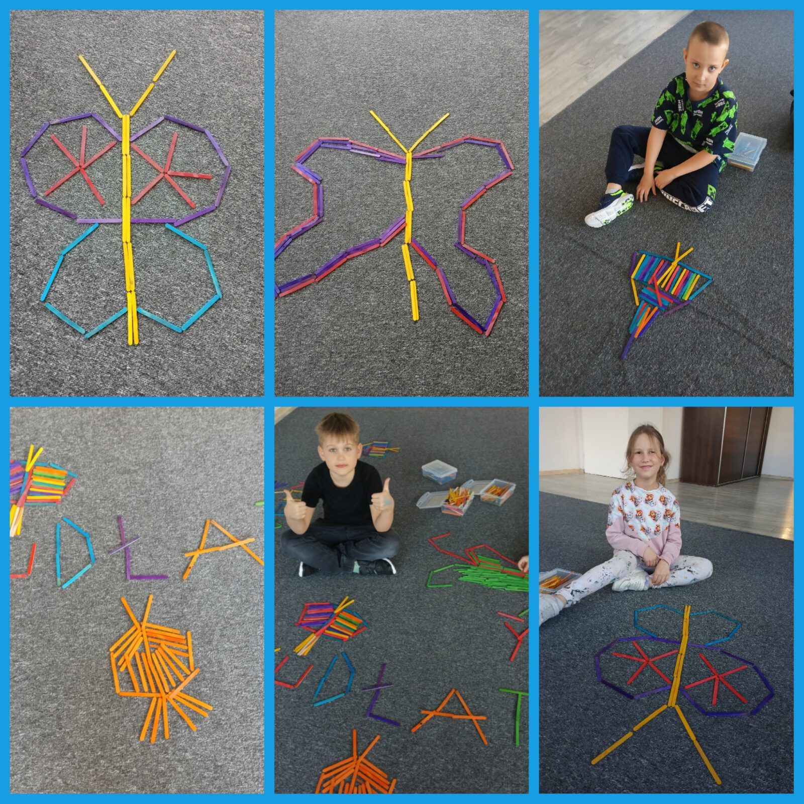 Układały też motyle z kolorowych, drewnianych patyczków.