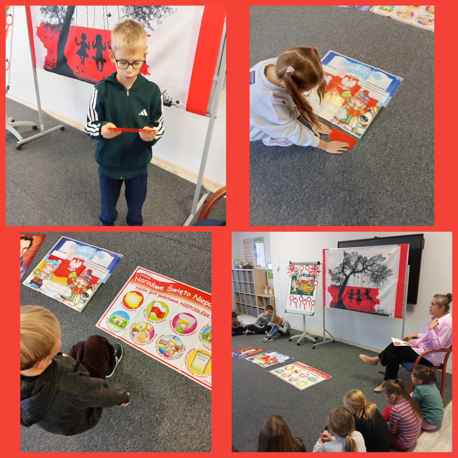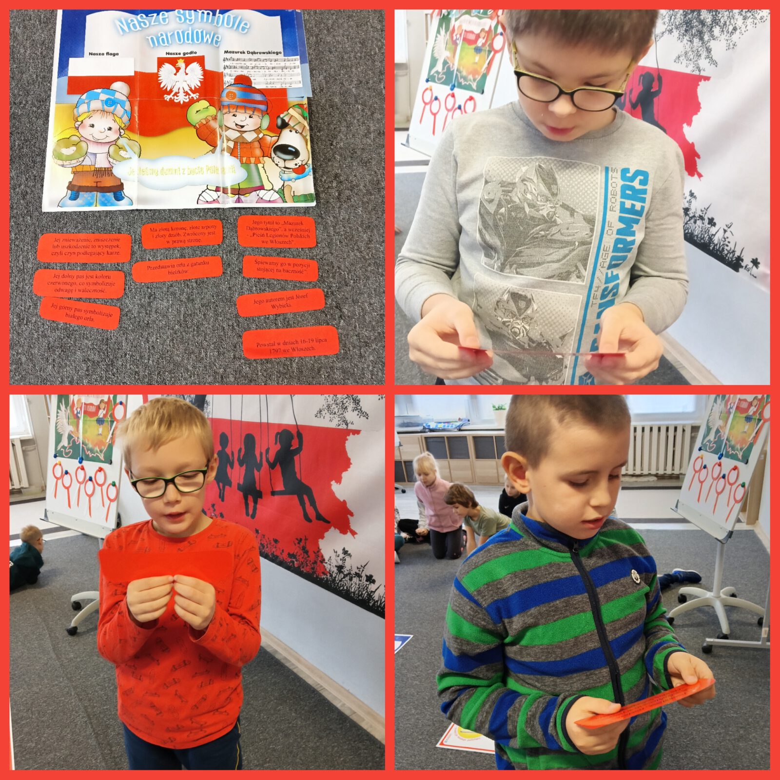 W związku ze zbliżającym się Narodowym Świętem Niepodległości, w świetlicy szkolnej dzieci utrwaliły wiedzę na temat symboli narodowych: