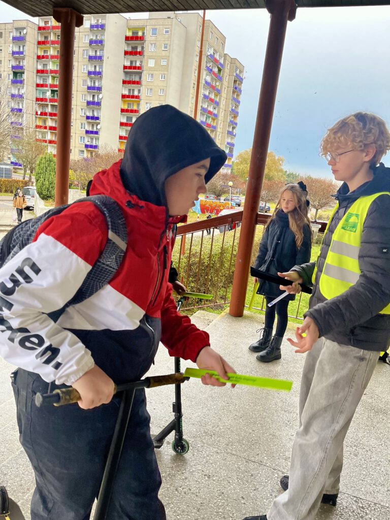 Odblaski rozdawane były również uczniom, którzy przyszli do szkoły pieszo 🙂