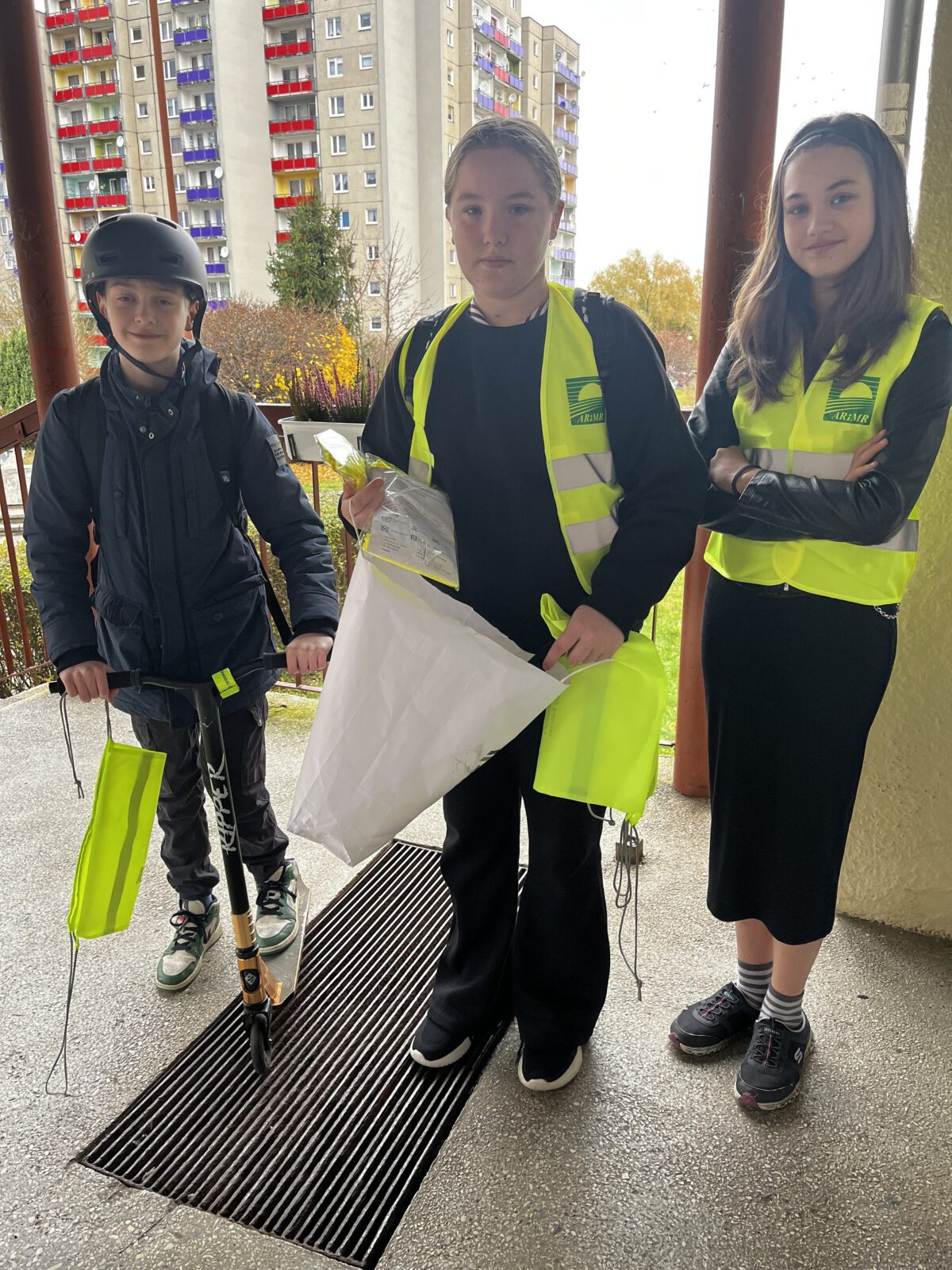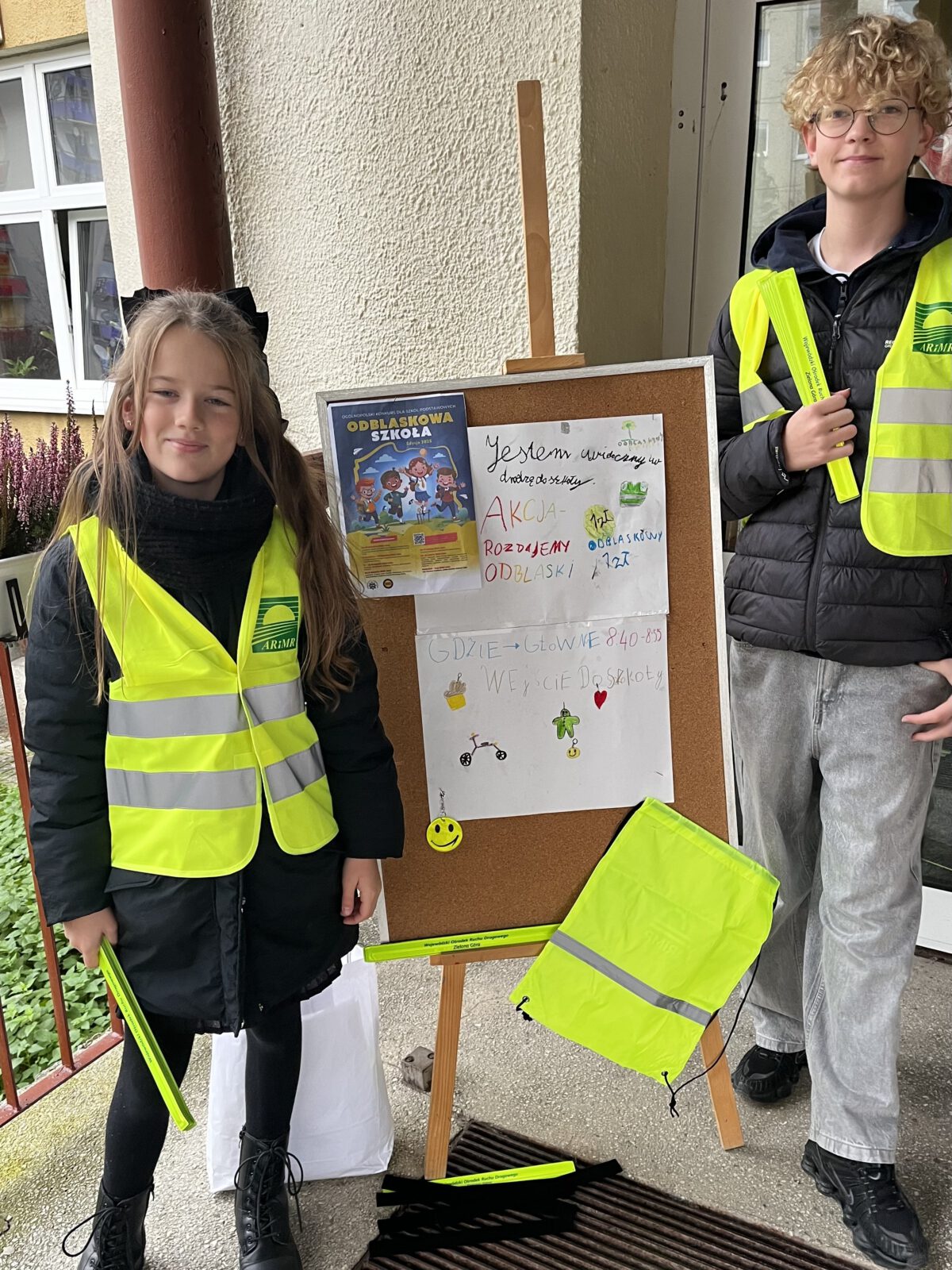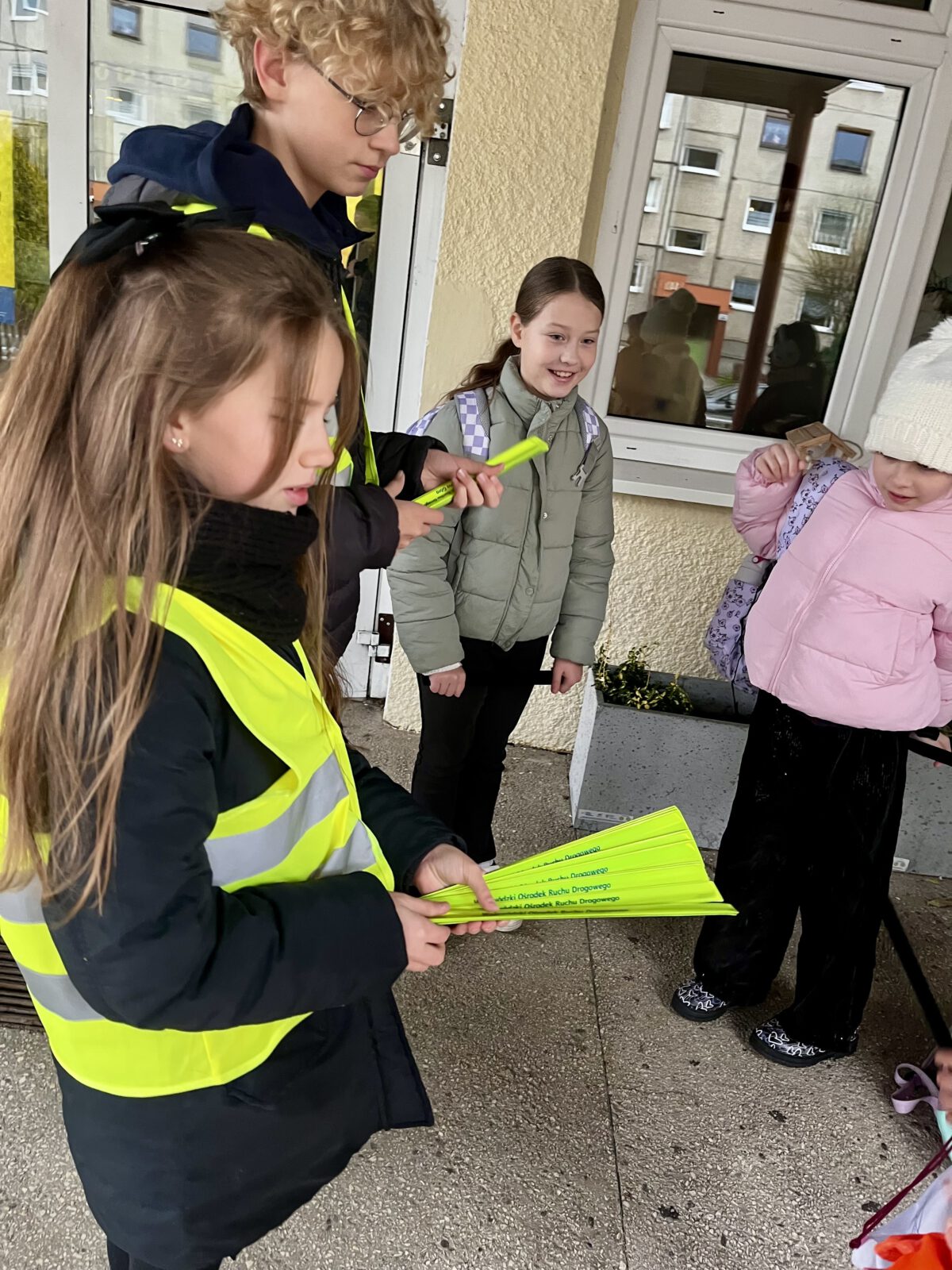 Odblaski rozdawane były również uczniom, którzy przyszli do szkoły pieszo 🙂