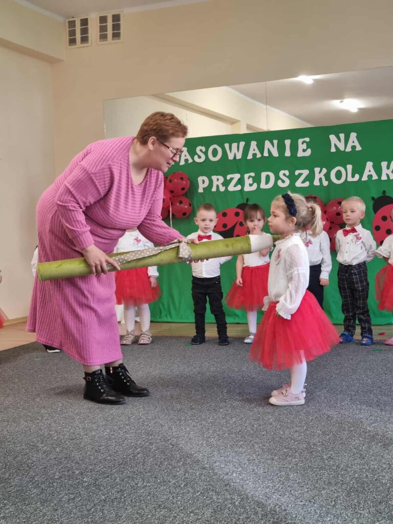 Najmłodsze dzieci przeżyły swoje pierwsze wielkie wydarzenie – Pasowanie na Przedszkolaka. To ważny moment w życiu każdego dziecka, pełen emocji, uśmiechów i wzruszeń. 💖 Dzieci z dumą zaprezentowały swoje umiejętności – śpiewały piosenki, recytowały wierszyki i tańczyły, pokazując, że są gotowe na przedszkolne przygody. 🧸🎶 Najbardziej emocjonującym momentem było oczywiście złożenie ślubowania i uroczyste pasowanie przez Panią Wicedyrektor.