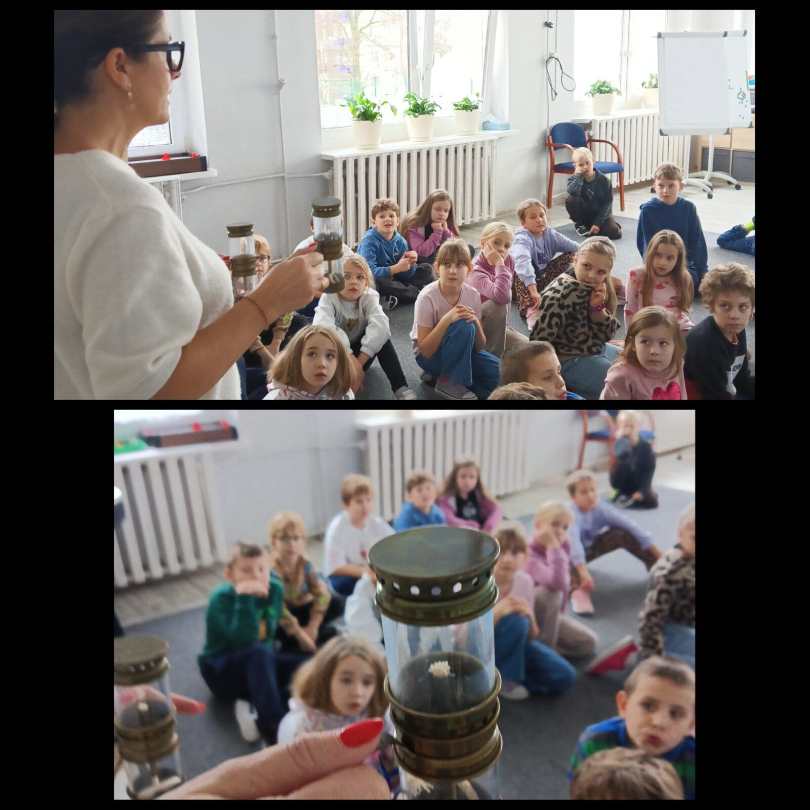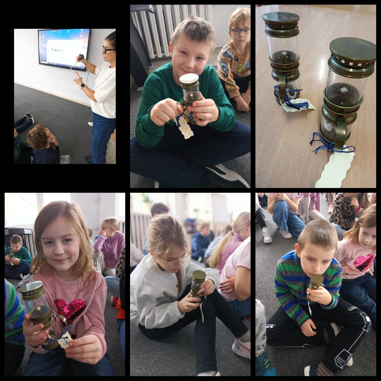 Dzieci obejrzały przyniesione lampki naftowe oraz dowiedziały się jak one działają.