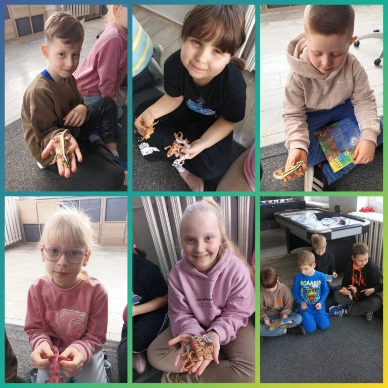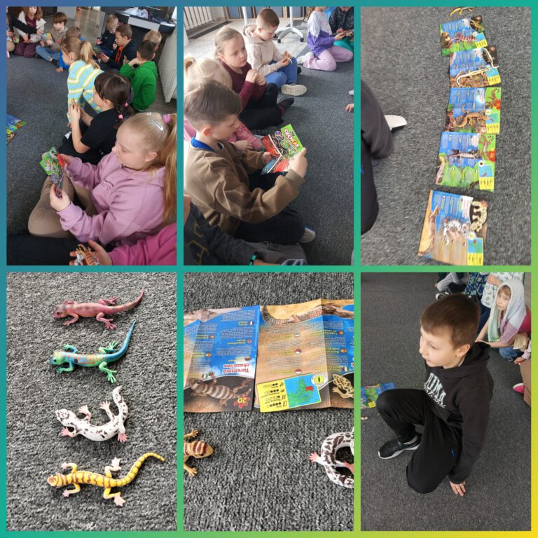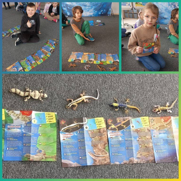 25 marca w świetlicy szkolnej Cyprian i Oliwka oraz Tomek opowiedzieli nam o swoich zbiorach dla młodych kolekcjonerów zafascynowanych przyrodą – gekonach. Pokazali również ulotki, które zawierają ciekawostki i fakty dotyczące prawdziwych odpowiedników figurek.