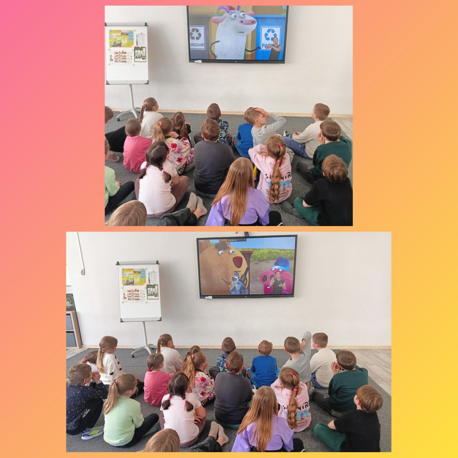 Na dzisiejszych zajęciach w świetlicy szkolnej dzieci obejrzały pierwszy odcinek serialu animowanego, który powstał na potrzeby kampanii promującej Program dla Szkół pt. „Ekipa Chrumasa/Pamiętnik Chrumasa”.