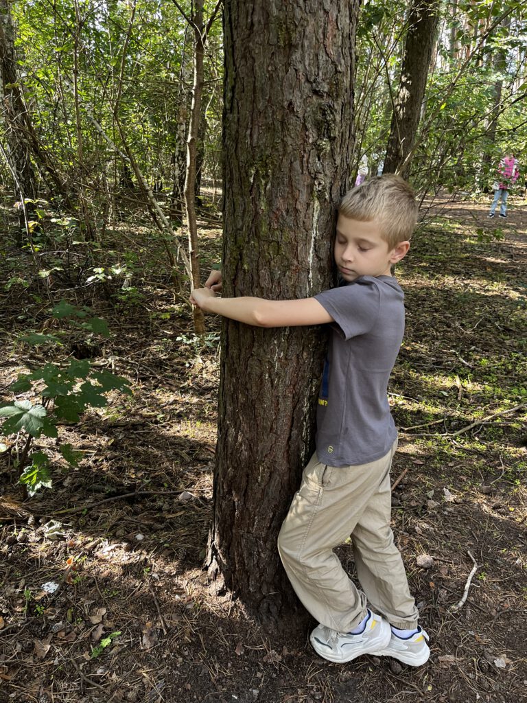 Uczniowie klasy 3B wzięli udział w Ogólnopolskiej akcji „Przytul się do drzewa” ,