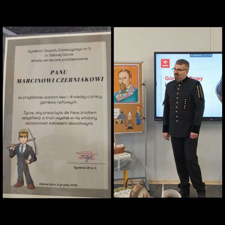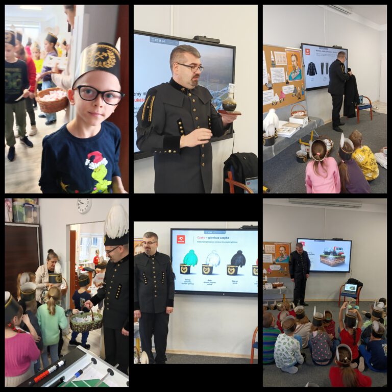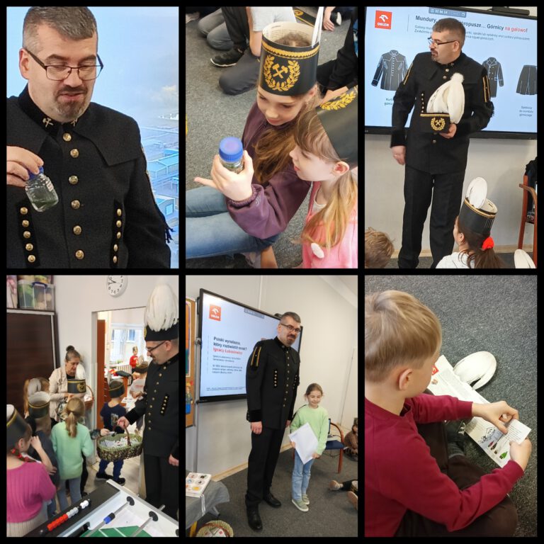 W poniedziałek, 8 grudnia odwiedził nas górnik naftowy Pan Marcin Czerniak. Z przygotowanej przez naszego gościa prezentacji dzieci dowiedziały się, jak to jest możliwe, że zwierzęta i rośliny „przemieniły się” w ropę naftową i gaz ziemny, co to jest czako, co oznaczają poszczególne kolory piór w czako, kim była święta Barbara oraz Ignacy Łukasiewicz.