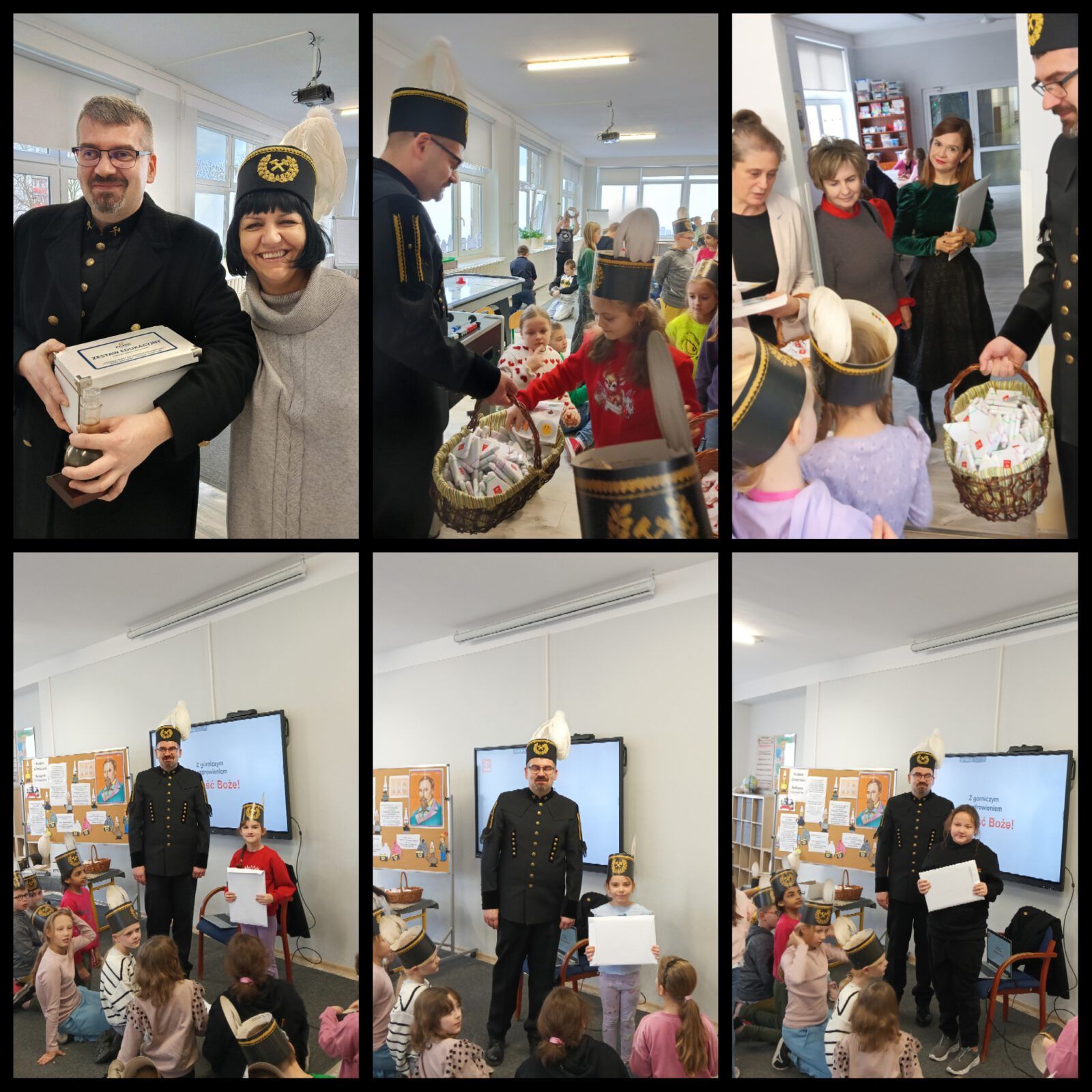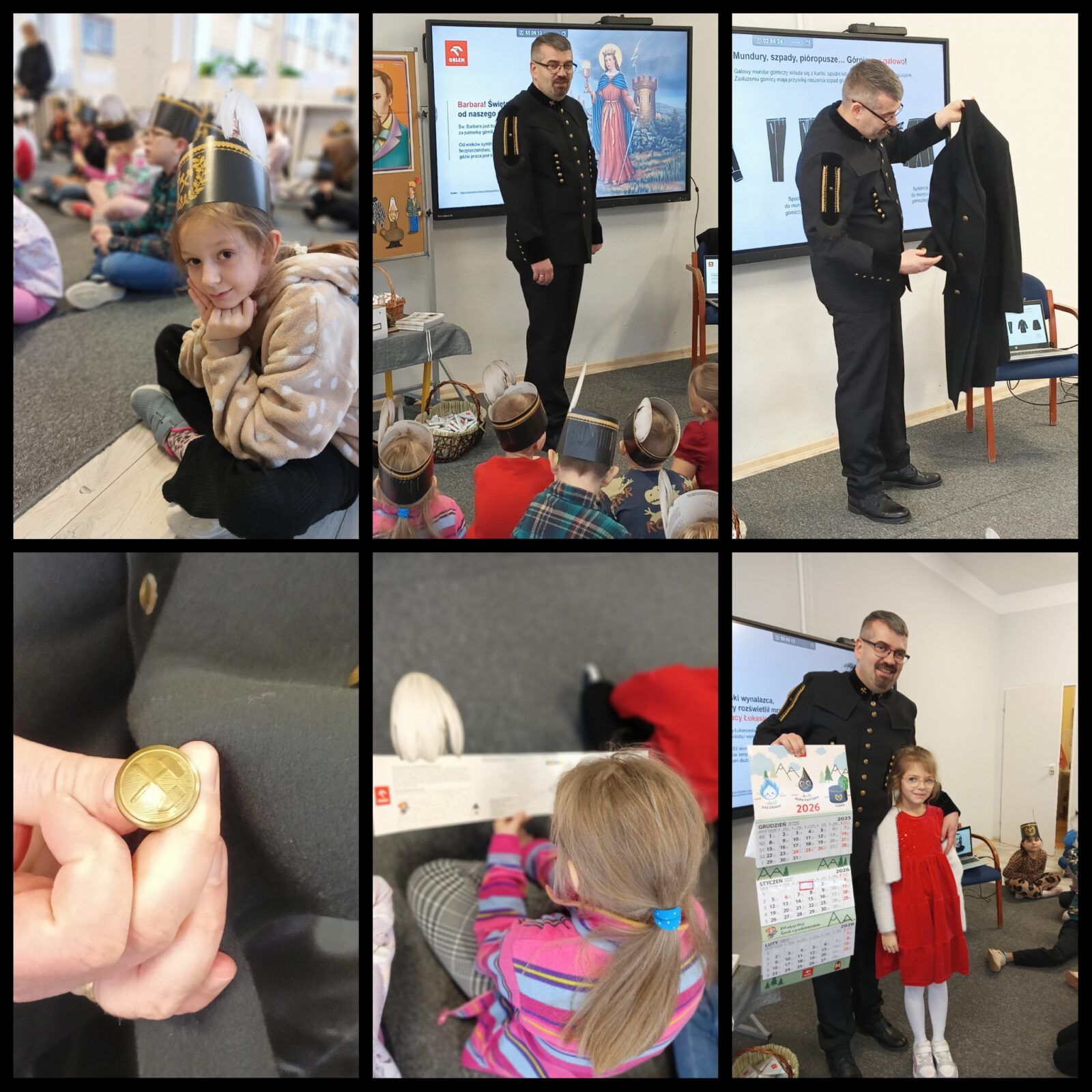 W poniedziałek, 8 grudnia odwiedził nas górnik naftowy Pan Marcin Czerniak. Z przygotowanej przez naszego gościa prezentacji dzieci dowiedziały się, jak to jest możliwe, że zwierzęta i rośliny „przemieniły się” w ropę naftową i gaz ziemny, co to jest czako, co oznaczają poszczególne kolory piór w czako, kim była święta Barbara oraz Ignacy Łukasiewicz.