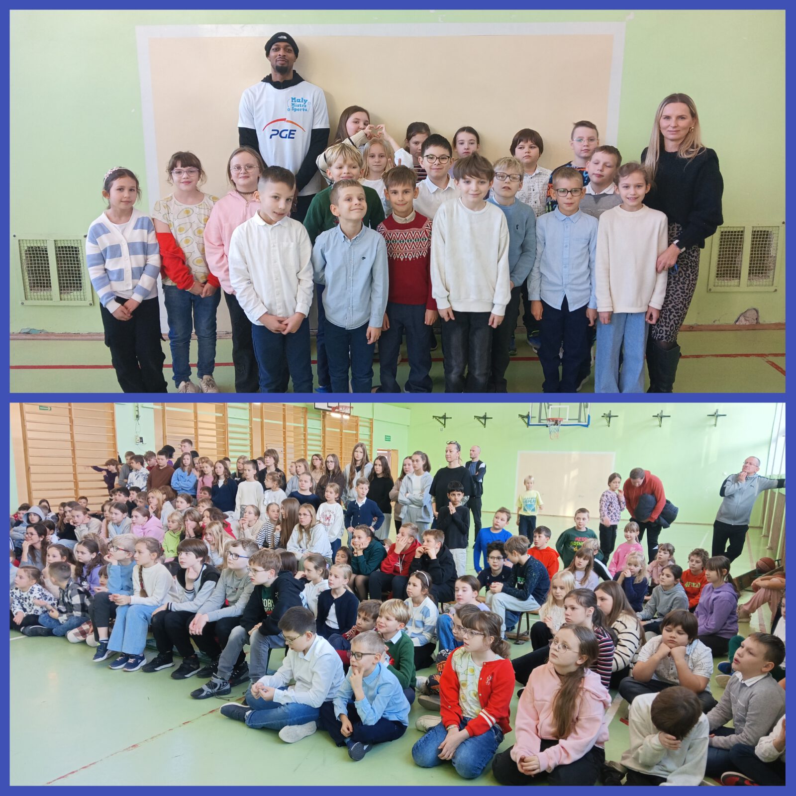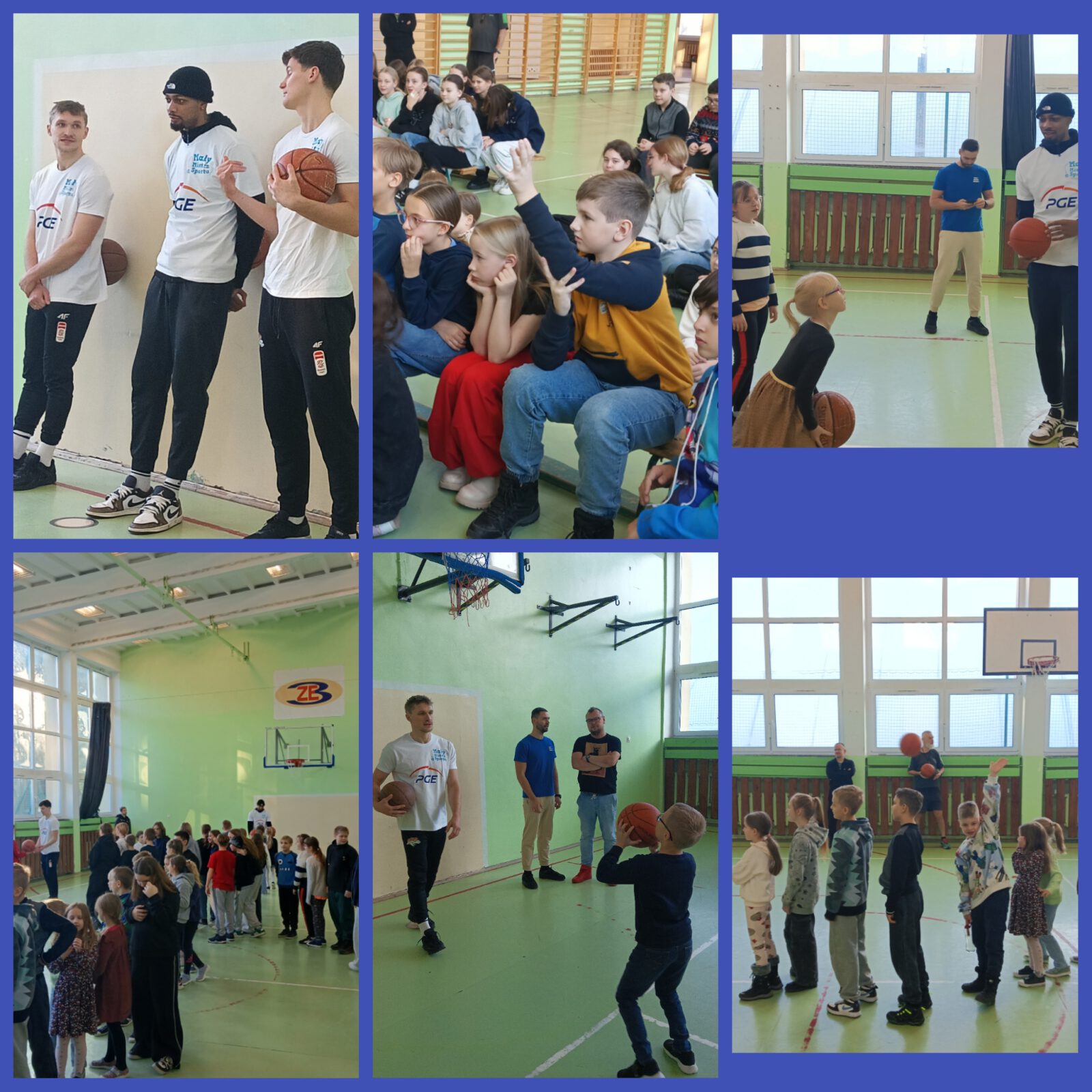 W 艣rod臋 3 grudnia odby艂o si臋 w naszej szkole spotkanie z koszykarzami ZASTAL Zielona G贸ra SKM. Odwiedzili nas pan Filip Matczak, pan Patrick Cartier oraz pan Phil Fayne razem z menad偶erem panem Micha艂em Pra艂atem. Jego celem by艂a popularyzacja koszyk贸wki w艣r贸d m艂odzie偶y szkolnej, promowanie pasji do sportu oraz rozwijanie sprawno艣ci fizycznej.
