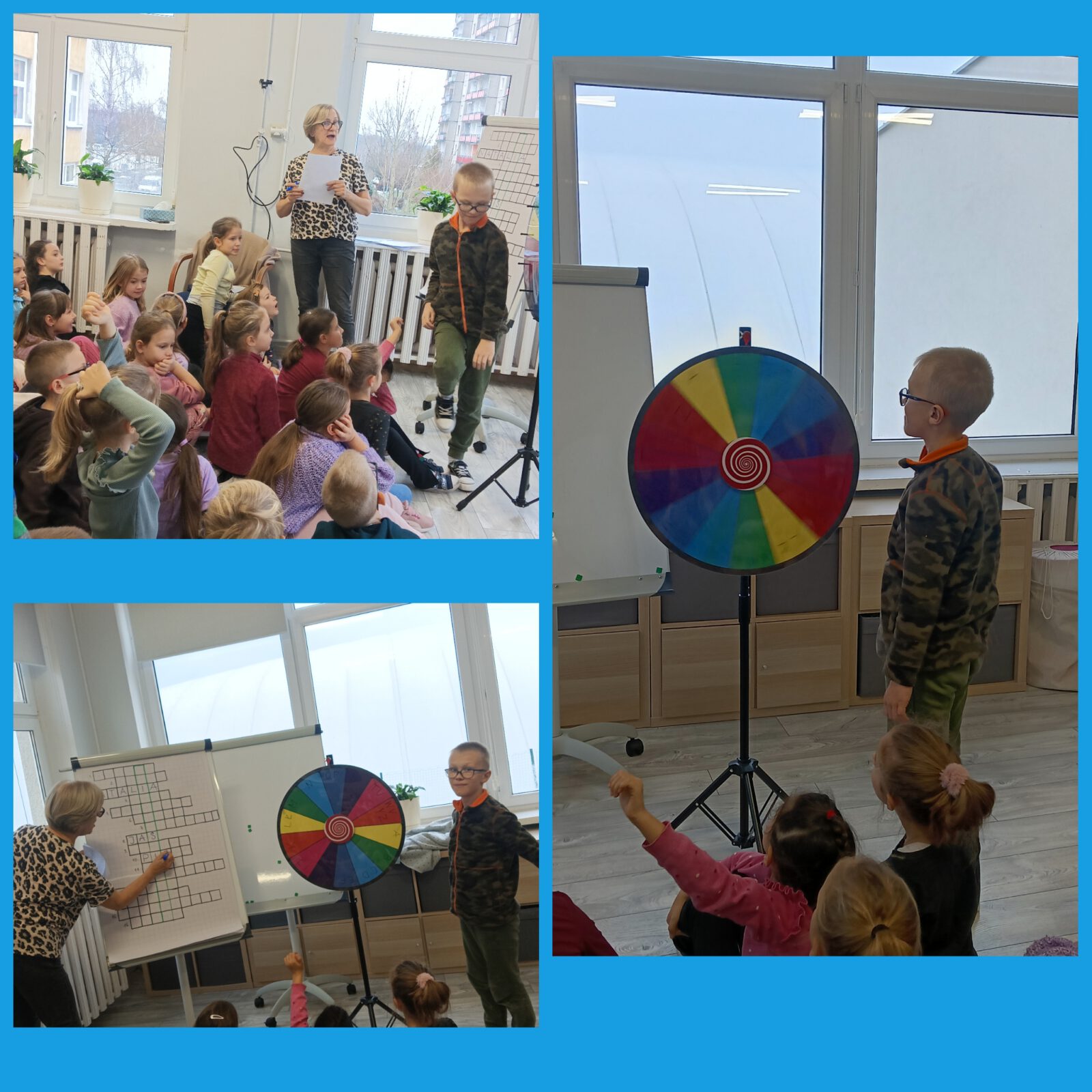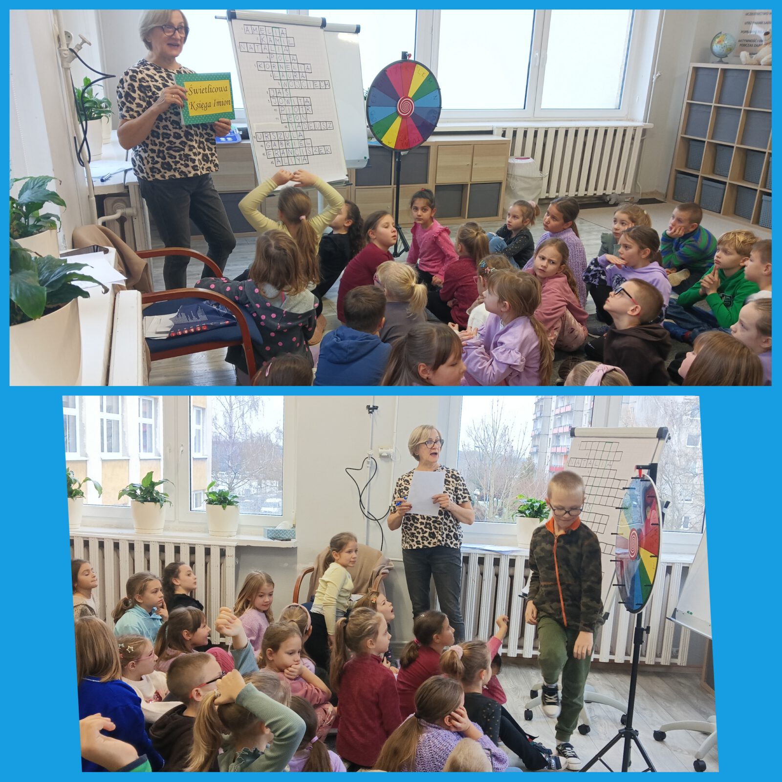 Dzieci nauczyły się piosenki „Wyliczanka imieninowa”, rozwiązały imieninową krzyżówkę oraz losowały imiona z koła fortuny. Uzupełniły też wpisy w ŚWIETLICOWEJ KSIĘDZE IMION.