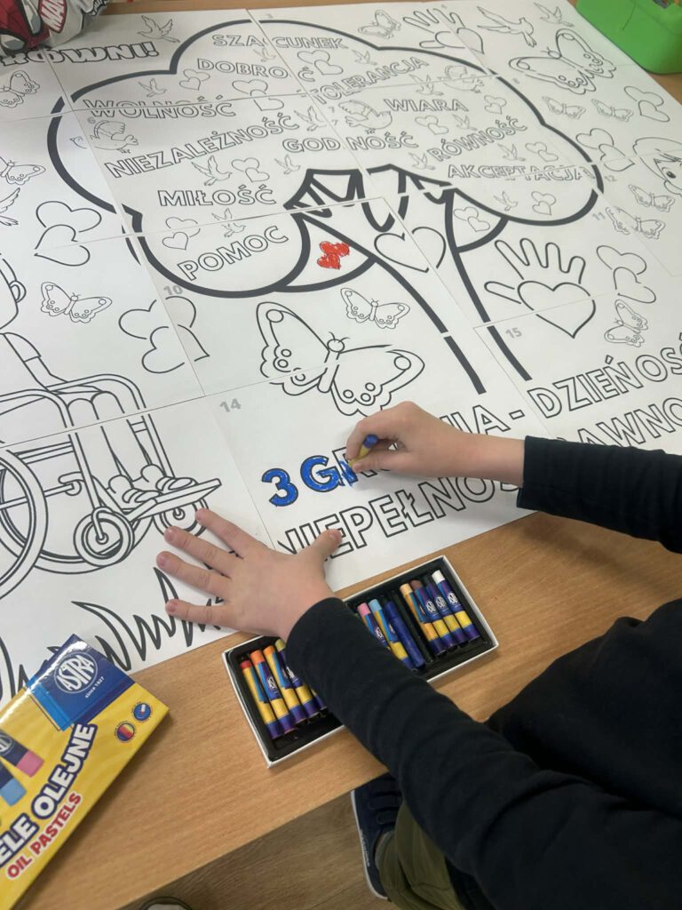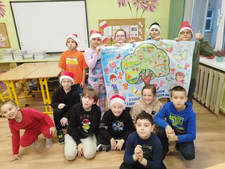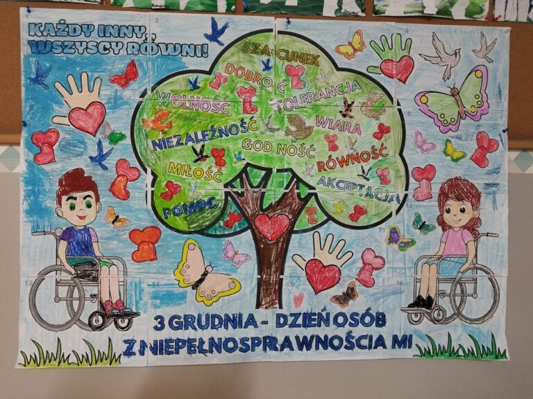 W grudniu 2025 r. uczniowie klasy 2d włączyli się w obchody Dnia Osób z Niepełnosprawnościami. Podczas zajęć rozmawiali o różnych rodzajach niepełnosprawności, starając się lepiej zrozumieć potrzeby i wyzwania, z jakimi mierzą się osoby z niepełnosprawnościami w codziennym życiu. Dzieci poznały także podstawowe zasady savoir-vivre wobec osób z niepełnosprawnościami, ucząc się, jak okazywać szacunek, wsparcie i empatię. Na zakończenie zajęć uczniowie wykonali tematyczne plakaty, w których wyrazili swoje refleksje oraz zachęcali do otwartości i życzliwości. Była to pouczająca i wartościowa lekcja, która pomogła uczniom lepiej zrozumieć znaczenie tolerancji, wrażliwości i wzajemnej pomocy.