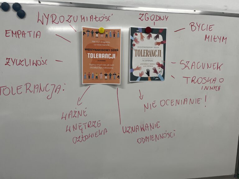 16 listopada na całym świecie obchodzimy Międzynarodowy Dzień Tolerancji – święto, które przypomina nam, jak ważne jest okazywanie sobie szacunku, akceptacji i życzliwości. To doskonała okazja, by w szkolnych salach porozmawiać o różnorodności, empatii i o tym, jak budować relacje oparte na wzajemnym zrozumieniu. W wielu klasach naszej szkoły zrealizowano w tym czasie zajęcia i działania, które pomagały uczniom dostrzec piękno różnic między ludźmi.