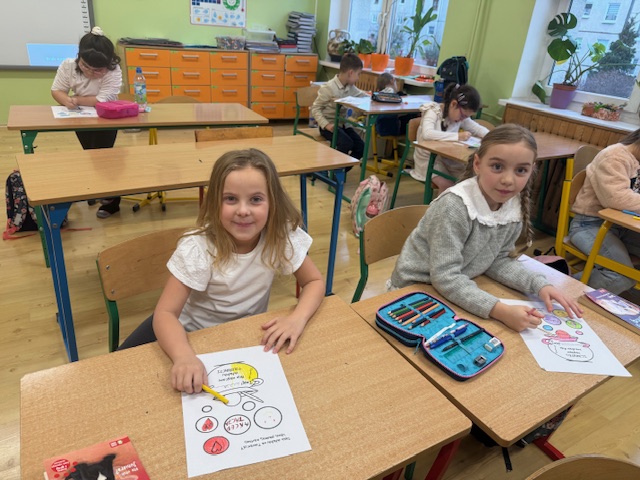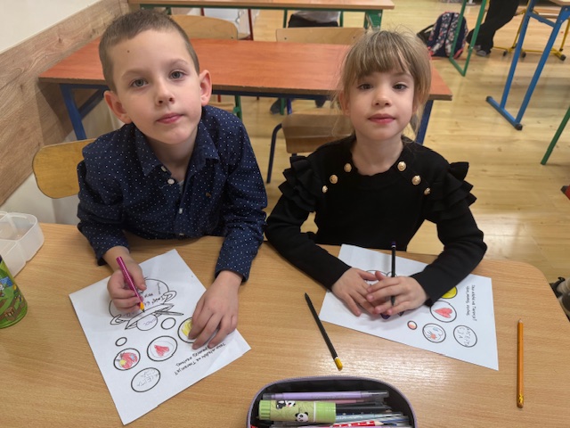 W klasach 4b, 5a, 7b dzieci tworzyły zakładki do książek, przygotowywały miłe wiadomości w języku angielskim oraz podejmowały „kropkowe wyzwania”.