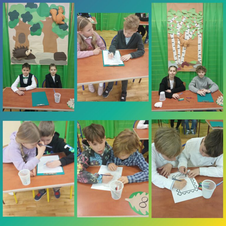 • Zadanie plastyczne – projektowanie znaczka pocztowego, którego głównym bohaterem był bocian czarny