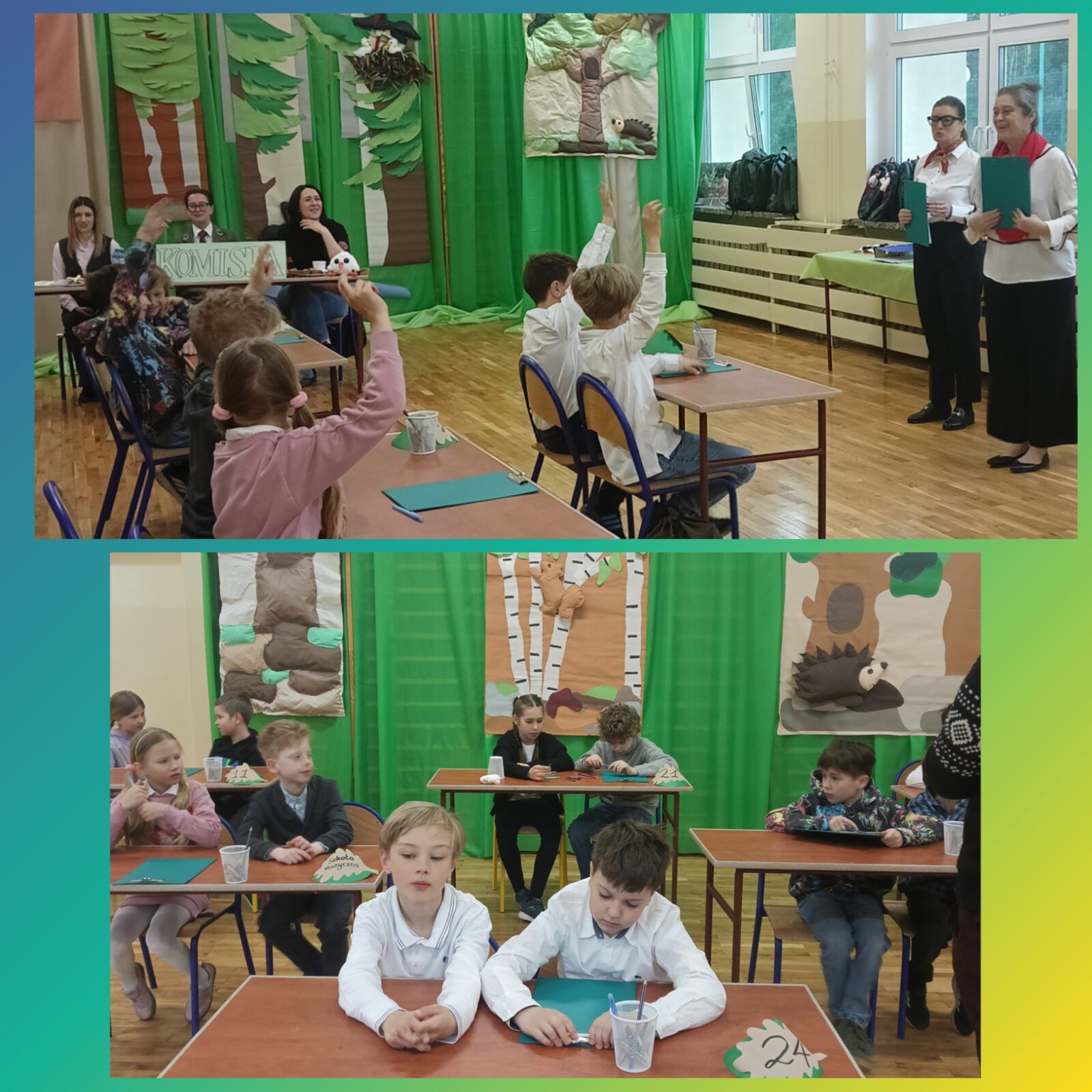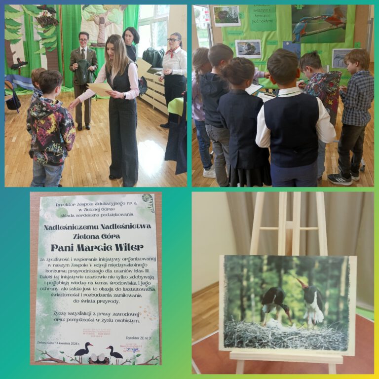 14 kwietnia 2026r . odbyła się w naszej szkole V edycja Międzyszkolnego Konkursu Przyrodniczego dla dzieci uczęszczających do świetlic pod hasłem W Krainie mchów i paproci. W tym roku w konkursie wzięły udział następujące szkoły: PSP nr 7, SP nr 8, SP nr 11, SP nr 21, SP nr 24 oraz Szkoła Muzyczna. Głównym bohaterem tegorocznej edycji był bocian czarny. Komisja konkursowa w składzie: leśniczy szkółkarz Pani Kaja Borzęcka, dyrektor ZE nr 3 Pani Kamila Dyjak oraz przewodnicząca Rady Rodziców Pani Agnieszka Paszkowiec, sprawdzała poszczególne zadania rozwiązywane przez uczniów klas III: