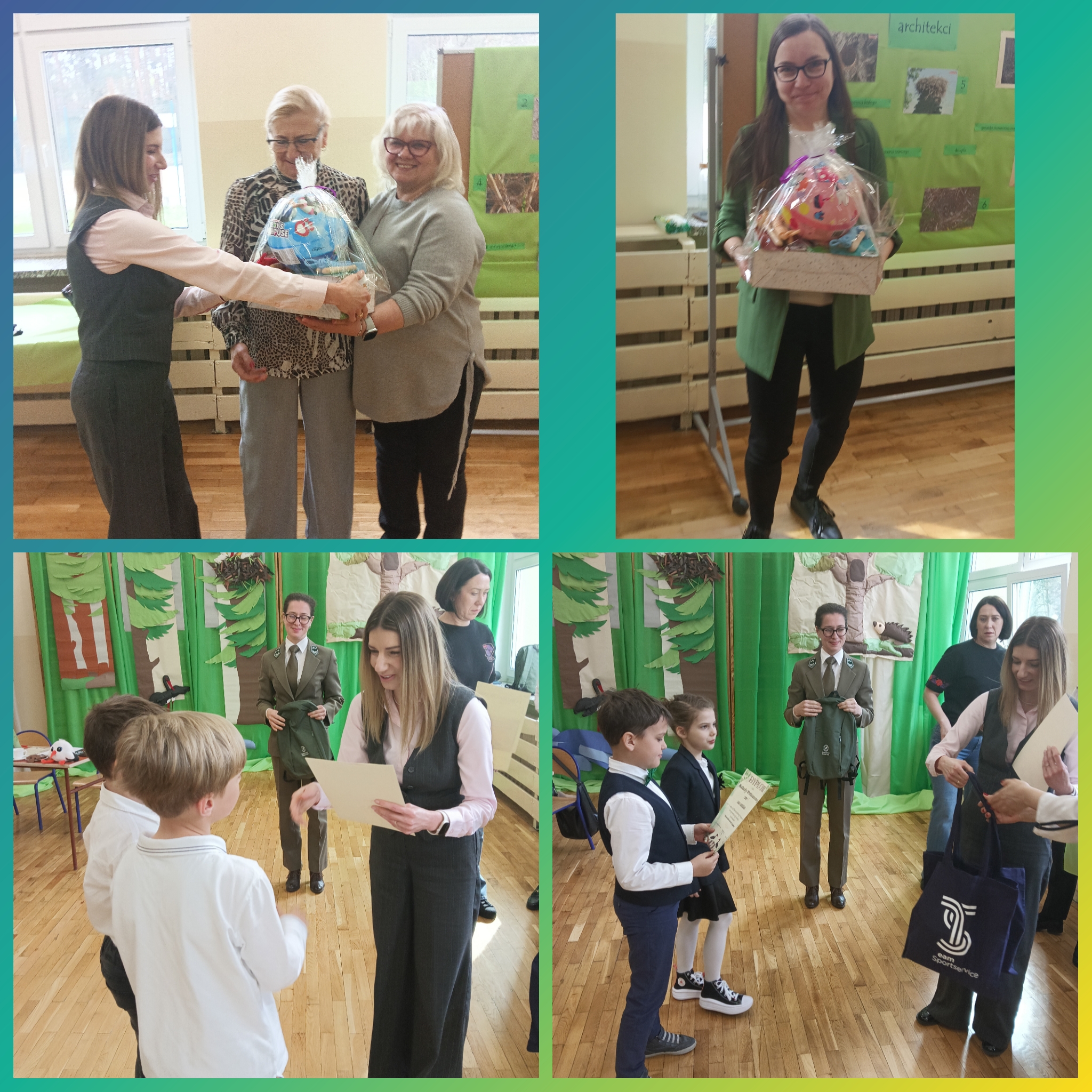 Składamy serdeczne podziękowania Nadleśniczemu Nadleśnictwa Zielona Góra Pani Marcie Wiler oraz Pani Kai BorzęckiejLeśniczemu szkółkarzowi, za wspieranie działań proekologicznych realizowanych w naszej szkole oraz przekazanie nagród rzeczowych dla wszystkich uczestników tegorocznej edycji konkursu.