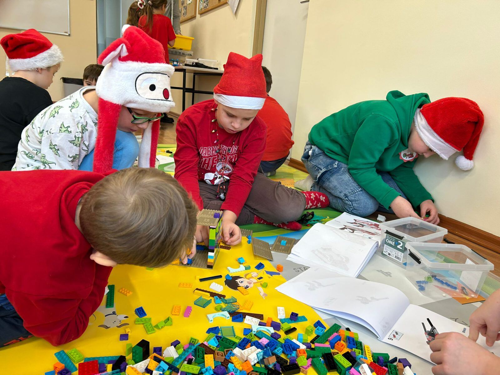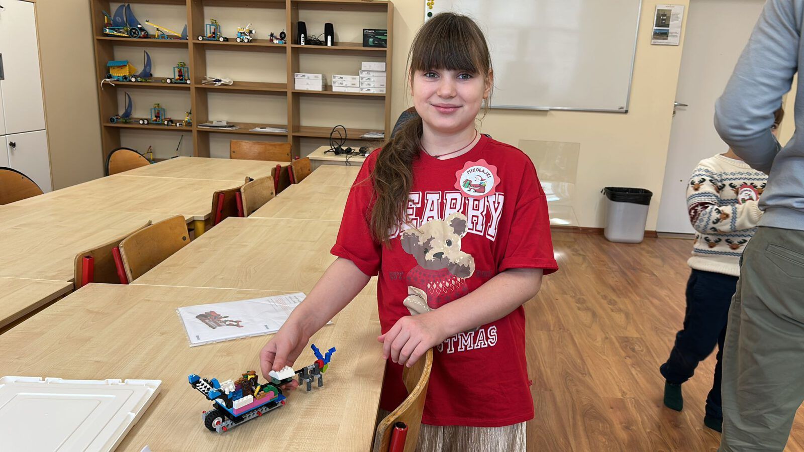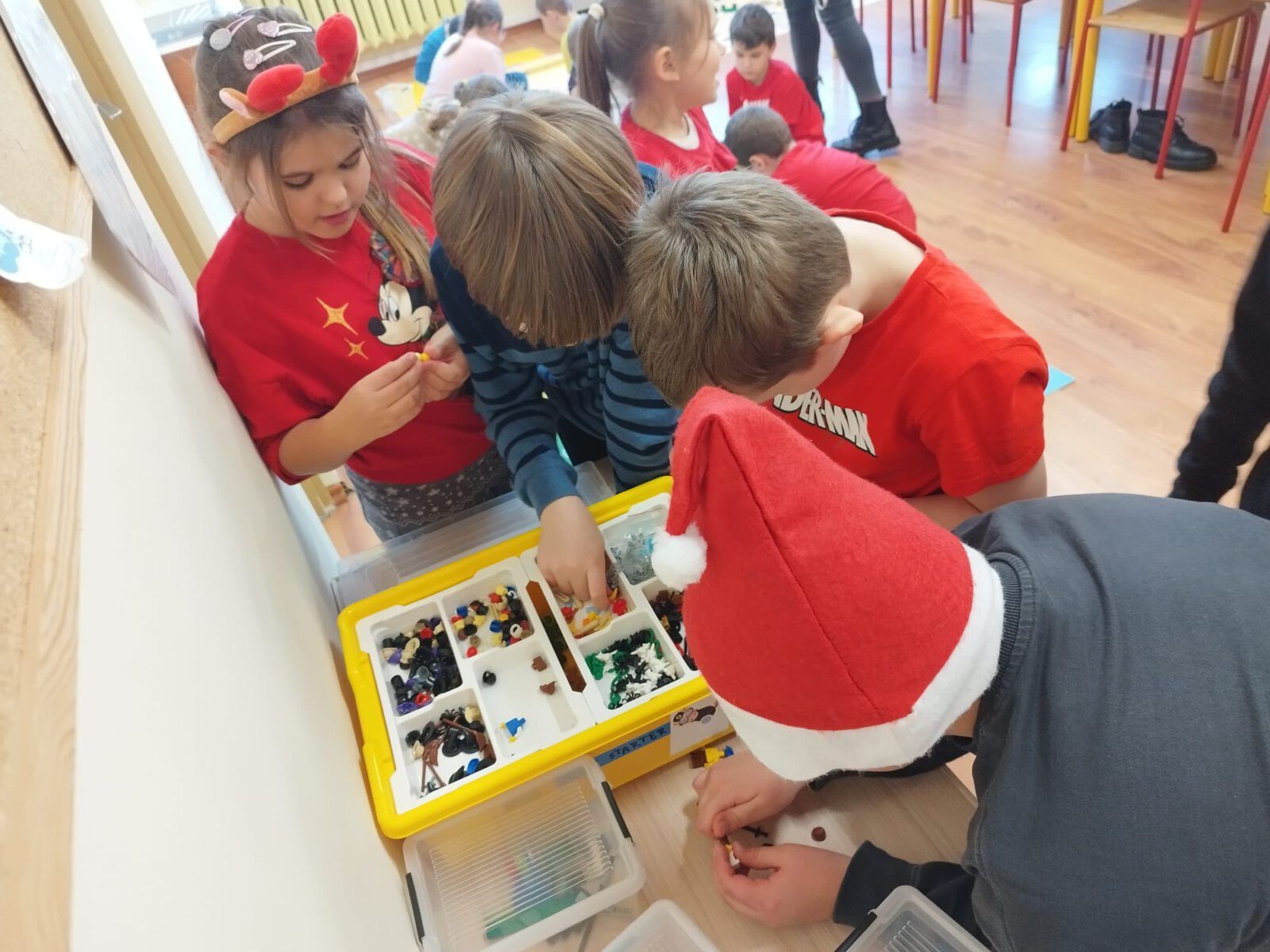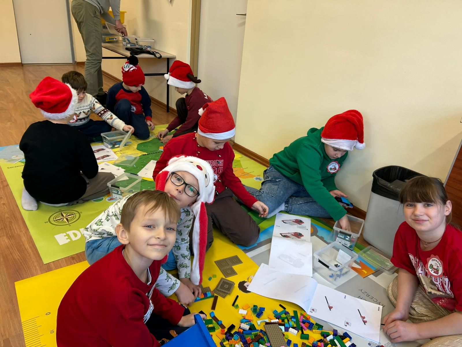W poniedziałek, 8 grudnia 2026 roku, uczniowie klas 2b i 2d wzięli udział w wyjątkowych warsztatach konstrukcyjnych LEGO poświęconych tematowi Sań świętego Mikołaja. Podczas zajęć dzieci pracowały w zespołach, tworząc z klocków renifera oraz sanie, którymi miał podróżować Mikołaj. Uczniowie wykazali się ogromną kreatywnością i zaangażowaniem. Oprócz podstawowych konstrukcji powstała także stajnia, do której Mikołaj miał wjechać, zjeżdżając z rampy. Każda grupa mogła przetestować swoje modele, sprawdzając ich stabilność i funkcjonalność. Warsztaty przyniosły uczestnikom mnóstwo mikołajkowej radości, rozwijały wyobraźnię, uczyły współpracy, a także doskonaliły motorykę małą. Była to twórcza, inspirująca i pełna uśmiechu zabawa, która na długo pozostanie w pamięci uczniów.