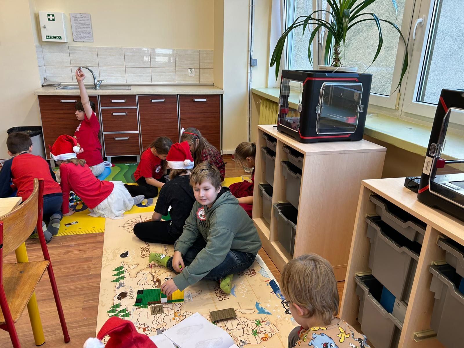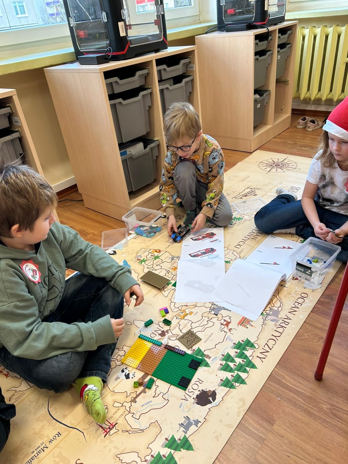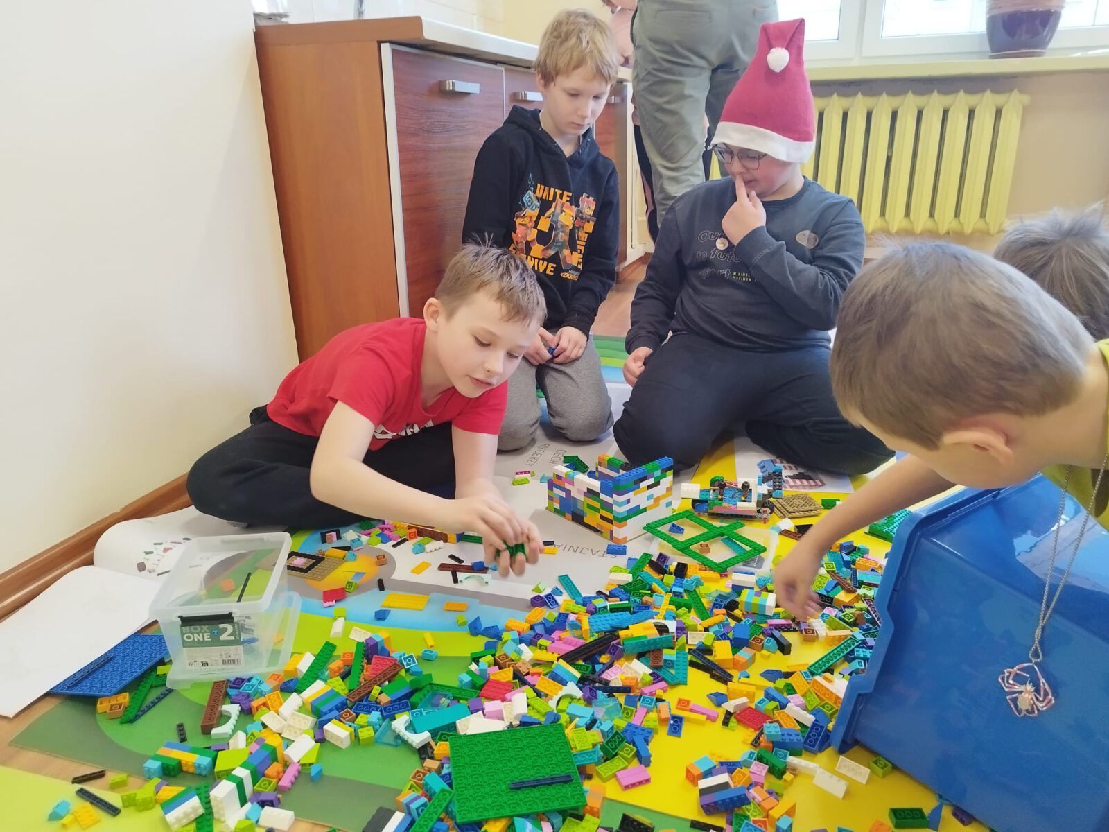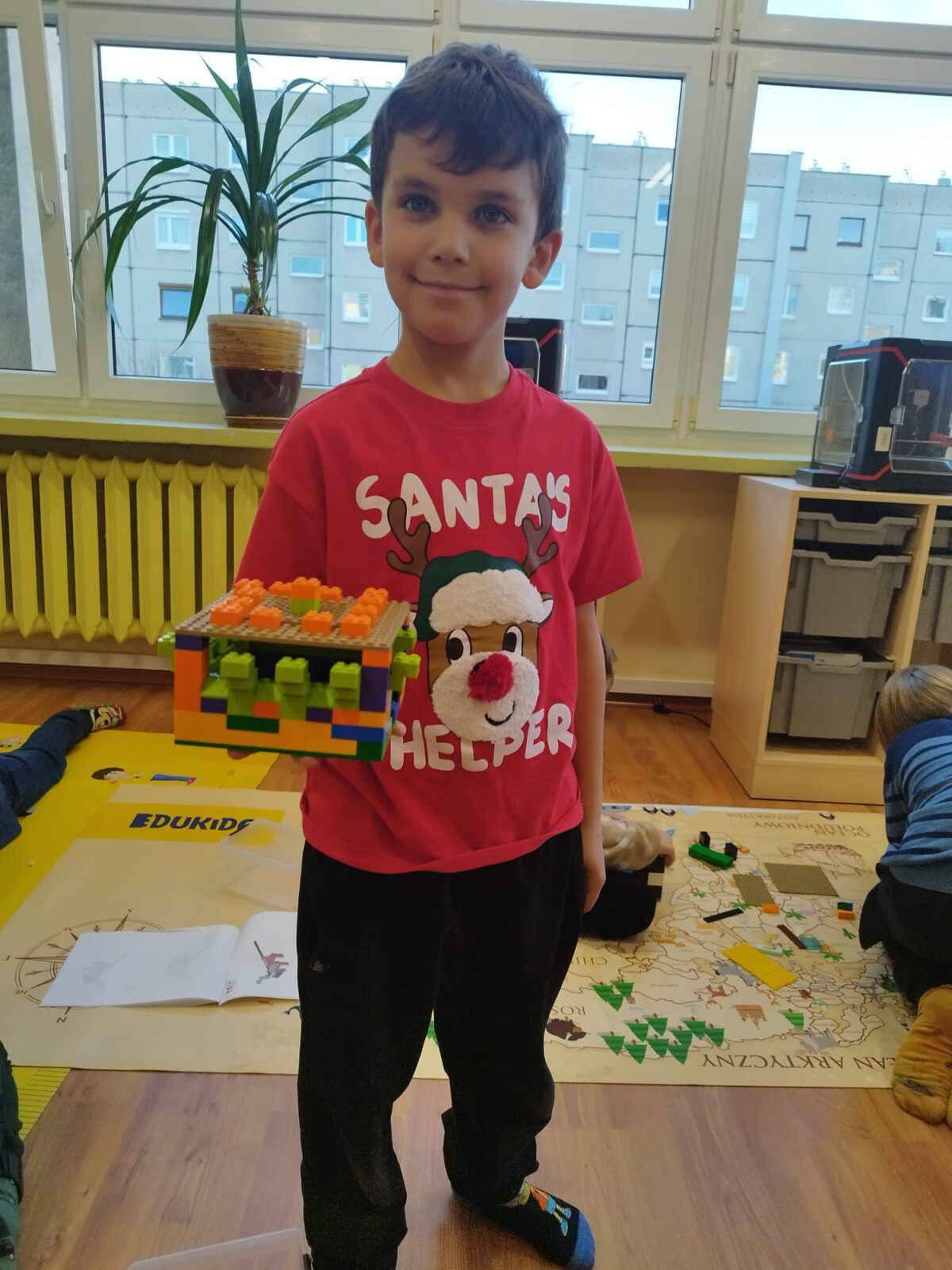W poniedziałek, 8 grudnia 2026 roku, uczniowie klas 2b i 2d wzięli udział w wyjątkowych warsztatach konstrukcyjnych LEGO poświęconych tematowi Sań świętego Mikołaja. Podczas zajęć dzieci pracowały w zespołach, tworząc z klocków renifera oraz sanie, którymi miał podróżować Mikołaj. Uczniowie wykazali się ogromną kreatywnością i zaangażowaniem. Oprócz podstawowych konstrukcji powstała także stajnia, do której Mikołaj miał wjechać, zjeżdżając z rampy. Każda grupa mogła przetestować swoje modele, sprawdzając ich stabilność i funkcjonalność. Warsztaty przyniosły uczestnikom mnóstwo mikołajkowej radości, rozwijały wyobraźnię, uczyły współpracy, a także doskonaliły motorykę małą. Była to twórcza, inspirująca i pełna uśmiechu zabawa, która na długo pozostanie w pamięci uczniów.