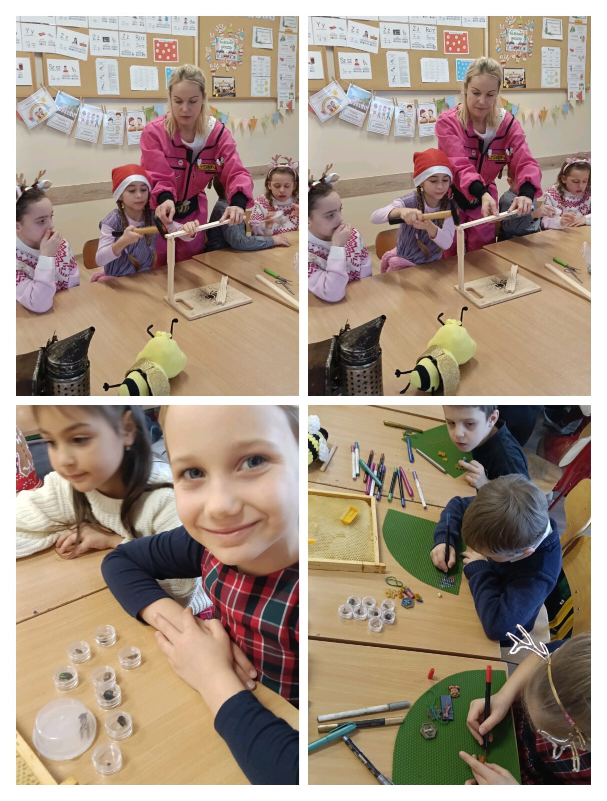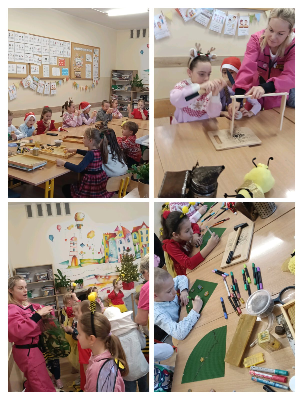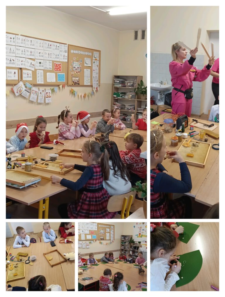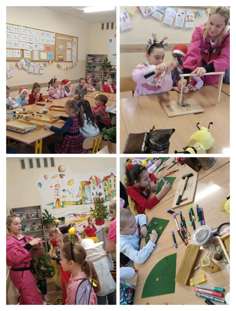 Warsztaty pszczelarskie w 1b 4 grudnia 2025 Małgorzata Kasprzak Mioduszkowe Love w 1b Pani Agnieszka potrafi zaciekawić życiem owadów, jak mało kto. Poznaliśmy wiele pożytecznych owadów, budowę ula, smakowaliśmy miodek oraz tworzyliśmy wyjątkowo zdrowe ozdoby świąteczne. Dziękujemy za ogrom wiedzy i zabawy!