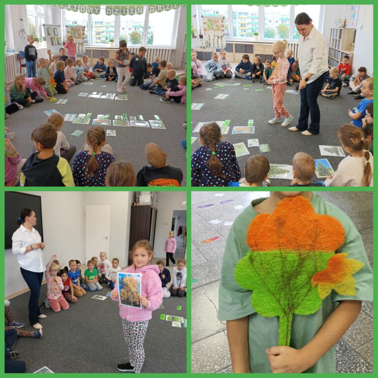 W ramach Dnia Drzewa w świetlicy wychowawcy przygotowali konkurs przyrodniczy z zakresu znajomości gatunków drzew i liści. Zanim dzieci otrzymały zadania konkursowe, które były dostosowane do poszczególnych grup wiekowych, rozmawiały na temat znaczenia drzew dla ekosystemu oraz pogłębiły wiedzę na temat funkcjonowania drzew i ich znaczenia dla środowiska.
