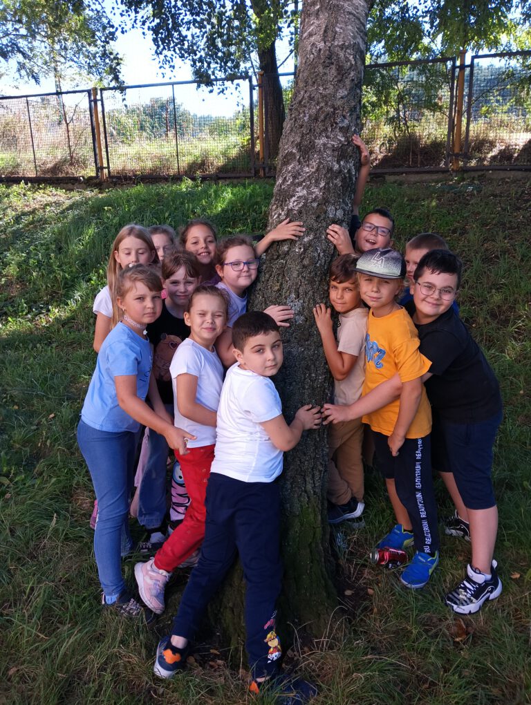 Dzieci uczęszczające do świetlicy szkolnej oraz uczniowie klasy 6b wzięli udział w IV edycji kampanii „Przytul się do drzewa” 2025, która ma na celu promowanie ochrony lasów i zachęcanie do bliskości z naturą poprzez przytulanie drzew.