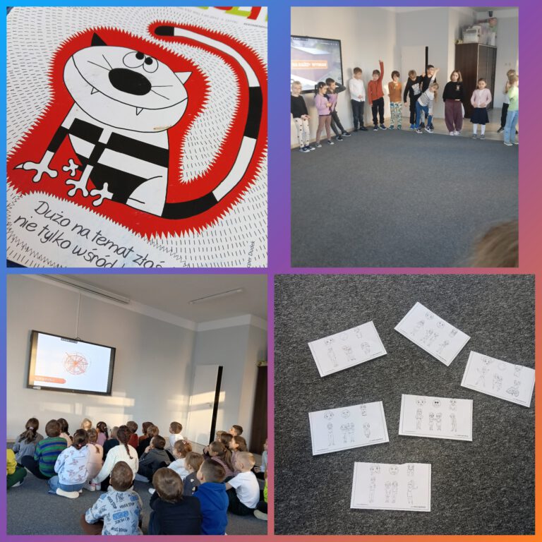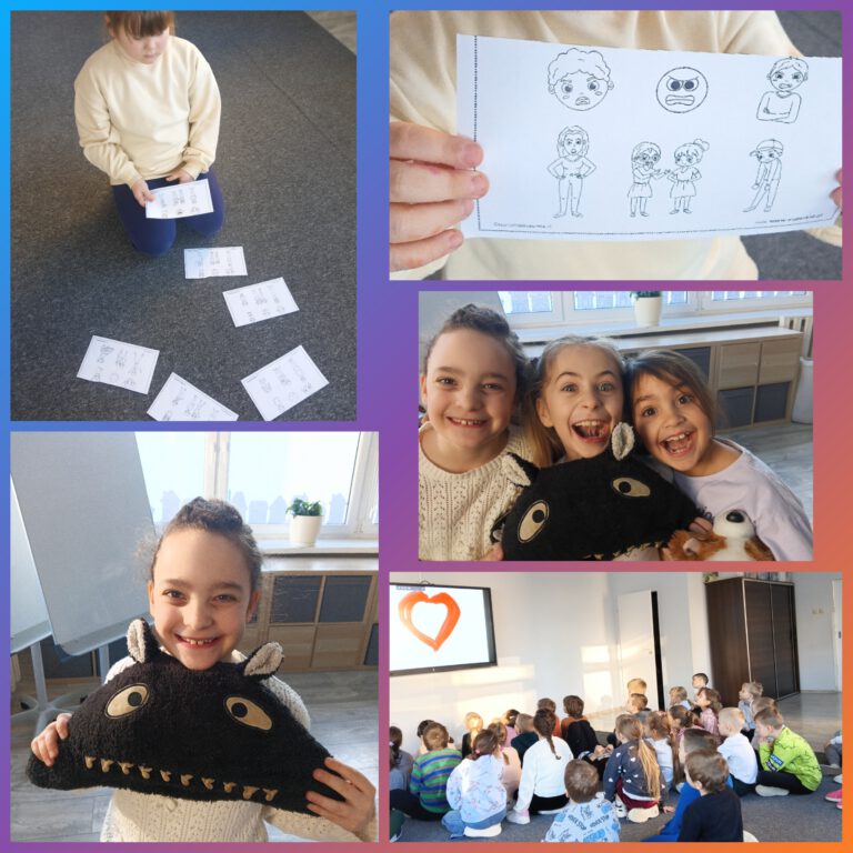 Podczas zajęć świetlicowych dzieci opowiadały o sytuacjach, w których się złoszczą kończąc zdanie: Złoszczę się , gdy…”. Obejrzały film edukacyjny „I co z tą złością?”, dowiedziały się, że złość nie musi być agresją, lecz sygnałem, który może nas mobilizować do działania i postawienia granicy. Poznały „bezpieczne” metody rozładowania złości, wysłuchały opowiadania Zuzanny Orlińskiej pt. „Schabik” oraz rozpoznawały emocje na kartach edukacyjnych.