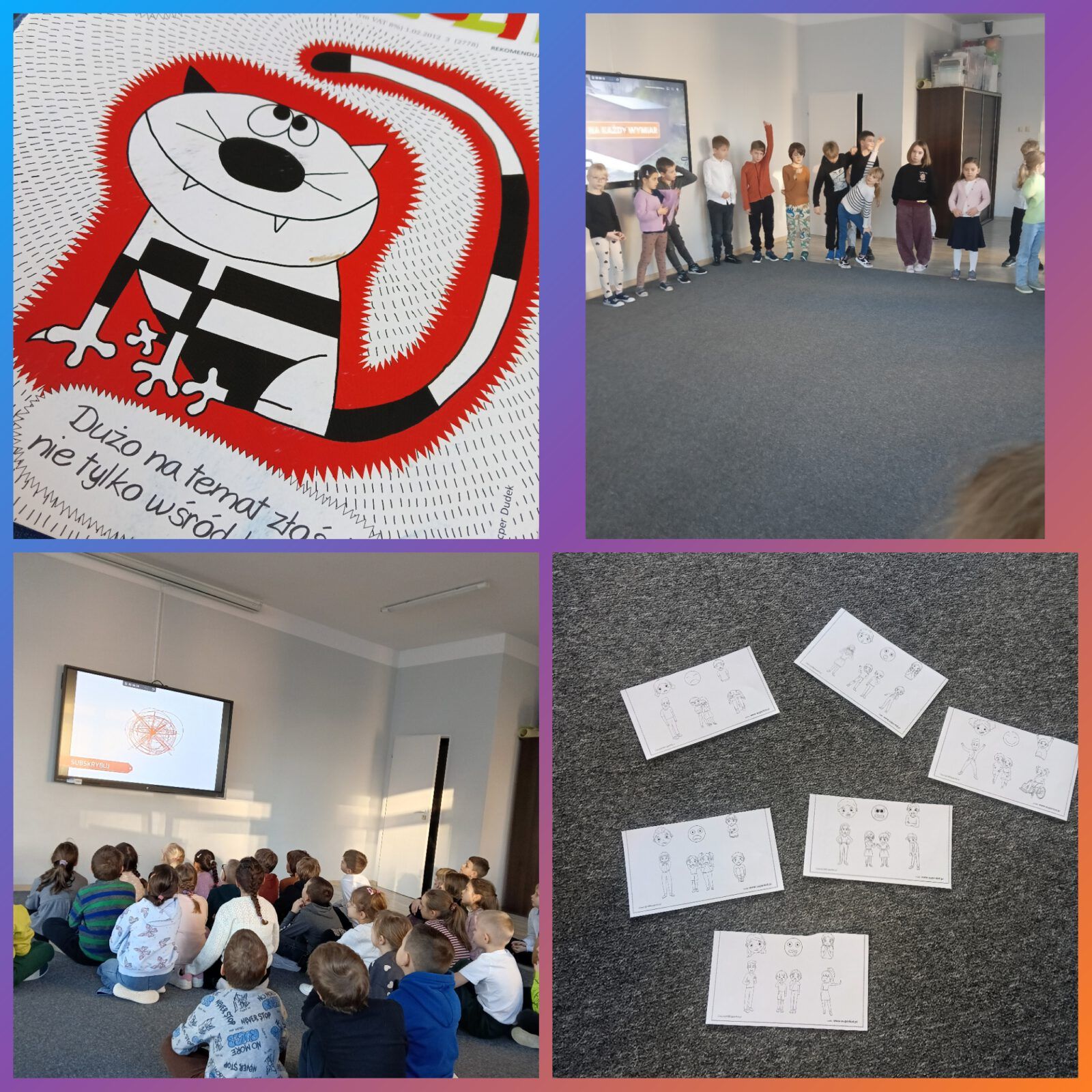 W świetlicy szkolnej dzieci obejrzały film „Kamlotki – tolerancja”, rozwiązywały zagadki, a także wzięły udział w zabawach edukacyjnych z wykorzystaniem kart do dyskusji „Wszyscy jesteśmy różni”. Zastanawiały się też „Co by było, gdyby…?”, a także wykazywały różnice między tolerancją, a nietolerancją.