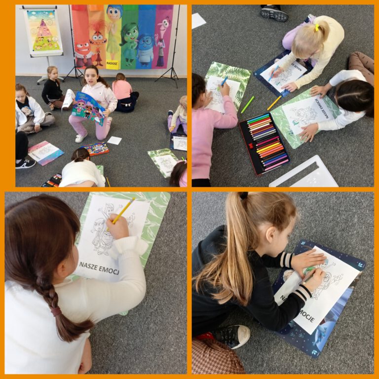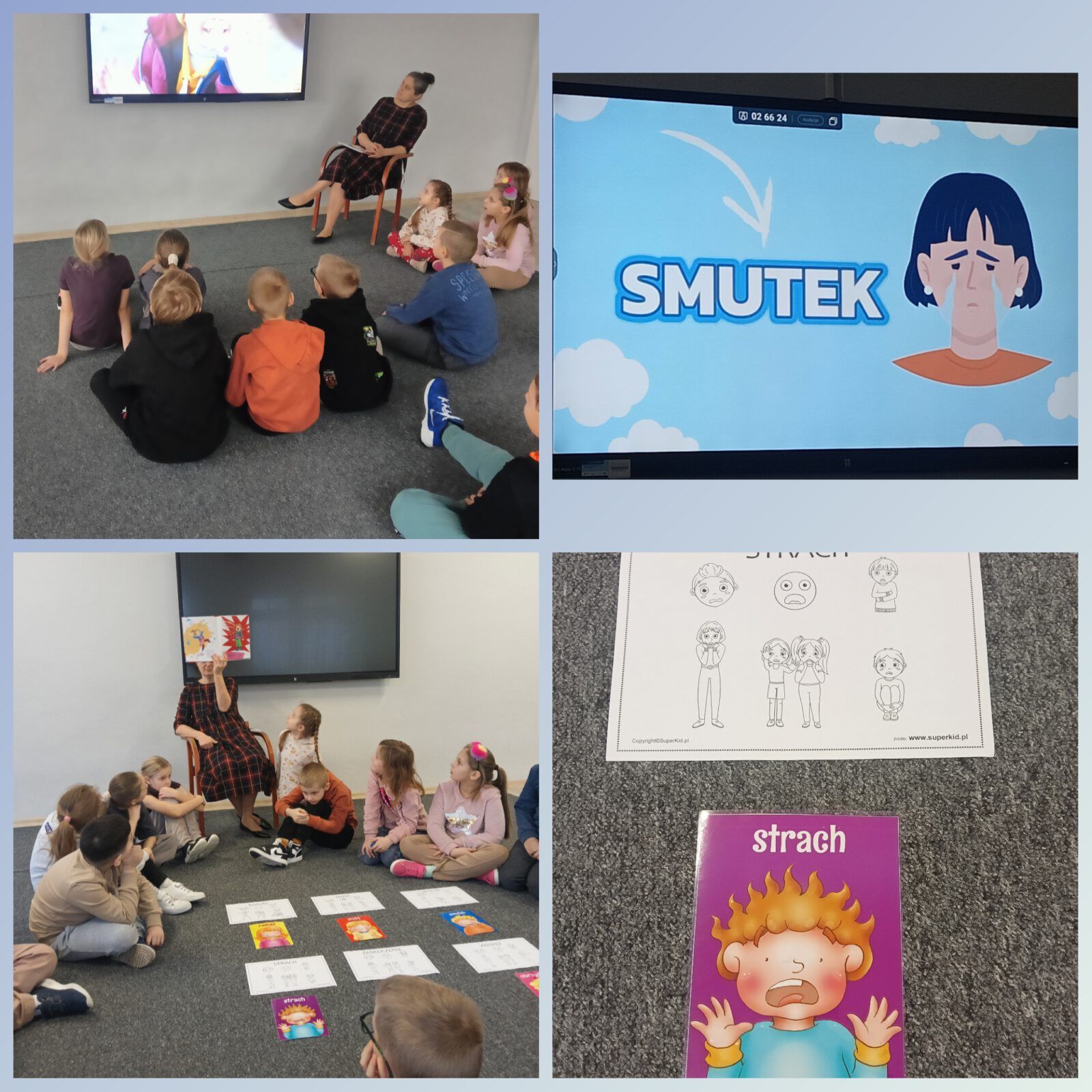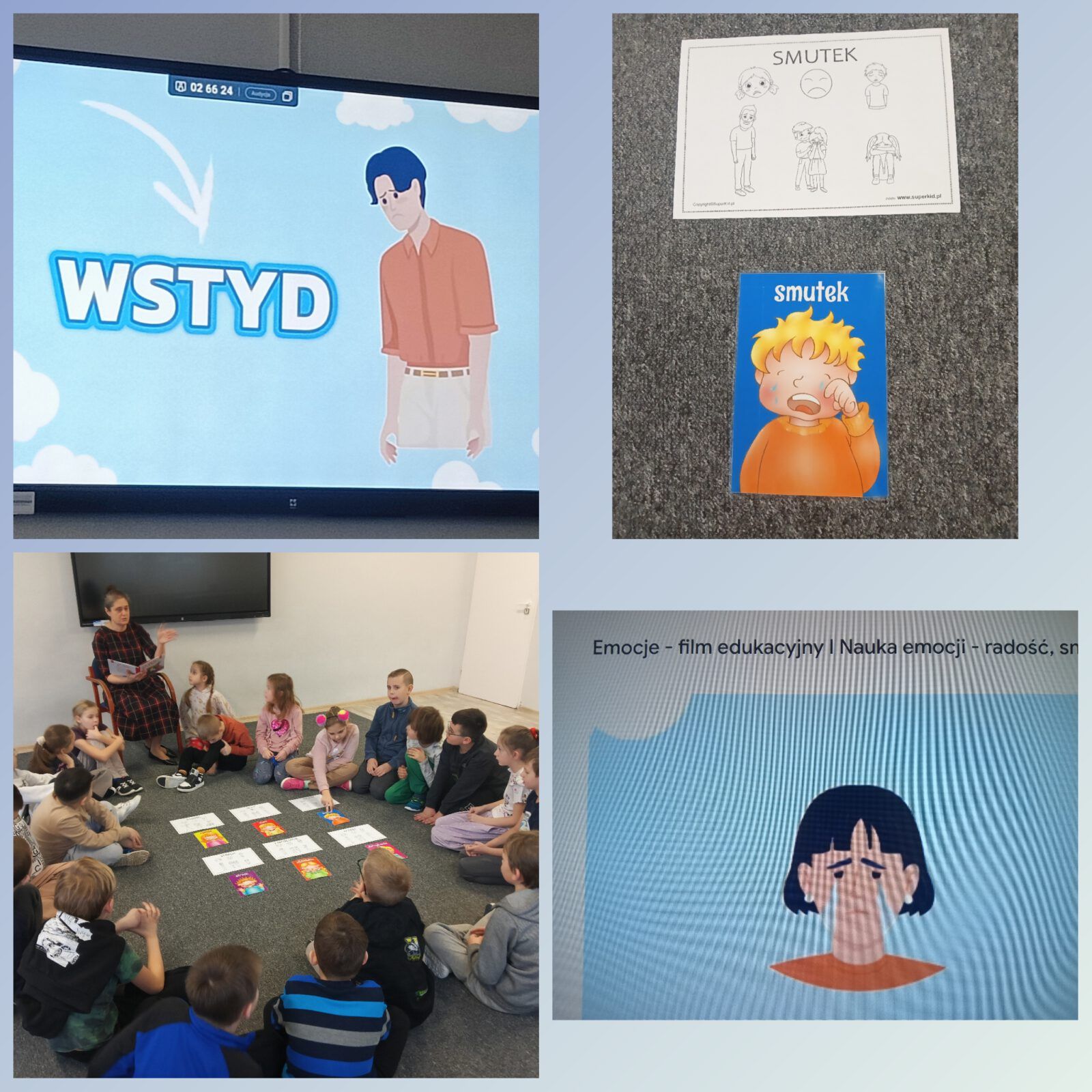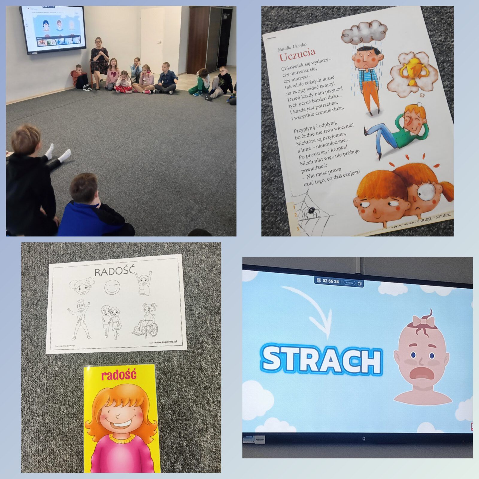 Podczas zajęć świetlicowych dzieci uczyły się rozpoznawania i nazywania swoich emocji. Dowiedziały się, co to są emocje, a co to uczucia, bo to różne stany, które mają różne źródła, intensywność i czas trwania. Wysłuchały wiersza Natalii Usenko pt. „Uczucia” i opisywały emocje zaprezentowane w filmie edukacyjnym „Nauka emocji”.